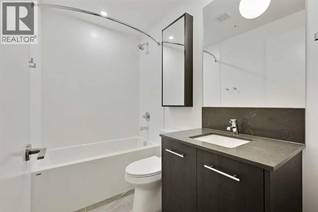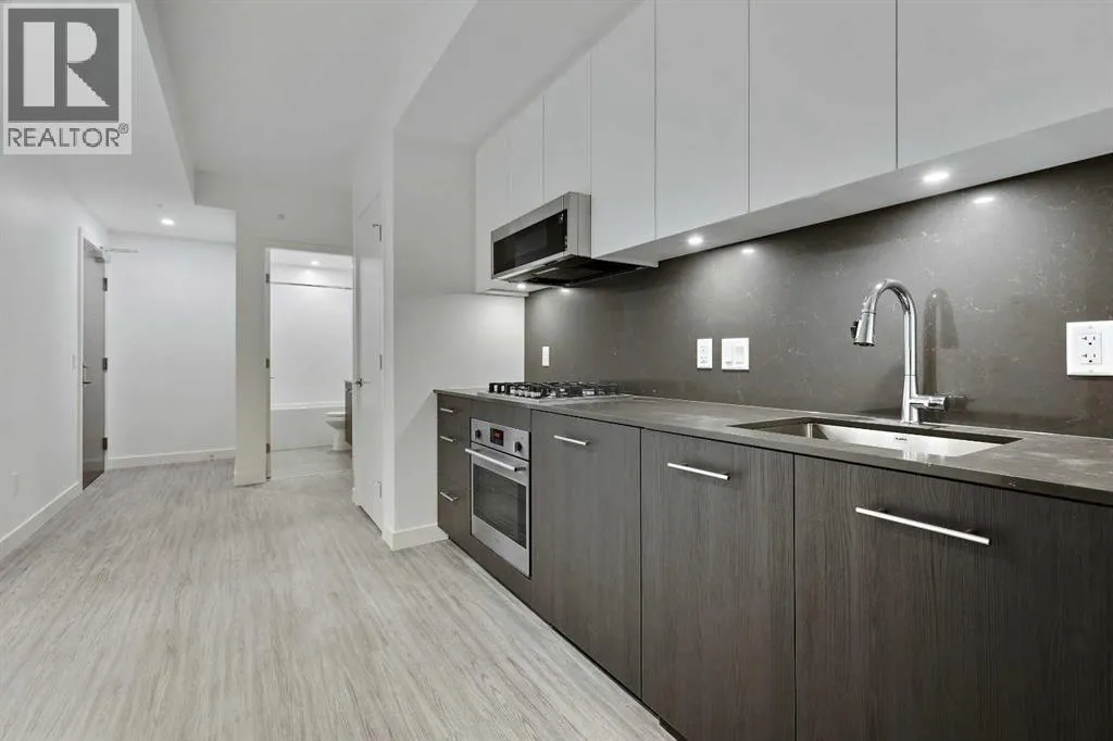 Welcome to First & Park, an elegant new address in Calgaryâs sought-after Eau Claire community. This one bedroom, one bathroom home combines modern design with everyday convenience. The open-concept layout features a sleek kitchen with contemporary cabinetry, quartz countertops, and premium appliances, flowing seamlessly into the bright living space and east facing balcony. This one bedroom unit has a full bath, and in-suite laundry offering comfort and functionality. Enjoy a titled storage locker, along with building amenities including an upscale gym & yoga studio (patio just outside which also features gas bbq hookups), party lounge, modern co-working space and concierge. Just steps from the Bow River pathways, Princeâs Island Park, dining, and downtown, this is the perfect balance of style and location. Whether youâre a first-time buyer, investor, or looking for a stylish downtown retreat, this home at First & Park is the perfect opportunity to live where the city meets the river. Packages available for FURNISHED UNITS! Great unit for university students! 1 titled storage locker with unit! (id:27476)
