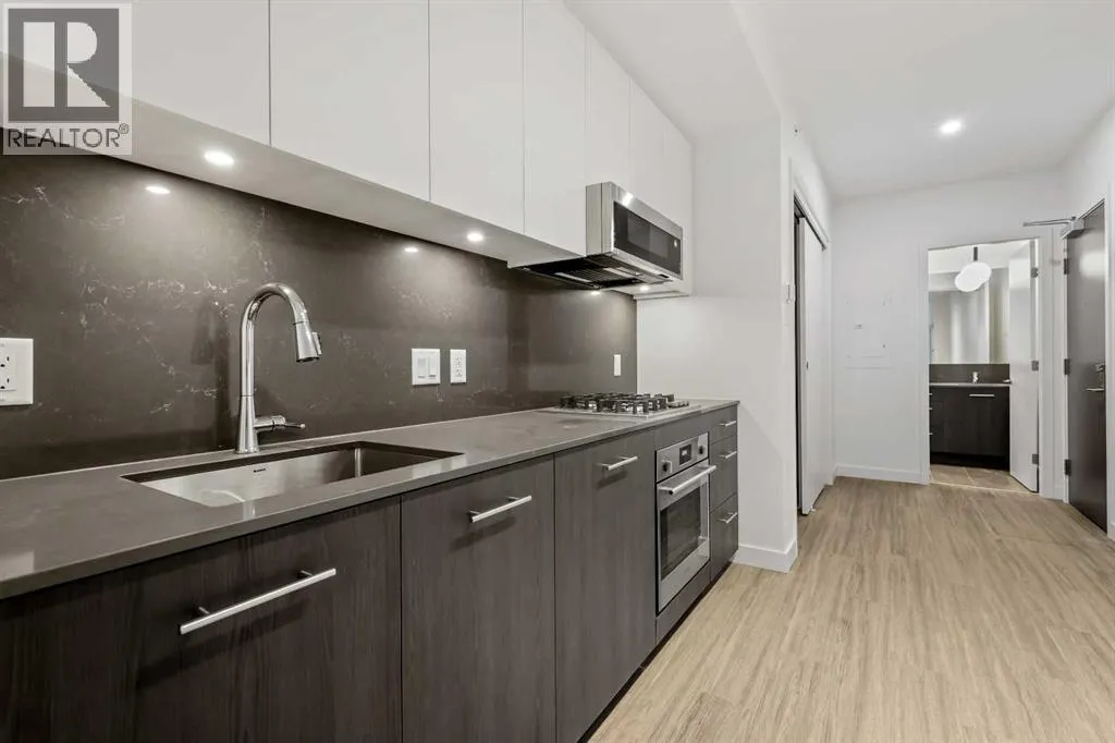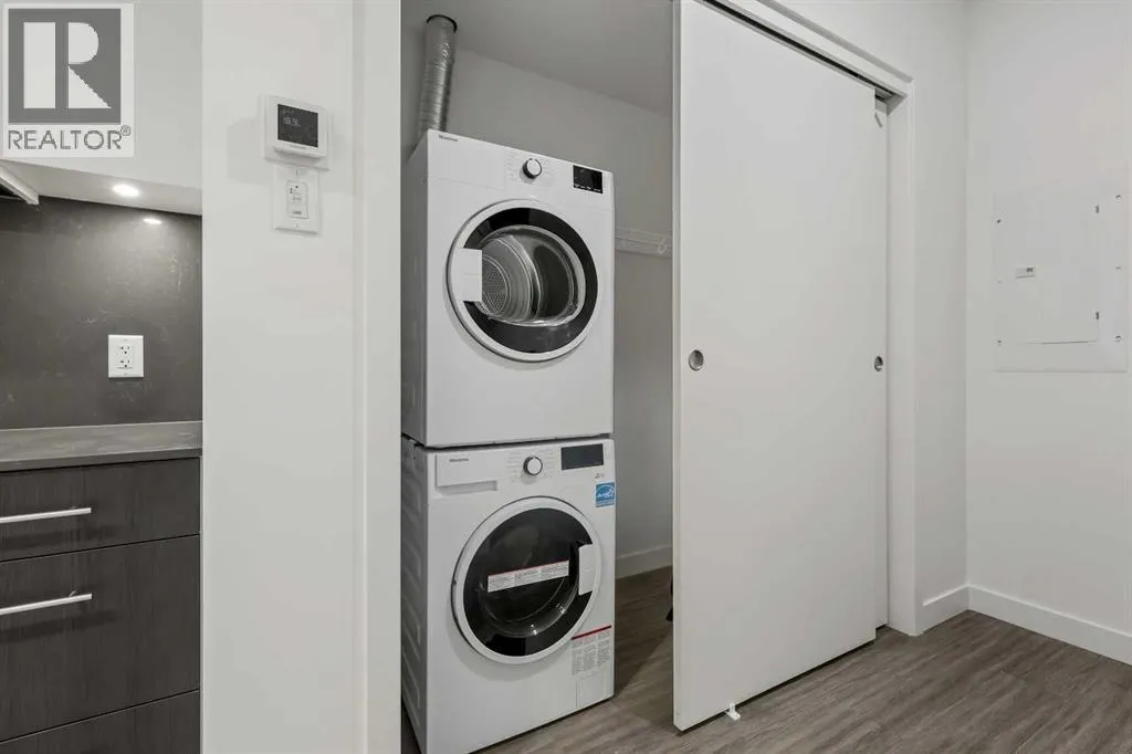 Welcome to Unit 207 at First & Park â a contemporary one-bedroom, one-bathroom condo ideally located in Calgaryâs desirable Eau Claire district. This stylish unit offers the best bang for your buck in the building!The kitchen boasts stainless steel appliances, quartz countertops, and plenty of cabinetry, while the living area offers extra space to relax or entertain as it continues out to your private balcony. Additional highlights include in-suite laundry, full bathroom, a titled storage locker, and building amenities - fitness/yoga studio, party lounge, coworking space, concierge 7 days a week, snaile package centre, and two elevators.Enjoy being just steps from the Bow River pathways, Princeâs Island Park, Eau Claire Market, and downtownâs best restaurants, cafés, and shops â all while living in a quiet, boutique building. Whether youâre a first-time buyer, investor, or looking for a downtown pied-à -terre, this property checks all the boxes for stylish inner-city living. Packages available for FURNISHED UNITS! 1 titled storage included with unit! (id:27476)