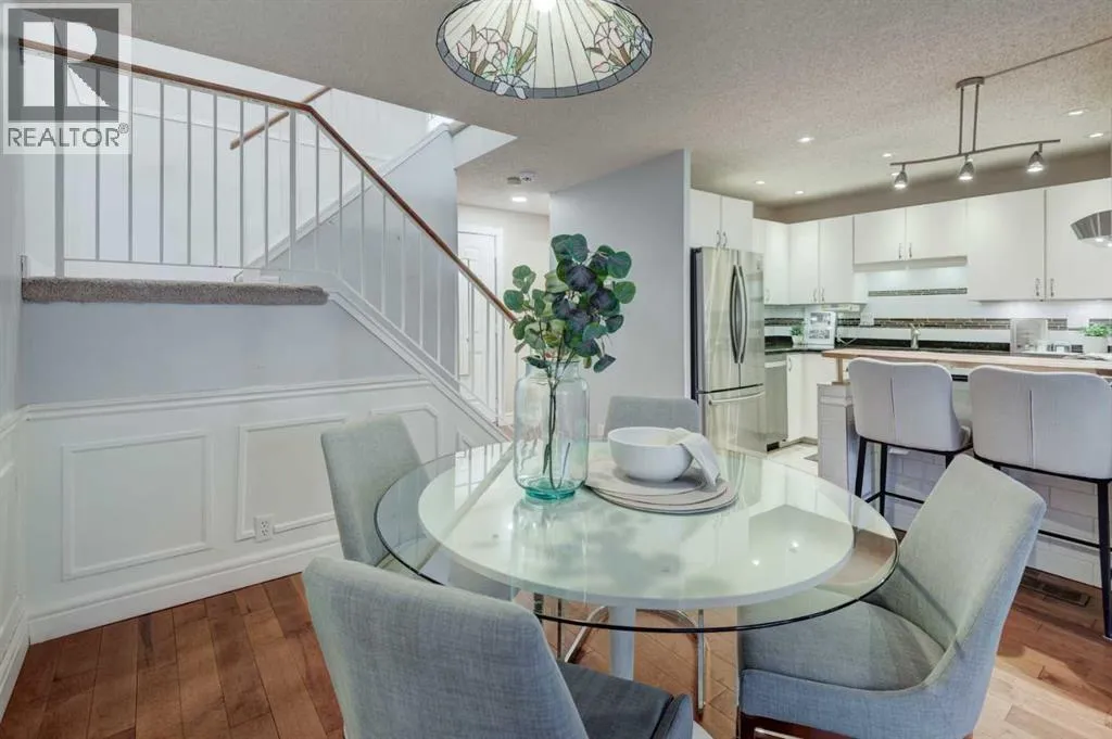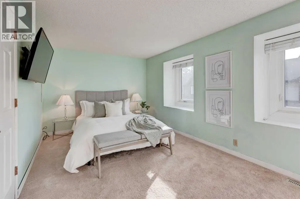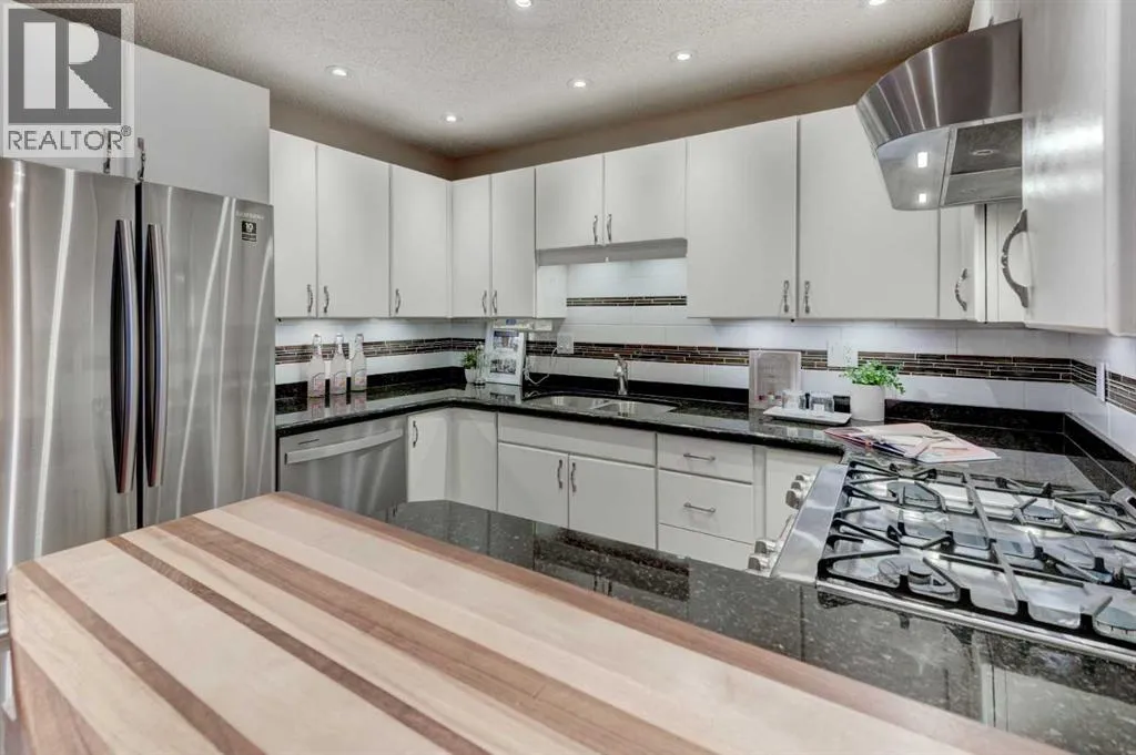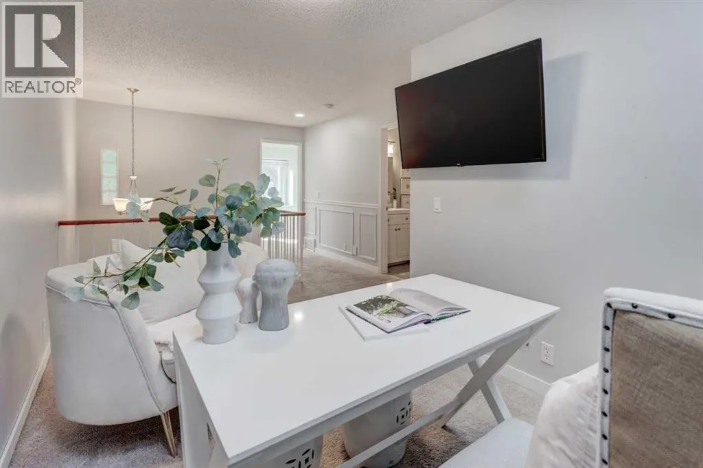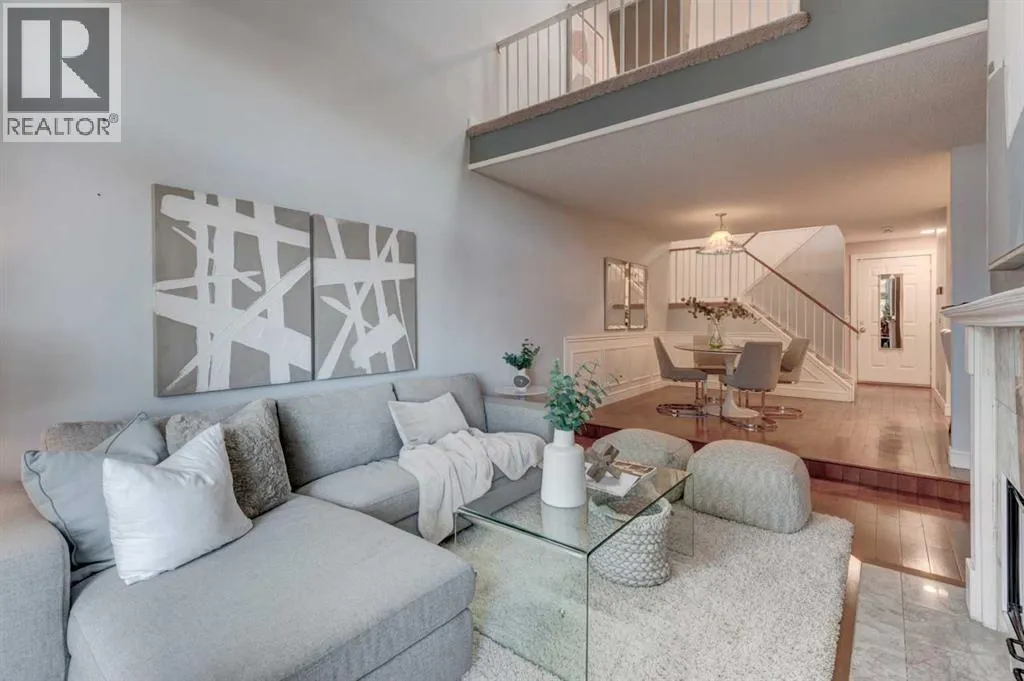 Welcome to your stunning townhouse in the highly sought-after Tiffany Lane! This exceptional residence offers over 1,933 square feet of well-designed living space across three levels of sophisticated modern interior. Step into a bright foyer that showcases a warm color palette complemented by abundant natural light with newer triple pane windows throughout and hard wood flooring, providing the perfect canvas for any decor style. The open-concept design allows for seamless transitions between daily life and high-end entertaining. The living room serves as a dramatic centerpiece with an impressive vaulted ceiling and a cozy glass insert fireplace featuring a stone facing. A culinary delight, the kitchen boasts extensive cabinetry, sleek quartz counters, newer stainless steel with gas stove, a contemporary backsplash with undermount lighting, and a unique butcher block breakfast bar with seating for two. Adjacent to this space sits a generous dining room capable of accommodating everything from intimate gatherings to large dinner parties. A convenient two-piece powder room completes the main level. The upper-level sanctuary features a serene primary retreat equipped with two stylish built-in closets and a luxurious three-piece ensuite featuring a walk-in shower. A second oversized bedroom and a beautifully appointed main bathroom offer plenty of space for family or guests. Highlighting the uniqueness of this specific property is a bright loft area with two skylights, a feature exclusive to this unit alone within the complex. This versatile space is ideal for a sun-drenched home office or a secondary family room.The fully finished basement provides a massive recreation room along with extensive storage options to keep your home organized. Outside, the living room views overlook a private front patio, offering an ideal secluded spot for summer BBQs and soaking up this tranquil outdoor space. For parking and convenience, the home includes a double attached garage. Locate d in the desirable community of Woodbine, this property offers unparalleled access to Fish Creek Provincial Park, scenic walking paths, and vibrant green spaces. Residents enjoy a mature neighborhood atmosphere with quick access to Stoney Trail, nearby playgrounds, public transit, and premium shopping. A home of this caliber in such a premier complex will not last long. Book your private showing today! (id:27476)