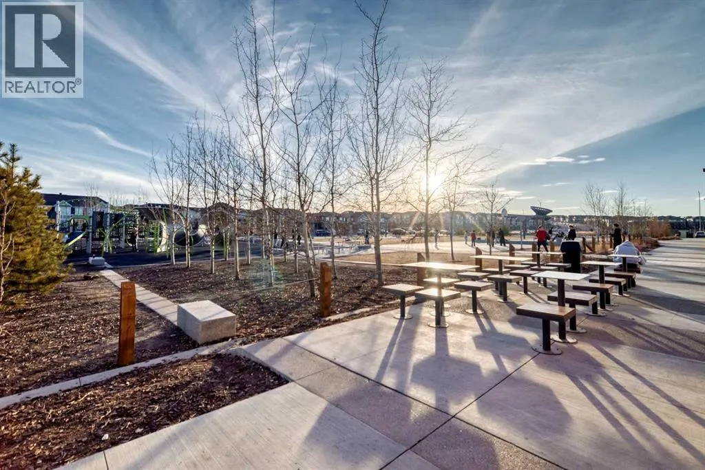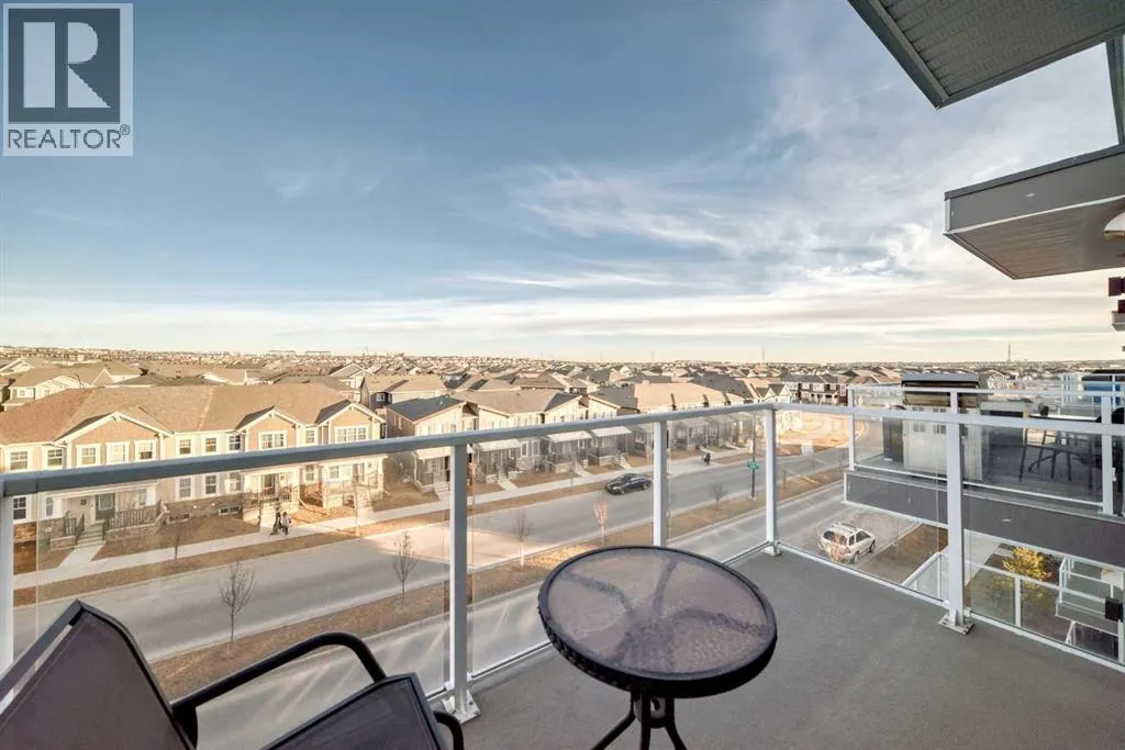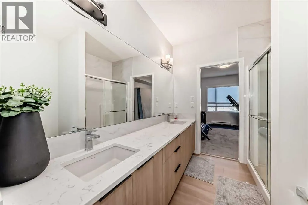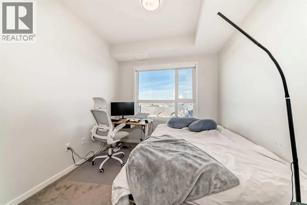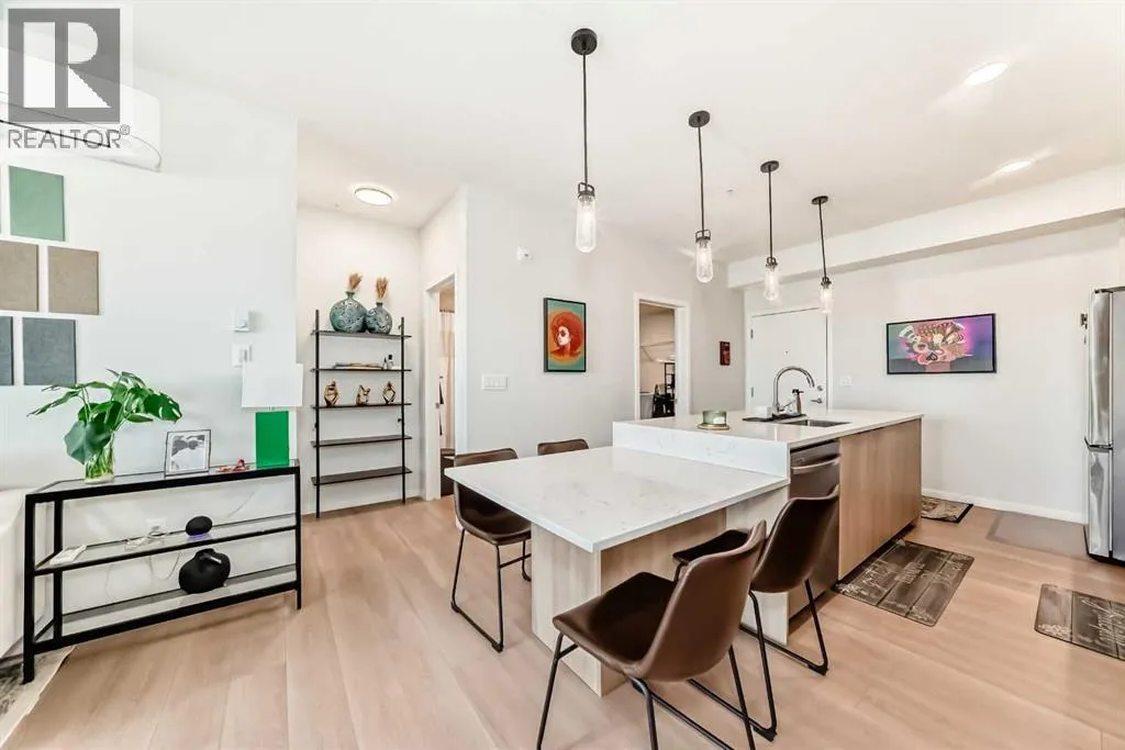 If you have been searching for a modern condo in NW Calgary that does not feel cookie-cutter, this is it. Located in Carrington, this TOP-FLOOR home gives you privacy, light, and a clean contemporary design. Built in 2022 by Cedarglen, this 860+ sqft condo was designed for real life. Not just photos. The kitchen is upgraded and finished with TWO-TONE CABINETS to the ceiling, GLASS-FRONT UPPERS, QUARTZ COUNTERS, a BUILT-IN OVEN and microwave, a cooktop with HOOD FAN and a CUSTOM BUILT-IN DINING area. It feels sleek, modern, and intentional, perfect for hosting. This 2 BED / 2 BATH layout offers separation and function. The primary bedroom has an ensuite with DOUBLE VANITY, walk-in shower and a massive WALK-IN CLOSET. The second bedroom has its own WALK-IN CLOSET too, and is adjacent to the guest bath. The huge LAUNDRY ROOM offers serious storage. You also get A/C, titled underground PARKING and a separate STORAGE LOCKER. No sweating in the summer. No scraping snow in winter. No clutter in your living space. TOP FLOOR means no one above you. More peace. More quiet. Nearby GREENWAY PARK offers playgrounds, a basketball court, a skate park, art installations, and access to the Rotary Mattamy Greenway trail system. In fact, there are about 65 acres of green space and connected pathways making it easy to stay active. The SHOPS OF CARRINGTON GREEN, with groceries, restaurants, and professional services, are literally at your doorstep. Quick routes to major roadways and future Green Line LRT expansion make commuting simple. Stop settling for average condos. This one checks all the boxes. (id:27476)