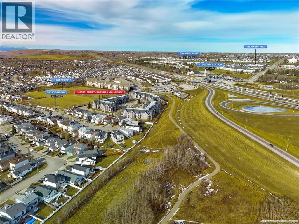 Wake up to mountain views. Come home to Tuscany. And enjoy the kind of top-floor living that just feels better.Perched on the top level of a beautifully maintained complex facing green space, this almost 1,000 sq ft, 2-bedroom, 2-bath condo offers privacy, natural light, and those coveted west-facing views of the Rockies. No neighbours above you. No compromise on style. Just smart design and thoughtful updates from end to end.The kitchen is where this home truly shines. Tastefully updated with new appliances, refreshed hardware, and a clean, modern aesthetic, it offers generous prep space and storage while giving you those luxurious vibes. Itâs functional, polished, and designed for real life â whether thatâs weeknight dinners or a quiet Sunday morning coffee with mountain views in the background.Brand new luxury vinyl plank flooring runs seamlessly throughout the entire home, creating warmth and continuity from room to room. Fresh paint gives the space a crisp, move in ready feel. Both bathrooms have been tastefully updated with quartz counters, offering a cohesive, elevated finish that feels current without being trendy. Plumbing fixtures, door hardware, baseboards and several other updates have been added over the last year. The layout is ideal â two well sized bedrooms thoughtfully positioned for privacy, including an oversized primary retreat with walk through closet and its own ensuite. Both bedrooms are ample in size with large windows drenching the rooms with that ideal west facing light. Whether youâre a first-time buyer or a downsizer, the floor plan simply works. The building also offers a rentable party room, a cozy den/lounge area and is spotlessly clean as well as meticulously maintained throughout. Beyond the unit itself, the lifestyle here is hard to beat. Youâre walking distance to the Tuscany C-Train station, with easy access downtown when you need it. Groceries, gas and the pharmacy is only a quick 15 minute walk. Pathways and bike trail s are right outside your door for evening strolls or weekend rides. And with Stoney Trail just minutes away, getting anywhere in the city â or out to the mountains â is effortless.Mountain views. Top-floor privacy. Thoughtful updates. A well-managed, beautifully maintained development in one of NW Calgaryâs most desirable communities. This one checks all the boxes â and then some (id:27476)