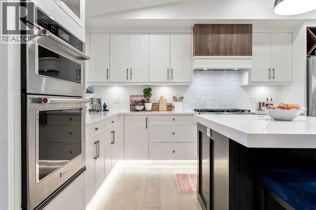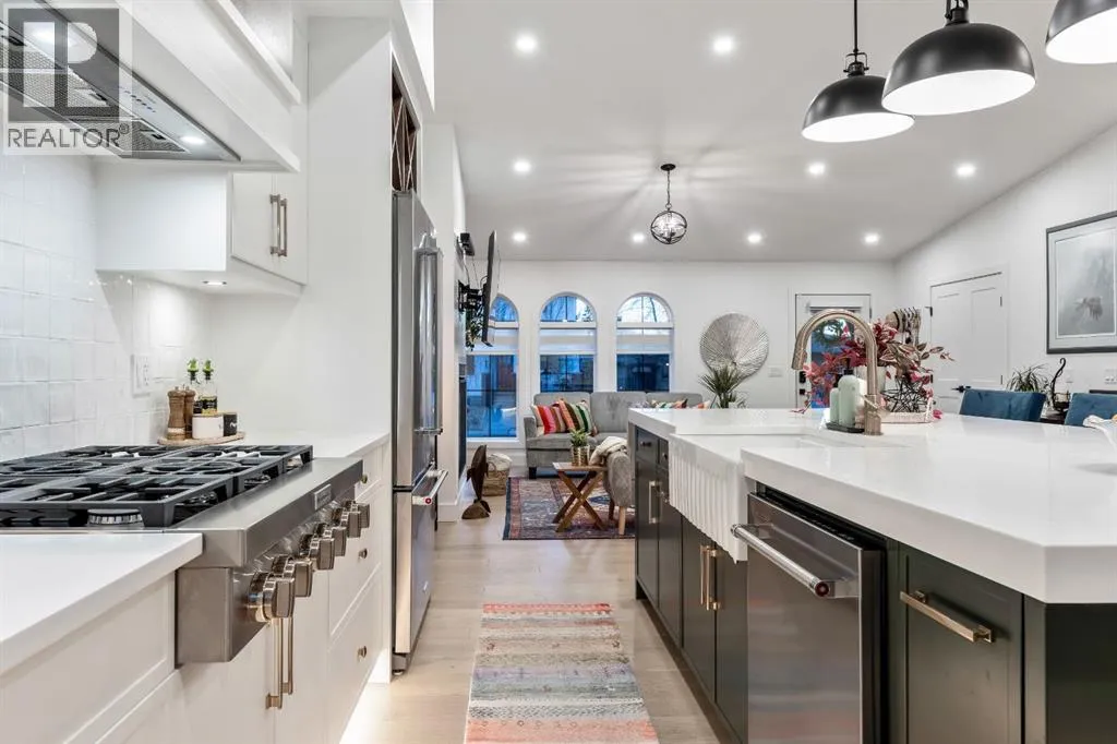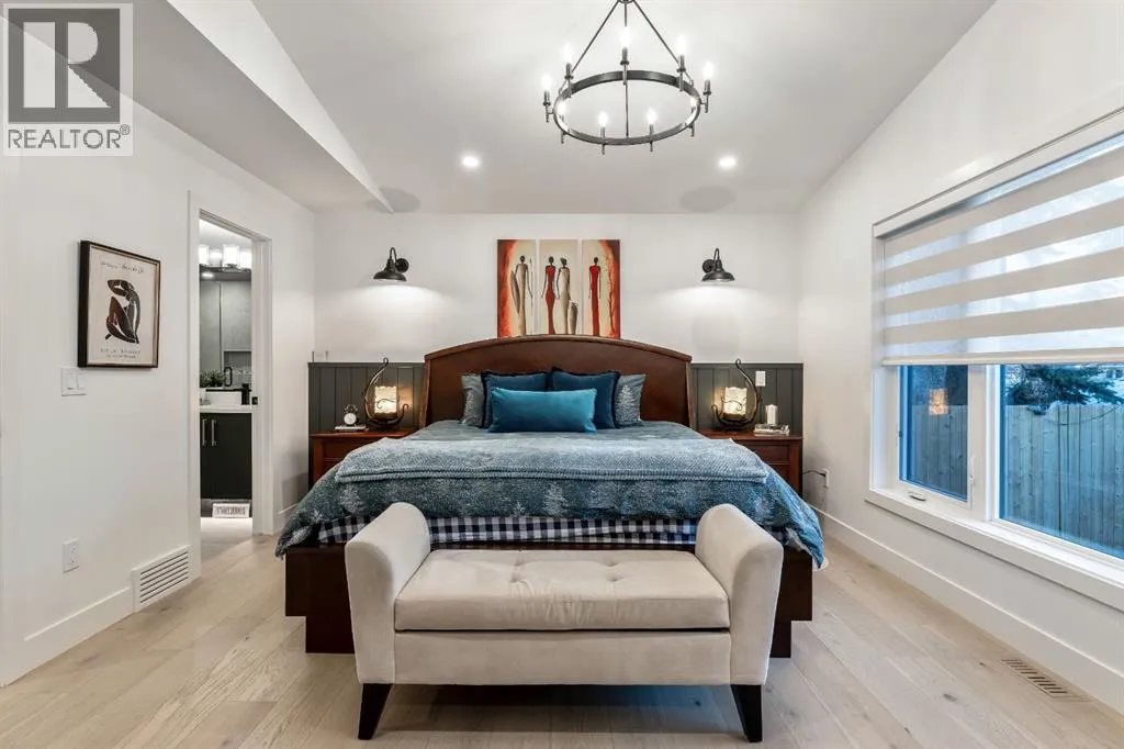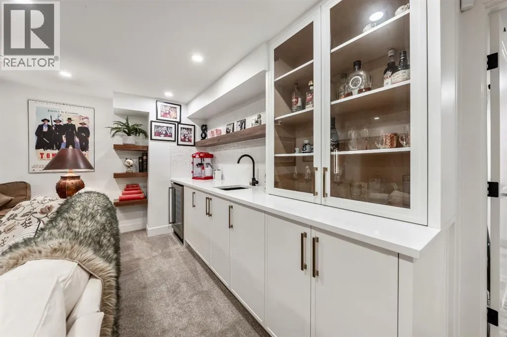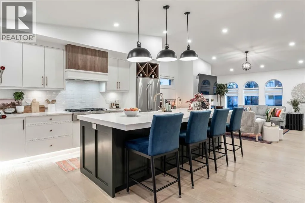 Welcome to this exceptional, fully renovated bungalow in the highly sought-after community of Wildwoodâan outstanding opportunity for buyers looking for a truly move-in-ready home with timeless style and modern comfort. This property showcases a refined blend of contemporary finishes and classic architectural details, creating warmth and character rarely found in newer construction. Mature willow trees and professionally designed landscaping frame the approach, while new springline windows and premium Hardie board siding enhance the homeâs striking exterior as you step through the charming brick archway onto the inviting front porch.Inside, the home has been thoughtfully reimagined with both front and rear additions, resulting in an expansive and functional layout. Vaulted ceilings, upgraded lighting, and beautiful white oak flooring highlight the bright, open-concept main level. Elegant arched windows flood the living space with natural light, drawing attention to the cozy gas fireplace that anchors the room. The kitchen is a true centrepiece, featuring a substantial quartz island, farmhouse sink, designer pendant lighting, custom hood fan, and a full KitchenAid stainless steel appliance package. Crisp white cabinetry and backsplash selections create a clean, sophisticated aesthetic ideal for both everyday living and entertaining. The adjoining dining area opens seamlessly to the rear deck through sliding glass doors, offering effortless indoor-outdoor flow. A sliding barn door reveals a beautifully designed mudroom complete with herringbone tile flooring, custom built-ins, a feature shiplap wall with bench and hooks, and floor-to-ceiling cabinetry surrounding the rough-in for a washer & dryer.Down the hall, the spacious primary suite offers a peaceful retreat with vaulted ceilings, a feature accent wall, and a custom walk-in closet with extensive built-ins. The spa-inspired ensuite includes dual sinks, a freestanding soaker tub, a rainfall shower with bench, hea ted floors, and floating vanitiesâluxurious details that elevate everyday living. The second primary bedroom also features its own walk-in closet and private ensuite, making it ideal for guests or multigenerational living, while the stylish powder room completes the main level.Fully developed basement offers a comfortable lounge atmosphere with plush carpeting, a recreation area with wet bar, two additional bedrooms with walk-in closets, a fourth bathroom, and an additional well-appointed laundry space. Extensive upgrades include new subfloors, trusses, furnace, air conditioning, plumbing, electrical, and moreâproviding peace of mind for years to come. A double detached garage is located off the rear alley, and utilities have been relocated underground for added functionality and curb appeal.Situated near parks, schools, and the many amenities along Bow Trailâwith downtown Calgary just minutes awayâthis beautifully renovated bungalow offers the perfect balance of location, lifestyle, and luxury. (id:27476)