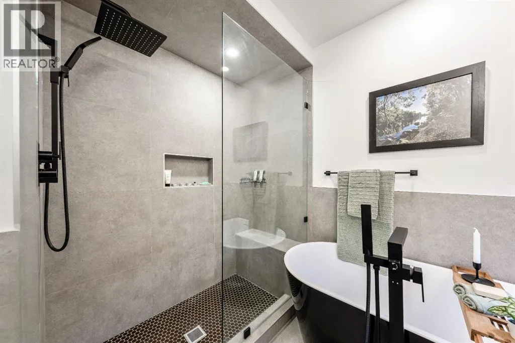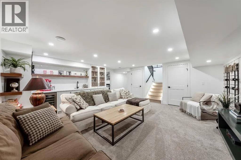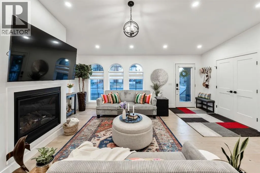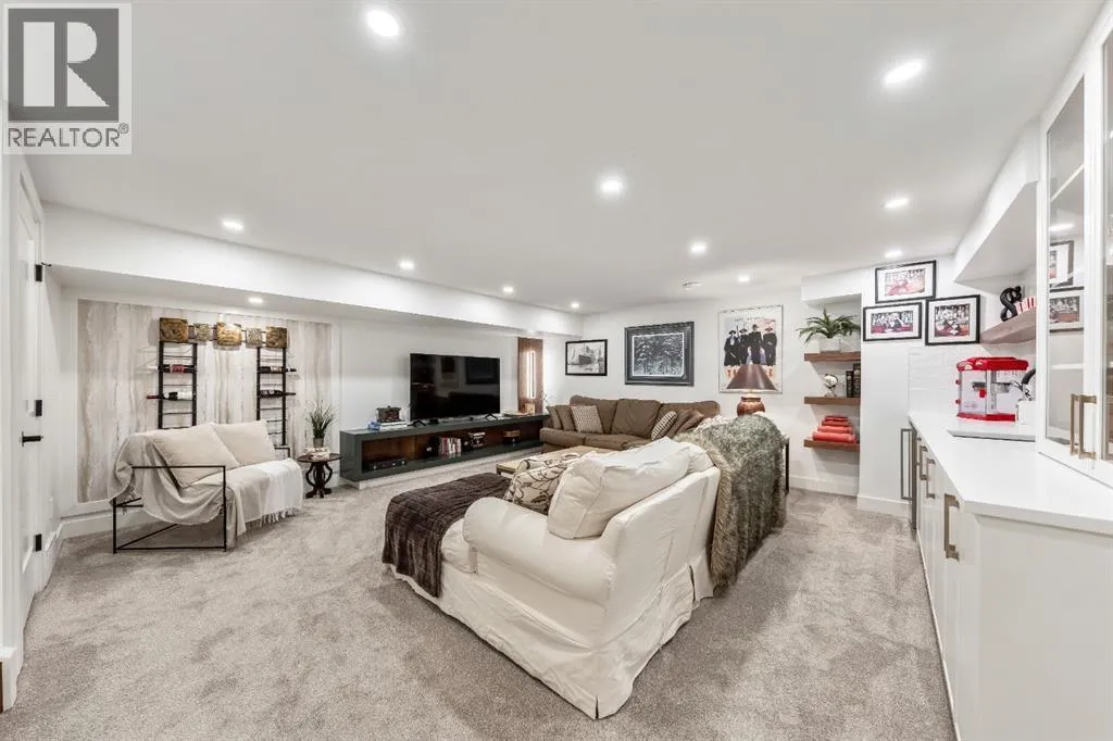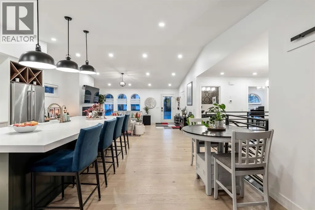 Welcome to this exceptional, fully renovated bungalow in the highly sought-after community of Wildwoodâan outstanding opportunity for buyers looking for a truly move-in-ready home with timeless style and modern comfort. This property showcases a refined blend of contemporary finishes and classic architectural details, creating warmth and character rarely found in newer construction. Mature willow trees and professionally designed landscaping frame the approach, while new springline windows and premium Hardie board siding enhance the homeâs striking exterior as you step through the charming brick archway onto the inviting front porch.Inside, the home has been thoughtfully reimagined with both front and rear additions, resulting in an expansive and functional layout. Vaulted ceilings, upgraded lighting, and beautiful white oak flooring highlight the bright, open-concept main level. Elegant arched windows flood the living space with natural light, drawing attention to the cozy gas fireplace that anchors the room. The kitchen is a true centrepiece, featuring a substantial quartz island, farmhouse sink, designer pendant lighting, custom hood fan, and a full KitchenAid stainless steel appliance package. Crisp white cabinetry and backsplash selections create a clean, sophisticated aesthetic ideal for both everyday living and entertaining. The adjoining dining area opens seamlessly to the rear deck through sliding glass doors, offering effortless indoor-outdoor flow. A sliding barn door reveals a beautifully designed mudroom complete with herringbone tile flooring, custom built-ins, a feature shiplap wall with bench and hooks, and floor-to-ceiling cabinetry surrounding the rough-in for a washer & dryer.Down the hall, the spacious primary suite offers a peaceful retreat with vaulted ceilings, a feature accent wall, and a custom walk-in closet with extensive built-ins. The spa-inspired ensuite includes dual sinks, a freestanding soaker tub, a rainfall shower with bench, hea ted floors, and floating vanitiesâluxurious details that elevate everyday living. The second primary bedroom also features its own walk-in closet and private ensuite, making it ideal for guests or multigenerational living, while the stylish powder room completes the main level.Fully developed basement offers a comfortable lounge atmosphere with plush carpeting, a recreation area with wet bar, two additional bedrooms with walk-in closets, a fourth bathroom, and an additional well-appointed laundry space. Extensive upgrades include new subfloors, trusses, furnace, air conditioning, plumbing, electrical, and moreâproviding peace of mind for years to come. A double detached garage is located off the rear alley, and utilities have been relocated underground for added functionality and curb appeal.Situated near parks, schools, and the many amenities along Bow Trailâwith downtown Calgary just minutes awayâthis beautifully renovated bungalow offers the perfect balance of location, lifestyle, and luxury. (id:27476)