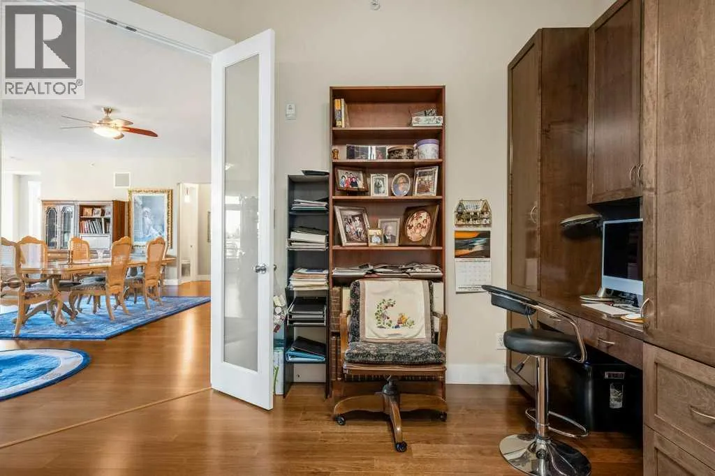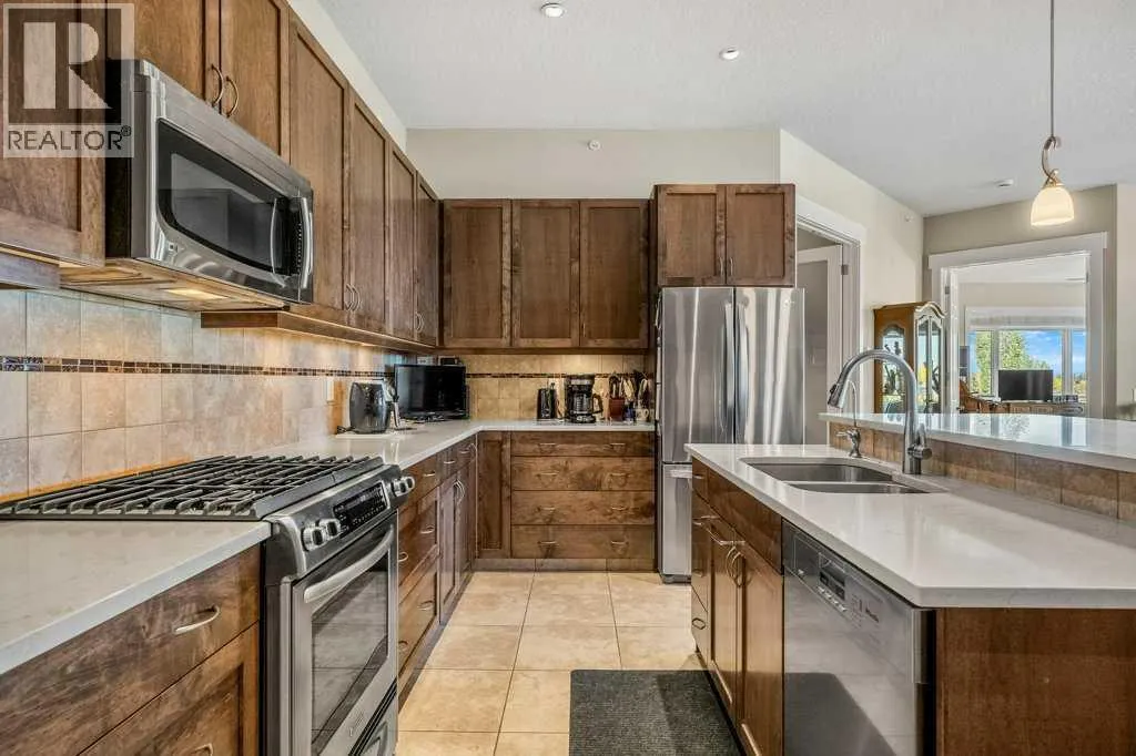 The top of the building is a small club. And membership is limited. Perched above the walking paths, stretching over the golf course and into the city skyline beyond, this 2,084 sqft penthouse isnât just space â itâs presence. The sheer size checks the boxes and the 3 bedroom layout seals the deal. Transition from a life of cutting grass + shovelling snow to a lifestyle of sitting back + enjoying the ease of condo living. Over $100,000 has been invested with intention and refinement. Every upgrade curated - every finish deliberate. Step foot into a gourmet kitchen dressed in quartz, anchored by a gas range, stainless steel appliances, wine fridge, full pantry and customized pull-out drawers throughout. The heart of the home boasts seamless sight lines across the open-concept layout will be the desired spot for many gatherings in the years to come. The connected living + dining spaces invite celebration â whether itâs dinner for twelve or a quiet glass of wine by the gas fireplace. This is where new memories with those closest to you commence. From 10-foot ceilings to immersive built-in audio and your own projection theatre, every detail was designed for effortless living â complete with a full Hunter Douglas blinds package and phantom screens for year-round comfort. Retreat to your nearly 300 sqft primary suite, wrapped in a wall of windows. The ensuite elevates daily ritual with dual sinks and a steam shower with bench, while a fully built-out walk-in closet keeps life organized. With three rooms on hand, it provides flexibility for guests and potential for a den, lounge or library. Let's move on to the statement piece - your 600 sqft outdoor terrace. Morning coffee above the fairways - sunset cocktails over the city lights. This exterior haven provides you the space to entertain + exhale. The purchase will come with two underground, side by side parking stalls and a separate storage locker for seasonal goods. You will also find a car wash bay + bike storage onsite . The community amenities include a large fitness facility along with recreation room which hosts several resident meet ups + gatherings throughout the year. A location close to all your daily requirements, mere blocks to the c-train, walkable to the golf course and minutes into the downtown office core. This Penthouse more than an address - it's a statement piece, a vantage point and a lifestyle reserved for those who prefer privacy. Your opportunity to live where others look up. (id:27476)