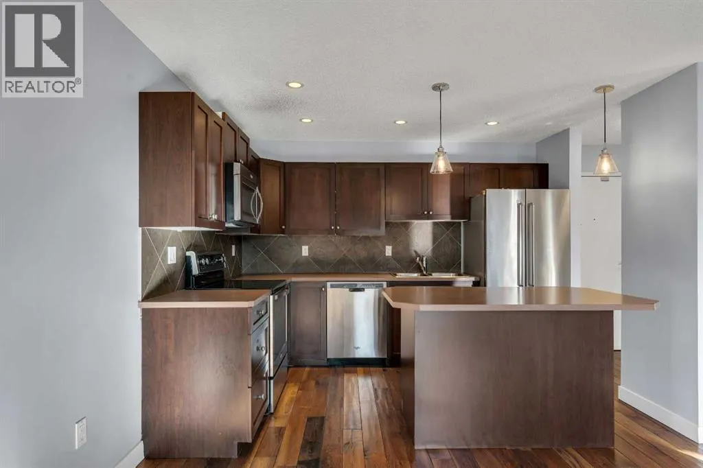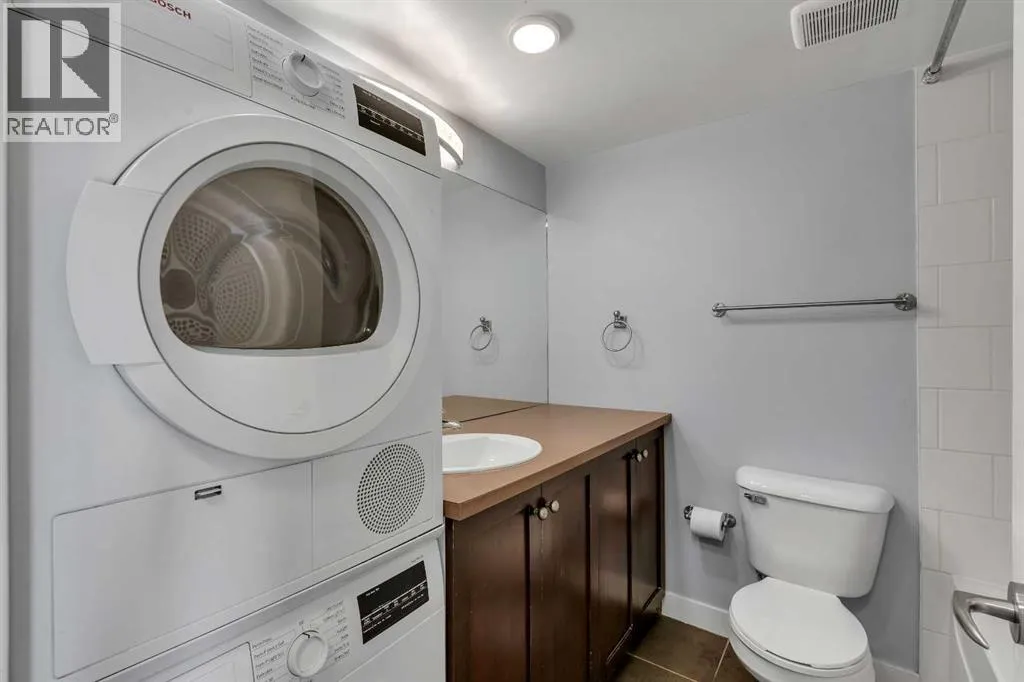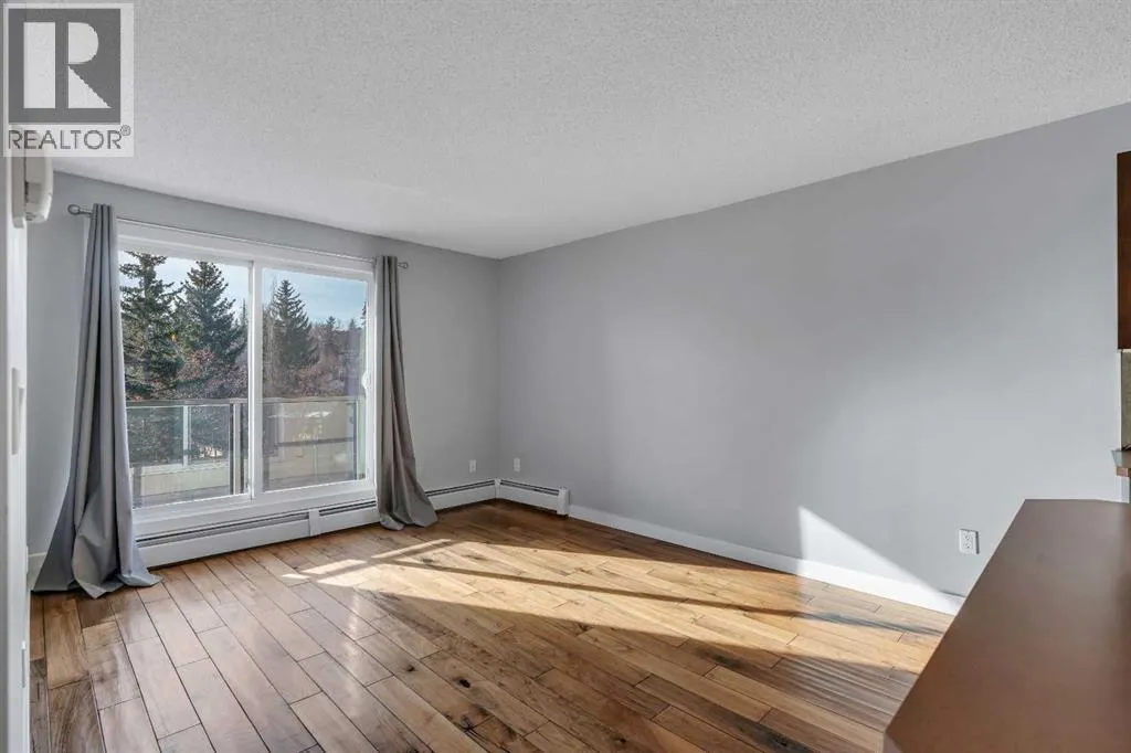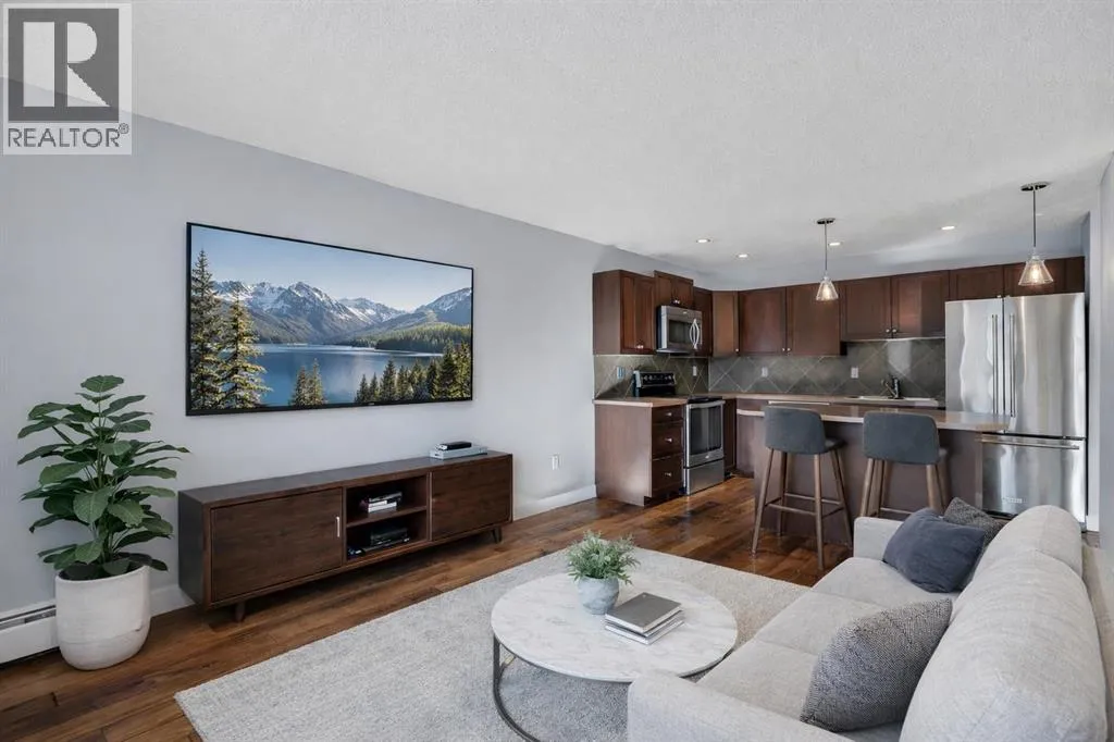 Welcome to the Roseberry! This fantastic condo in Sunalta offers the perfect combination of comfort and convenience, featuring insuite laundry, an assigned parking stall, and a bright open-concept layout. This sunny, south-facing unit has rich walnut hardwood flooring throughout and the kitchen is complete with an island with seating, stainless steel appliances, and ample cupboard and counter space. The spacious living room offers direct access to the south-facing balcony with storage. The primary bedroom is a good size and the well-appointed bathroom conveniently includes the insuite washer and dryer. An outdoor assigned parking stall completes this great condo. Located in the inner-city community of Sunalta, youâre just a short walk to downtown and steps to the LRT station, providing easy access throughout the city. Donât miss your opportunity to own this fantastic condo! (id:27476)