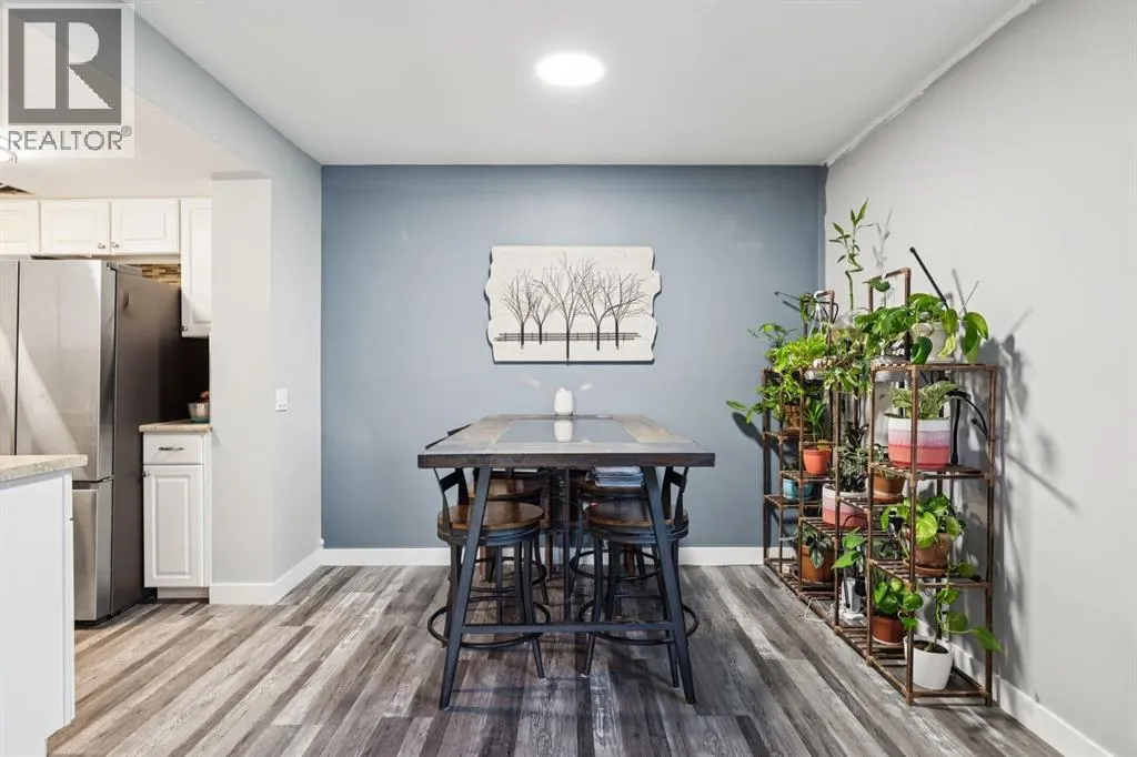 Unbeatable Location! Steps from the ridge, minutes to Fish Creek Park, and fantastic transit access. This lovely 3-bedroom condo features a open living/dining space with a cozy wood-burning fireplace and patio doors leading to a large, fully fenced private courtyard. The kitchen features white cabinetry, tiled backsplash, and stainless steel appliances. Upstairs offers three generous bedrooms and a spacious bath with double sinks. Beautiful Vinyl plank flooring throughout. Major updates in the complex include new windows, patio doors, front door, trim, fencing, large shed for additional storage, and durable Hardy Board exterior â the entire complex has undergone a full exterior overhaul. (id:27476)