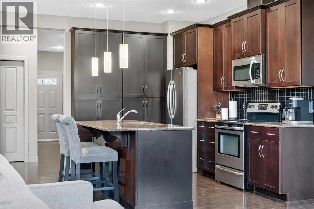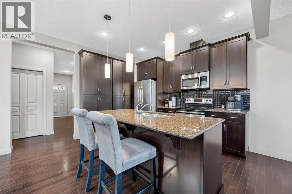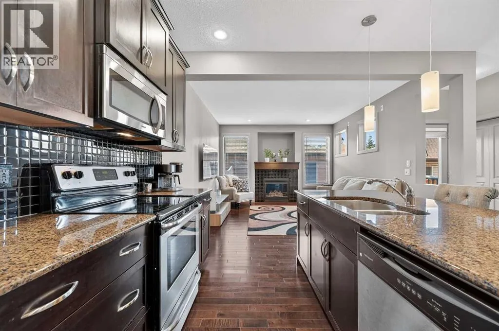 JEWEL BOX OF A DEAL | CHAPARRAL VALLEY | NATURE & LUXURY COMBINEDWelcome to a truly exceptional home where lifestyle meets location in the heart of Chaparral Valleyâjust steps from Fish Creek Park, the Bow River pathways, Blue Devil Golf Course, ponds, playgrounds, and an abundance of green space. This custom-crafted home offers over 1,629 sq ft of beautifully designed living space, 3 bedrooms plus a main-floor den, 2.5 bathrooms, and stunning views that create a peaceful retreat in an urban setting.The thoughtfully designed open-concept main level is ideal for modern family living and effortless entertaining. Soaring 9â ceilings on both the primary enhance the spacious feel, while extra windows flood the interior with natural light. The chef-inspired kitchen is the heart of the home, featuring rich dark-stained shaker cabinets extended almost to the ceiling, granite countertops, a large central island with an eating bar, a wall pantry, a full-height tile backsplash, and upgraded stainless steel appliances.Overlooking the dining area and cozy great room with a gas fireplace, the main floor also includes a private front-facing denâperfect for a home office, reading room, or play area.Upstairs, you'll find a spacious primary suite with a private ensuite including a separate tiled shower, long vanities, and a supersized walk-in closet. Two additional bedrooms, an upper-floor laundry room, and a second full bathroom complete this well-planned level.Step outside to your backyard oasis, a sunny and private west-facing yard with a detached garage, low-maintenance landscaping, a raised BBQ deck, and a lower patio - all perfect for relaxing, entertaining, or family fun. Curb appeal is top-notch, featuring wood column accents, stone detailing, upper front verandah and a covered front porch that warmly welcomes guests.Additional upgrades include:Hardwood floorsModern lighting and plumbing fixturesGranite countertops Custom baseboards, doors, and trimUnspoiled b asement with great development potentialLocated near schools, shopping, restaurants, public transit, and the South Health Campus in Seton, this home is a must-see for families, professionals, or anyone seeking a lifestyle rooted in both nature and convenience.Donât miss your chance to view this one-of-a-kind propertyâcall your friendly REALTOR® today for a private tour! (id:27476)