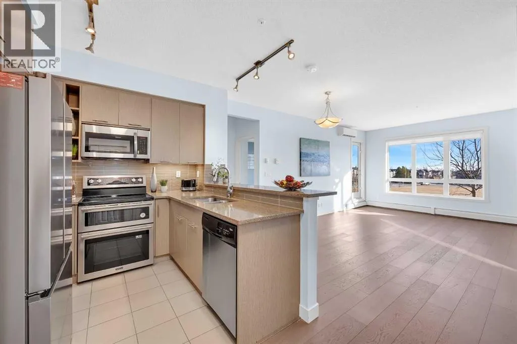 Welcome to Unit 3115 at 175 Silverado Boulevard SW - a bright and freshly painted main-floor condo offering 858 SqFt of well-designed living space in desirable community of Silverado. This thoughtfully laid-out unit features the stylish and functional kitchen with granite counter tops, stainless steel appliances (brand new: refrigerator and microwave), complementing the open-concept living and dining area; two bedrooms separated by the living room, providing excellent privacy for roommates, guests, or home office setup. The primary bedroom incudes a walk-in closet and a private 3pc ensuite bathroom, while the second full 4pc bathroom is conveniently located near the second bedroom. A wall-mounted Air-Conditioning unit keeps the home comfortable during warmer months. Step outside to your private patio facing a green zone, offering a peaceful setting and added privacy - perfect for morning coffee or relaxing evenings. Additional highlights - titled underground parking and a separate storage unit, add value and extra space. This apartment is located close to all amenities: parks, playgrounds, walking paths, elementary, junior high and high schools, shopping, restaurants and quick access to major roadways and transit. A move-in-ready opportunity for first time buyers, downsizers, or investors seeking comfort, functionality, and a great location. (id:27476)