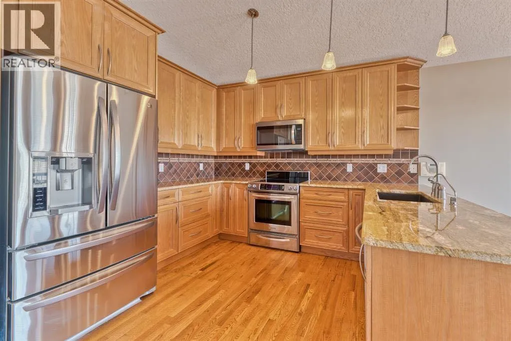 Beautifully maintained bungalow walkout in a prime location offering over 2,500 square feet of developed living space, a bright legal suited walkout basement, and 11 solar panels to significantly reduce monthly utility costs. The main level features hardwood floors, vaulted ceilings, fresh paint, a spacious great room with gas fireplace, and a dream kitchen with granite countertops, upgraded cabinetry, stainless steel appliances, new dishwasher (January 2026), and hood fan vented directly outside, plus a sunny breakfast nook opening to the upper deck. The formal dining area is currently used as a home office, while the generous primary bedroom includes a four piece ensuite with separate shower and jetted tub, along with an additional bedroom and full bathroom. The main floor laundry room offers Kenmore front load washer and dryer with storage drawer base, freshly painted walls (2024), and direct exterior venting. The lower level includes a legal suited walkout basement with a large living area, full kitchen, two bedrooms, full bathroom, mudroom entry, cold room storage, and exterior venting. Outside, enjoy a massive backyard with stamped concrete patio space, greenhouse, maintenance free front drive and walkways, plus a newer roof (2020), making this an exceptional home with flexibility and income potential. (id:27476)