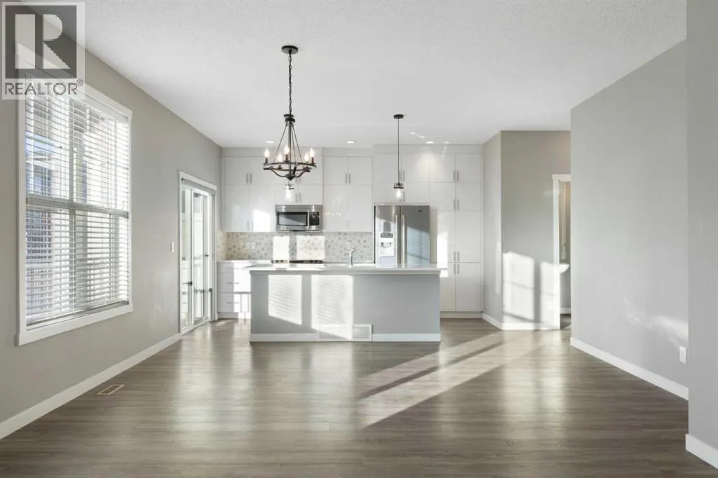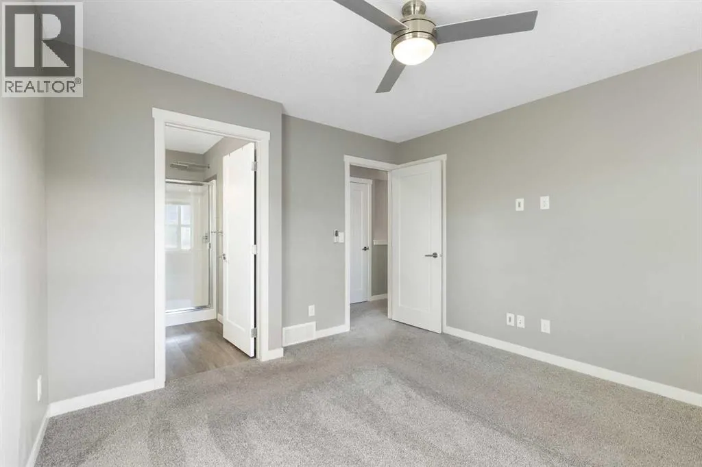 Welcome to this beautifully maintained end-unit townhome in the sought-after community of Nolan Hill. Offering 2 bedrooms and 2.5 bathrooms, this thoughtfully designed layout features highly desired layout with dual primary suites â each complete with its own walk-in closet and private ensuite â making it ideal for roommates, guests, or a comfortable work-from-home setup.The open-concept main floor is filled with natural light from additional end-unit windows and showcases 9â ceilings, modern vinyl plank flooring, and a timeless & modern colour palette. The kitchen is both stylish and functional, featuring quartz countertops, stainless steel appliances, a large centre island with eating bar, floor-to-ceiling cabinetry, and a sleek tile backsplash. The dining and living areas flow seamlessly onto the sunny south-facing balcony overlooking green space, complete with a gas line for BBQ and room for outdoor seating â a rare and peaceful setting for townhouse living.Upstairs, laundry is thoughtfully located for everyday ease. The full-footprint undeveloped basement offers impressive storage and flexibility for future plans, while the attached garage with parking pad ensures practical day-to-day functionality, with additional visitor parking close by.Located just minutes from Beacon Hill Shopping Centre (Costco, restaurants, and amenities), parks, pathways, and major roadways, this home offers exceptional value in a well-connected NW location. An excellent opportunity for first-time buyers, downsizers, or investors seeking a low-maintenance property in a desirable community. Call for your private showing today. (id:27476)
