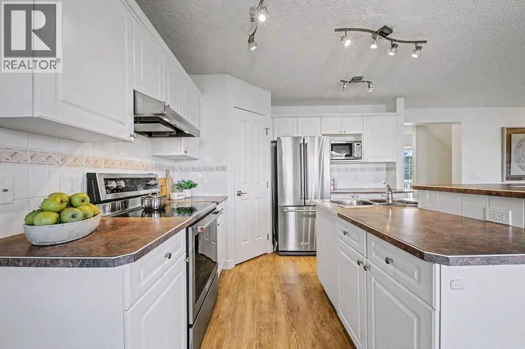 ** OPEN HOUSE | SAT, FEB 14 | 11-1PM ** Perfect home for a young family. Move-in ready, freshly painted and right across from Douglas Glen Park and the school bus stop. Youâll love the cozy front porch, big foyer and open main floor plan. Kitchen opens to dining and family room anchored by a gas fireplace (with a TV niche) all over new engineered flooring. Enjoy the convenience of the main-floor laundry, a 2-piece bath. The kitchen is designed for day-to-day life. Corner pantry, eat-up island with sink and plenty of cabinets and counter space flowing into a bright dining nook with rear deck access. Upstairs adds a kidsâ loft/homework zone, two generous bedrooms, a full bath, and a primary retreat with park views, a walk-in closet, and an ensuite with a soaker tub. Downstairs, the professionally finished basement gives you a large rec room with pot lights, a 2-piece bath, and a flexible den/guest space, plus lots of storage. Add an oversized double attached garage thatâs insulated and drywalled, central A/C, and built-in vacuum. Brand new furnace, window coverings,flooring, trim and fresh paint make this home truly move-in ready. Quick possession possible. (id:27476)