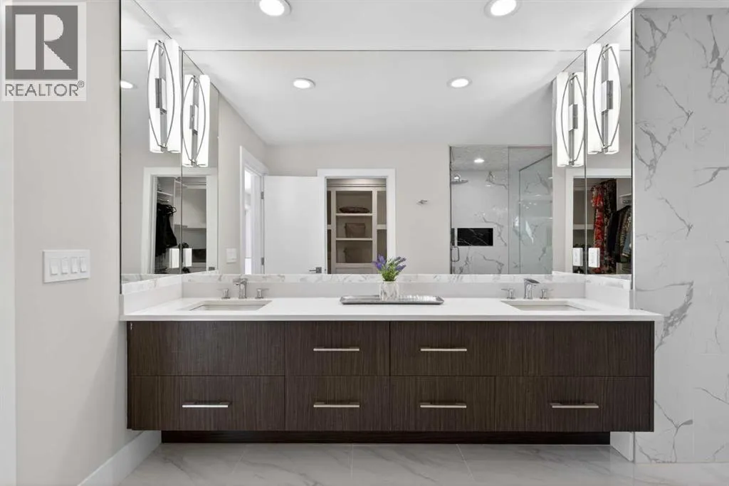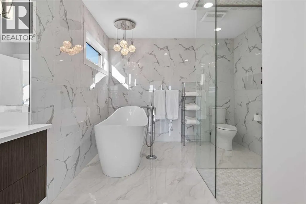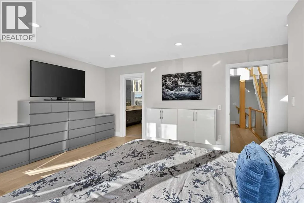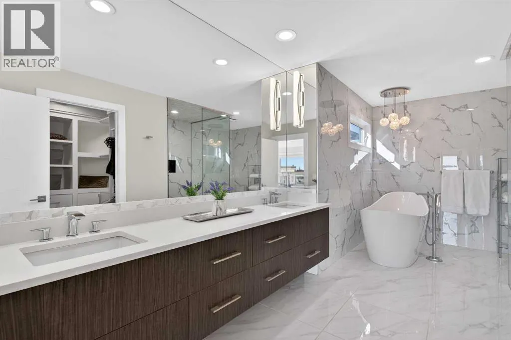 Here in the coveted inner city neighbourhood of West Hillhurst is where youâll find your new homeâ¦this incredible 3-storey semi-detached loaded with the finest of luxury living, in this prime location only minutes to Kensington, Bow River pathway system & downtown. With over 3300sqft of living space spread over 4 levels, this stunning home enjoys a total of 5 bedrooms & 5 bathrooms, quartz countertops & central air, wide-plank engineered hardwood floors & panoramic city views as far as the eye can see! Showcased by expansive 9ft ceilings, youâll just love the design of the main floor with its wonderful open flow & heated ceramic tile floors, from the airy living room with South-facing living room to the spacious dining room with sleek contemporary fireplace, & the fully-loaded kitchen with massive centre island with under-counter cabinets, top-of-the line Miele stainless steel appliancesâ¦including gas cooktop & built-in convection oven, bar area with wine fridge, walk-in pantry & custom cabinets highlighted by 2 huge pull-out spice/pantries. There are 3 bedrooms & 2 full bathrooms on the 2nd levelâ¦including the South-facing ownersâ retreat with 2 walk-in closets, built-in shoe cabinet, floor-to-ceiling windows & spa-inspired ensuite with heated floors & quartz-topped double vanities, free-standing soaker tub & fantastic walk-in glass steam shower. Another bedroom with walk-in closet & its own private ensuite is on the top floor, plus a dynamite loft with skylight & South-facing balcony from where you can check out the downtown skyline & the surrounding neighbourhood. The lower level is beautifully finished with a 5th bedroom with walk-in closet, full bathroom with glass shower & terrific rec room area. Additional features include the 2nd floor laundry room with stacking Samsung steam washer & dryer, built-in ceiling speakers & flat ceilings, built-in storage cabinets in both the front foyer & rear mudroom, roughed-in radon system, closet organizers, heated tile floo rs in the main/2nd floor/3rd floor bathrooms, closet organizers & fully fenced backyard with deck (complete with gas bbq line) & insulated/drywalled detached 2 car garage with 220V wiring. Madeleine DâHouet School is steps from your front door & youâre walking distance to popular neighbourhood parks & playgrounds. A truly amazing opportunity you wonât want to missâ¦to make the home of your dreams come true! (id:27476)