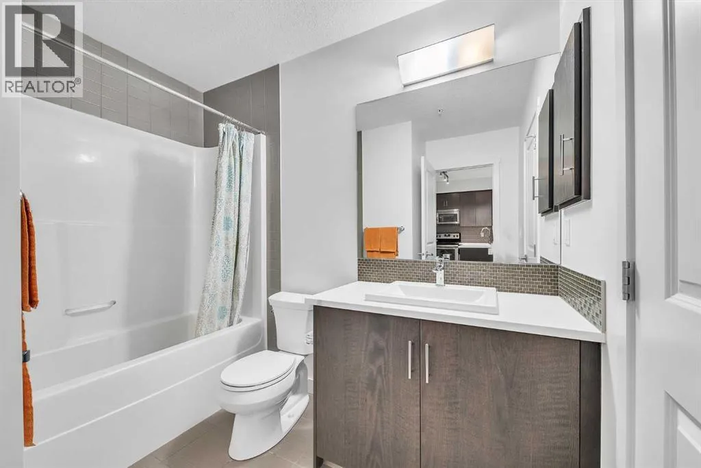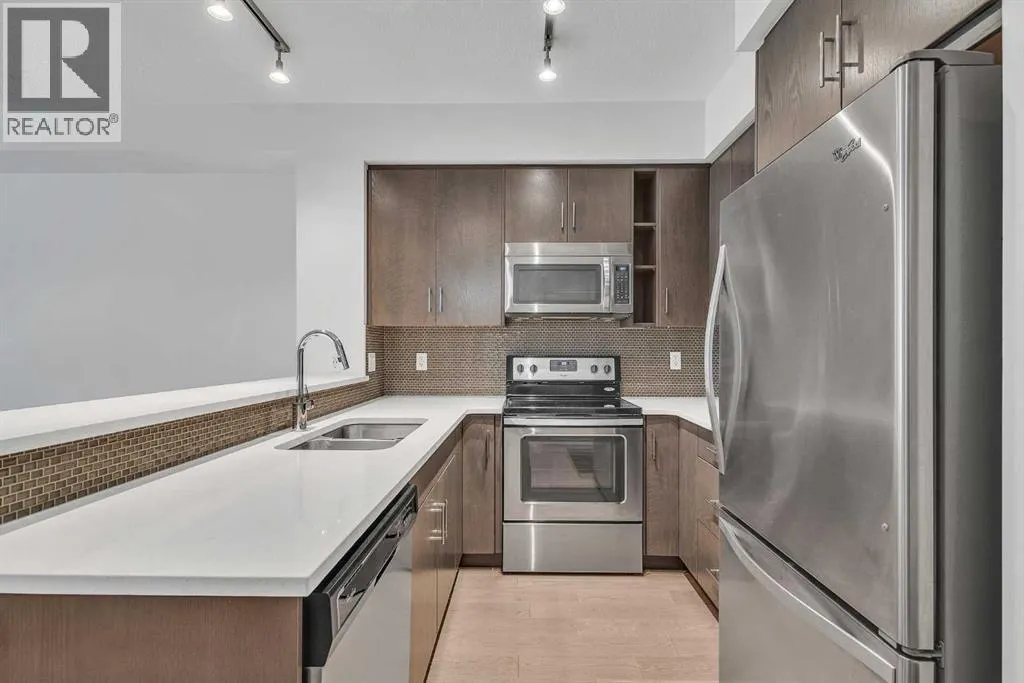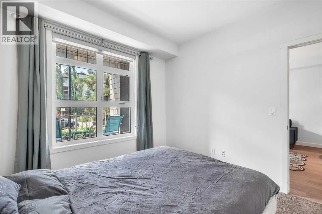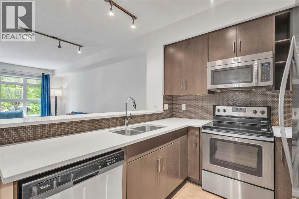 This beautifully appointed 1-bedroom, 1-bathroom west-facing condominium offers exceptional value at an affordable price. Boasting a spacious kitchen complete with soft close drawers, quartz countertops, s/s appliances, and breakfast bar. The great-sized bedroom provides ample space for rest and relaxation, with a walk-through closet and cheater door to the bathroom. The main living space offers gorgeous hardwood floors, newly added air conditioning, upgraded blinds package, big windows for plenty of natural light and large dining and living rooms. There is a covered patio off the living room with BBQ gas line and west exposure for afternoon/evening sun. A titled undergound parking stall is included and there is a storage locker for your extra gear. This home is ideally situated close to the lake and has easy access to public transportation, as well as major roadways such as Deerfoot and Stoney, making commuting a breeze. Nearby shopping, dining, and entertainment options abound, making this the perfect home for first-time buyers, investors, or downsizers looking for a comfortable and convenient lifestyle. Call today to arrange your showing! (id:27476)