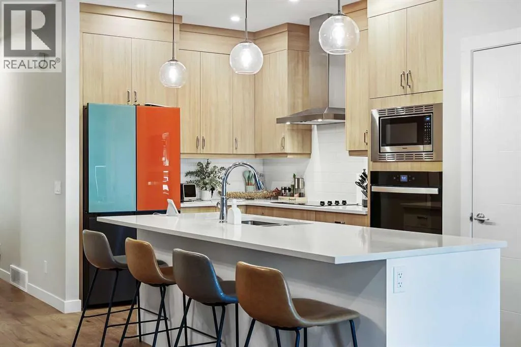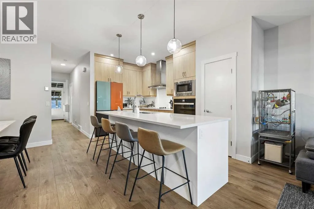Welcome to this stunning and highly customized Brookfield 2-storey home in the vibrant, amenity-rich community of Seton â where modern design meets timeless comfort. Showcasing nearly 2,000 square feet above grade, this exceptional residence has been thoughtfully upgraded and enhanced with personalized touches that elevate its style and function. From the moment you arrive, the homeâs inviting exterior, accented by rich colours, charming front porch, and architectural details, hints at the sophistication that awaits inside. Step into the main living area, where 9-foot ceilings and premium finishes create a sense of openness and warmth. The living room immediately draws your attention with its floor-to-ceiling shiplap feature wall, floating shelves, and a striking marble-inspired fireplaceâa perfect blend of modern elegance and cozy character. Flowing seamlessly from the living space, the Chefâs Gourmet kitchen impresses with full-height cabinetry with rise and crown moulding, built-in wall oven and microwave, sleek cooktop with a chimney-style hood fan, and an expansive quartz island with a flush eating bar. The Arctic white tile backsplash and Blanco undermount sink add a refined finishing touch, while upgraded Cartwright lighting fixtures illuminate the space with designer flair. The dining area, brightened by an additional side window, creates the perfect setting for family meals and entertaining alike. Just beyond, a private main floor bedroom with a full three-piece ensuite featuring a glass-enclosed walk-in shower and floor-to-ceiling tile offers versatility for guests, multi-generational living, or a home office. The rear entry door, framed with encased glass, allows sunlight to sweep through the home and connect the indoors to the outdoors effortlessly. Upstairs, discover three additional spacious bedrooms, each enhanced with custom feature walls. The primary suite is a retreat of its own, showcasing a five-piece spa-inspired ensuite with dual undermount sin ks, quartz counters, and a walk-in closet. The centralized family roomâperfect for movie nightsâcleverly separates the primary suite from the secondary bedrooms, adding privacy and balance to the upper floor. A well-appointed laundry room with built-in counter and storage and a full bath complete this level. The lower level has been thoughtfully roughed-in for a future secondary suite (subject to approval and permitting by the city/municipality), featuring 9-foot foundation walls, rough-ins for a second laundry, kitchen plumbing, and full bathroomâa smart investment for future flexibility. Modern efficiency features include triple-glazed windows, an 80-gallon water tank, smart thermostat, Heat Recovery Ventilator, and knockdown ceilings throughout. Step outside to a beautifully finished backyard, complete with a massive covered deckâideal for entertaining year-roundâand an upgraded double detached oversized garage. (id:27476)