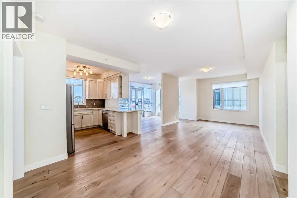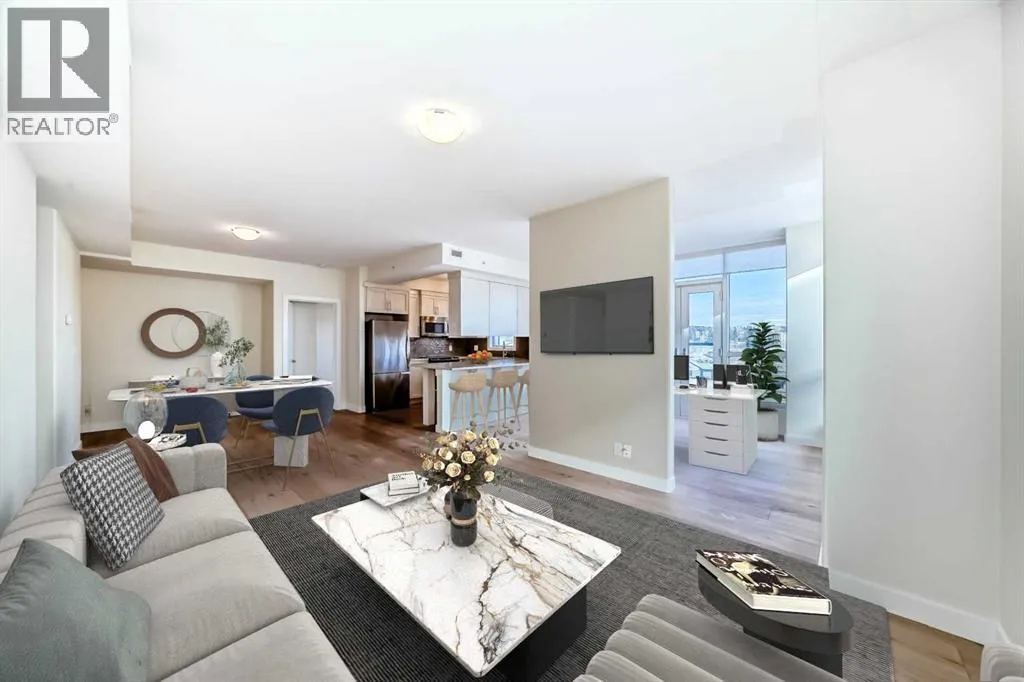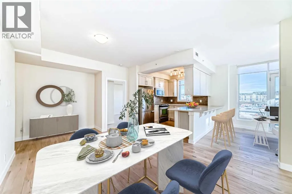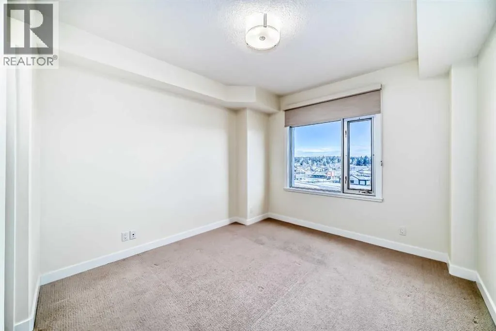 Experience elevated urban living in this gorgeous, light-filled corner residence. Located on the 8th floor of the prestigious Monterey One Tower, this 1,286 sq. ft. concrete-and-steel sanctuary offers a sophisticated blend of space and style. Upon entry, the well-appointed building lobby sets an upscale tone. Inside the suite, high ceilings and large windows bathe the open-concept layout in natural light. The versatile floor plan features a spacious living and dining area, complemented by a semi-enclosed, sunlit office/flex space - perfect for the remote professional. Bedrooms on either side of the suite ensure maximum privacy. The primary bedroom serves as a retreat, featuring a walkthrough closet leading to a 5-piece ensuite with quartz double vanities. Finished with engineered hardwood, light-toned paint, PLUS central air conditioning, every inch of this unit feels fresh and modern. The Groves was designed for a wellness-focused lifestyle, with a comprehensive fitness centre, steam rooms, a professional meeting room, and a wrap-around rooftop patio with panoramic views of the city skyline and the Rockies. Extra storage can be found in a separate assigned storage locker in the secure parkade. Love your Varsity lifestyle â just steps from the Dalhousie LRT and Dalhousie Station shopping, professional medical services, a pharmacy, and a delightful local coffee shop, plus convenient access to Market Mall, the U of C, and the Foothills Hospital. Make this special unit your new home in one of Calgaryâs greenest communities. (id:27476)