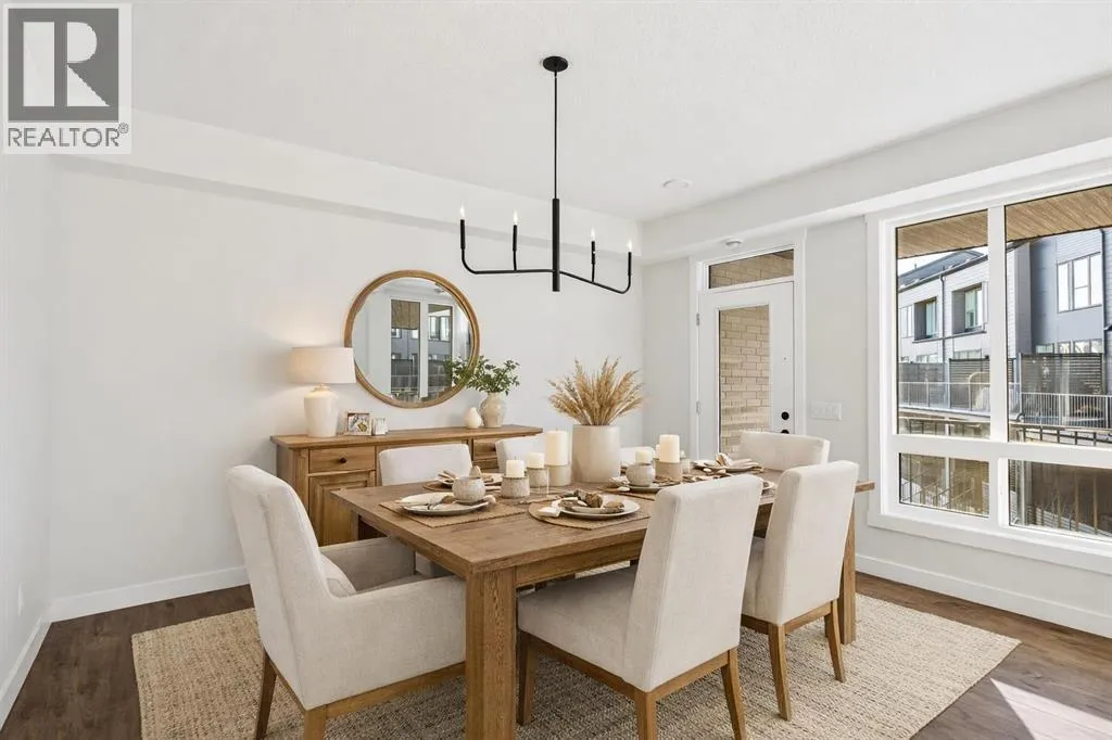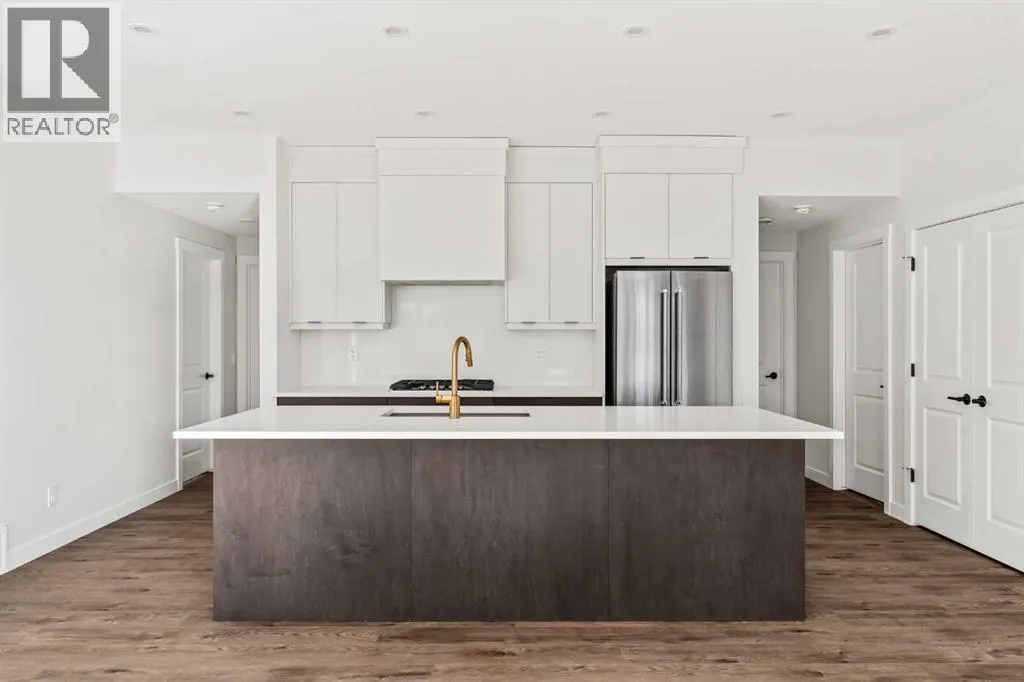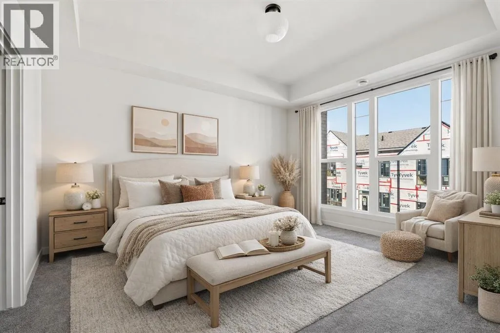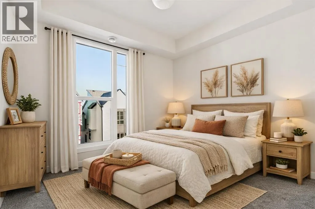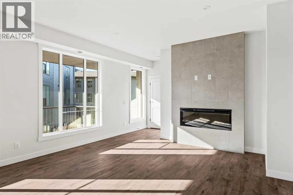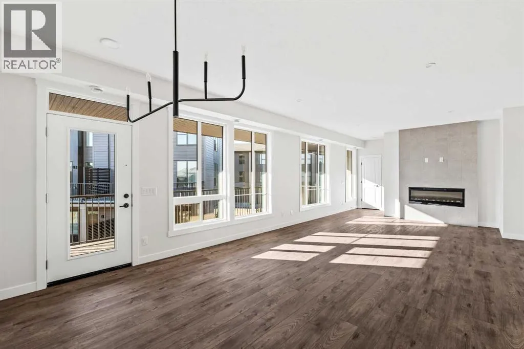 The Hyde at Crown Park offers true single-level living without compromise and represents one of the final opportunities to own a brand-new bungalow-style townhome in this highly sought-after community. Featuring 3 bedrooms, 2 bathrooms, and nearly 1,400 sq.ft. on one level, plus a private double attached garage and exceptional storage, this home is perfectly suited for those looking to downsize while keeping the space and functionality theyâre accustomed to. Ideally positioned in the heart of Crown Park, the residence features a southwest-facing balcony overlooking the central park and is located just minutes from downtown Calgary - combining maintenance-free living with an inner-city lifestyle. The main living space is beautifully designed for everyday comfort and effortless entertaining. A timeless white kitchen anchors the home, opening seamlessly to the living and dining areas while a full wall of southwest-facing windows fills the space with natural light. The kitchen showcases quartz countertops, a warm wood accent island, and a premium built-in appliance package including a gas cooktop and built-in oven. The expansive living room features a striking floor-to-ceiling tiled fireplace and comfortably accommodates gatherings with ample seating space for 6+ people, while the generous dining area easily hosts a table for eight - perfect for family dinners and entertaining. Privately positioned at one end of the home, the primary retreat is thoughtfully separated from the secondary bedrooms by the laundry area, enhancing privacy. The suite includes a large walk-in closet and a spa-inspired ensuite with dual vanities and a walk-in shower with 10mm glass surround. Two additional bedrooms offer flexible use as guest space, a home office, or media room and are served by a full bathroom. A spacious laundry room with additional cabinetry and folding counter adds everyday convenience. Outdoor living is equally impressive with an approximately 26â x 8â covered southwest-fac ing balcony overlooking the park and complete with a gas line, hose bib, and A/C rough-in - maximizing sunlight year-round both inside and out! The lower level provides access to the oversized private double attached garage along with two large storage areas, offering the extra space rarely found in bungalow-style living. Located within Calgaryâs newest inner-city community, this brand-new home delivers a true lock-and-leave lifestyle and includes full builder warranty plus Alberta New Home Warranty. Rarely do single-level townhomes with private double garages become available - this is your chance to secure a low-maintenance bungalow lifestyle without sacrificing space, location, or comfort. This brand new opportunity is one of the very last opportunities available at his exceptional master-planned inner-city development - don't wait! (id:27476)