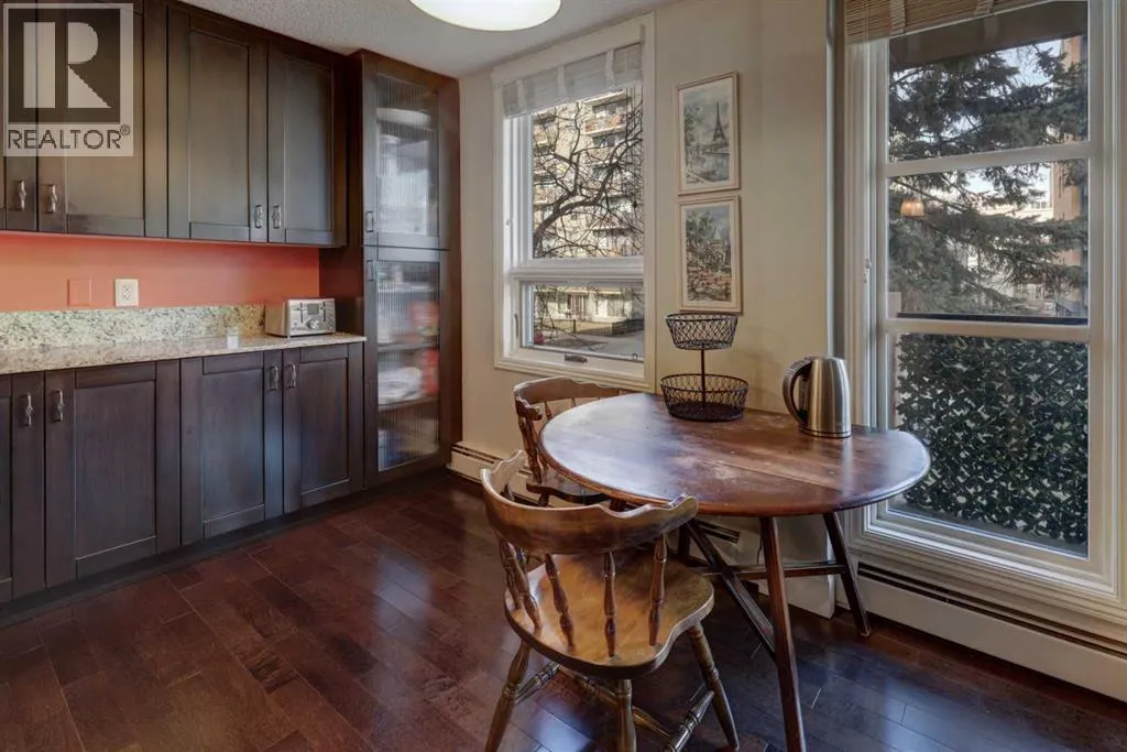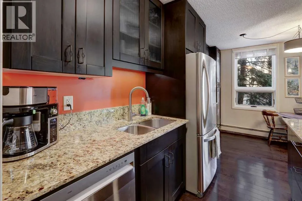 Attention First-Time Buyers & Urban Professionals!Welcome to Centro 733 â where comfort, convenience, and the vibrant Beltline lifestyle come together. You will be proud to call this HOME. This fantastic 2-bedroom condo is move-in ready and perfectly located just three blocks from the shops, restaurants, and energy of trendy 17th Avenue. With walkable amenities in every direction, youâll love calling this neighbourhood home.Inside, the thoughtfully designed layout features stylish finishes including granite countertops, rich maple cabinetry, stainless steel appliances, breakfast bar and beautiful hardwood floors. The open-concept living space is ideal for both relaxing and entertaining, with large windows that invite in natural light.Both bedrooms are generously sized and versatile, easily accommodating a variety of furniture layouts â including room for a desk or home office setup. Spend your evenings unwinding in the spacious living area or step out onto the covered balcony to BBQ and take in the peaceful green space views overlooking historic Lougheed House.Centro 733 is a well-maintained concrete building offering excellent amenities including a fitness centre, social room, storage locker, and secure indoor bicycle storage. Even better â condo fees include heat, water, sewer, and electricity, making budgeting simple and stress-free.An exceptional opportunity for first-time buyers, young professionals, or investors looking for a prime Beltline location.Contact your favourite agent to book your private showing today! (id:27476)