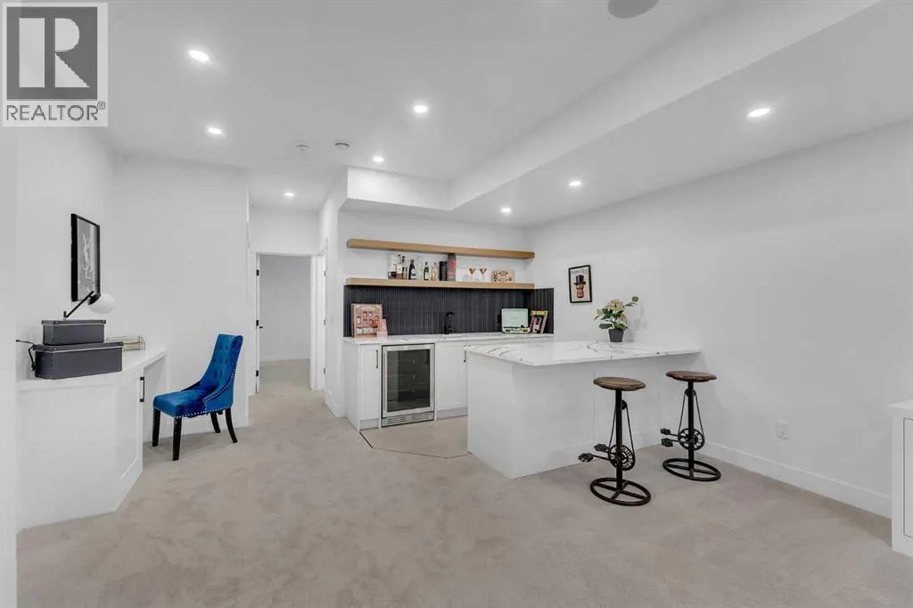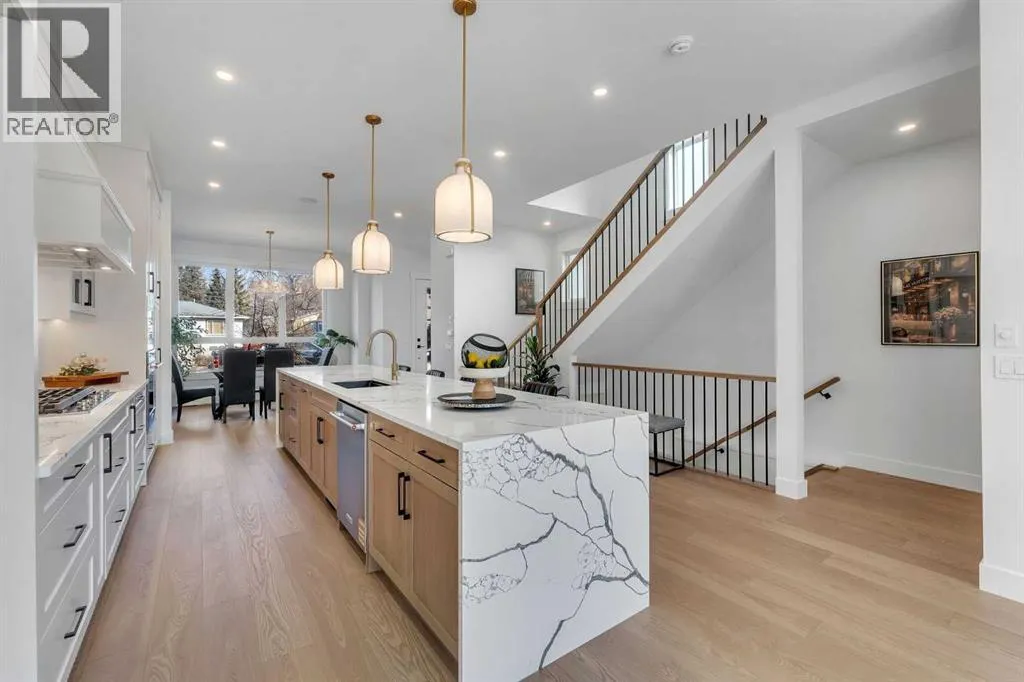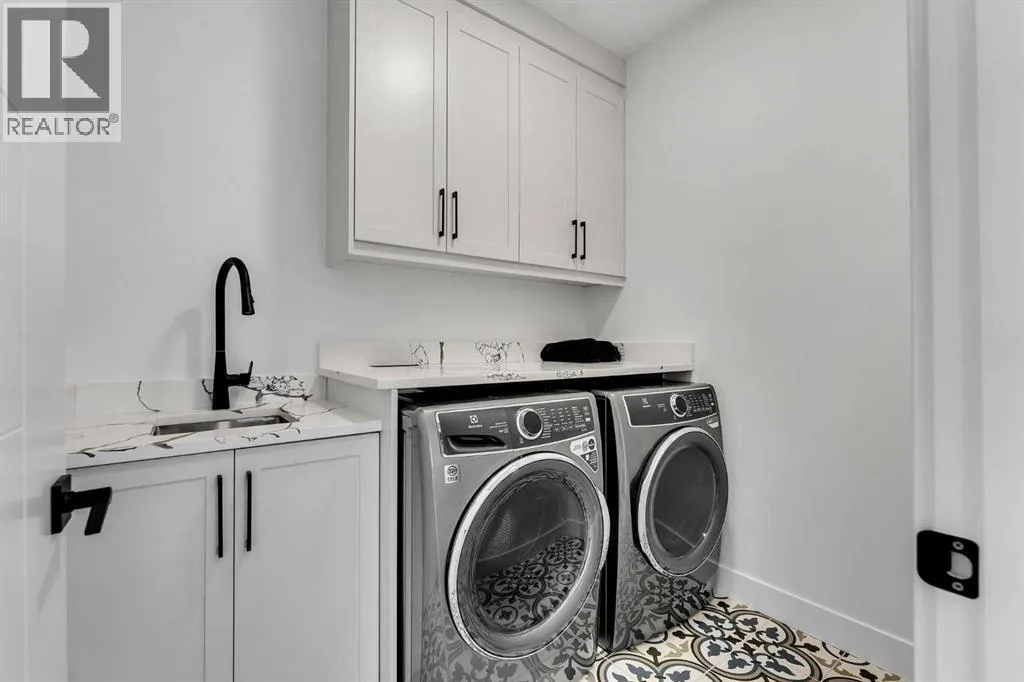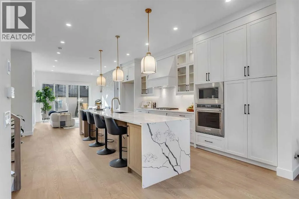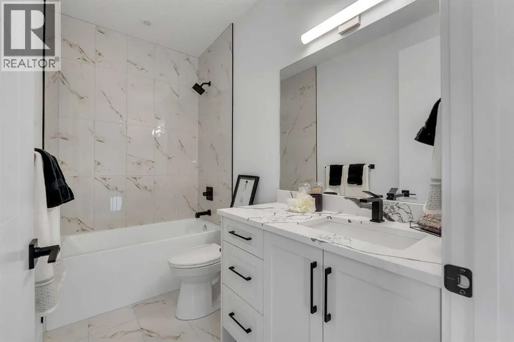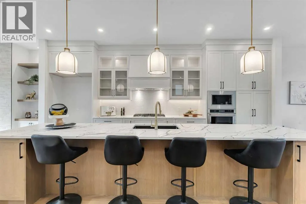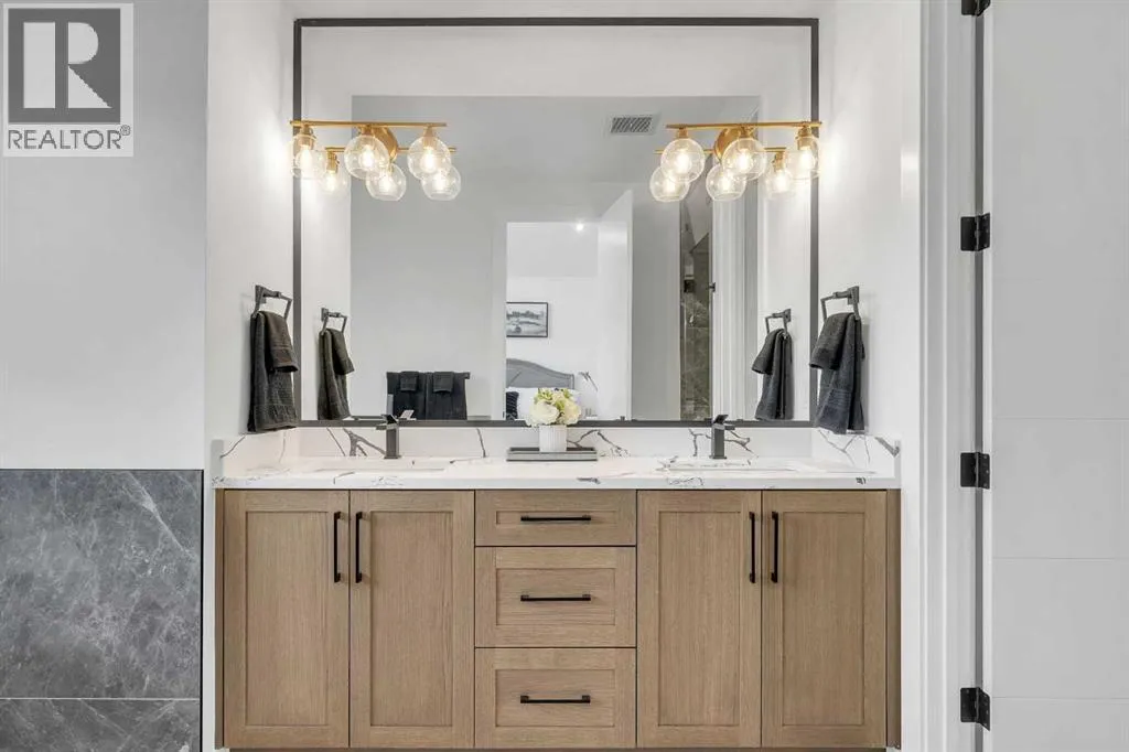 Welcome to this stunning brand-new home that offers refined modern living in a highly sought-after location. Featuring 3 spacious bedrooms and 2 full bathrooms upstairs with convenient upper-floor laundry, the luxurious primary suite impresses with vaulted ceilings and a spa-inspired ensuite complete with a soaker tub, separate glass shower, and heated floors for year-round comfort. The main level showcases soaring 10-foot ceilings and a bright open-concept design, centered around a beautifully appointed chefâs kitchen with built-in appliances, sleek quartz countertops, and a dramatic quartz waterfall island â perfect for entertaining. Elegant hardwood flooring, designer tile, plush carpeting, and a sophisticated oak railing along the staircase add warmth and architectural detail throughout, while large patio doors flood the space with natural light. The fully finished basement provides exceptional additional living space with a bedroom, full bathroom, wet bar, and spacious recreation room â ideal for guests or extended family. Located just minutes from the University, Foothills Hospital, Alberta Childrenâs Hospital, Market Mall, downtown, Bow River pathways, and all essential amenities, this home combines luxury, convenience, and lifestyle. Complete with a double detached garage and situated in a desirable neighborhood, this is an exceptional opportunity â book your private showing today. Both sides are available (id:27476)
