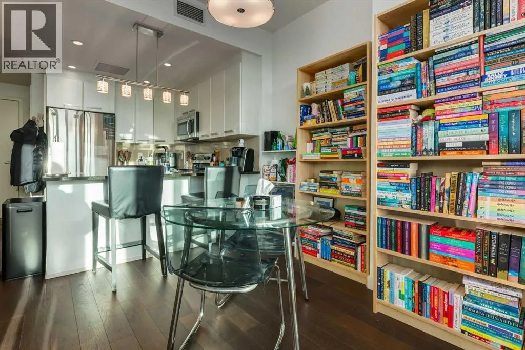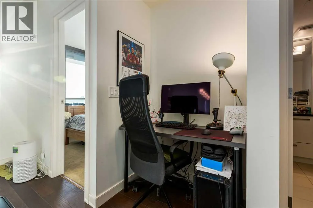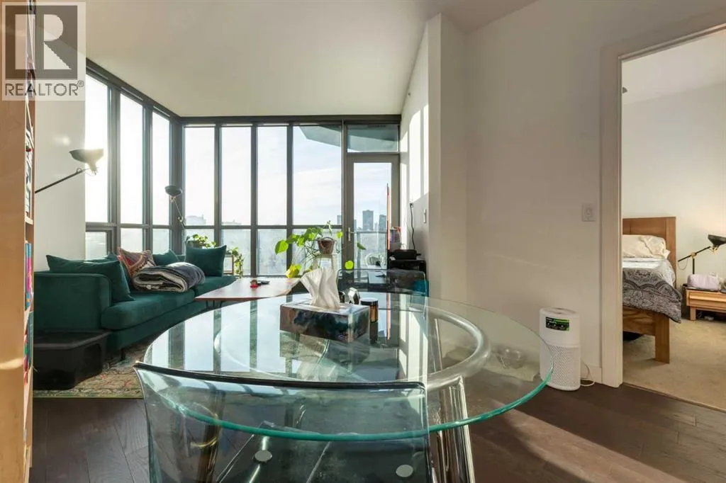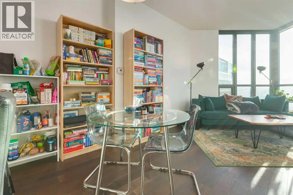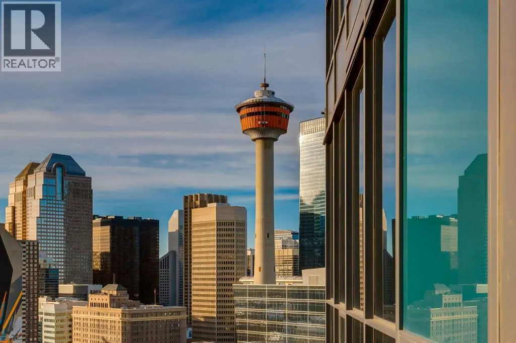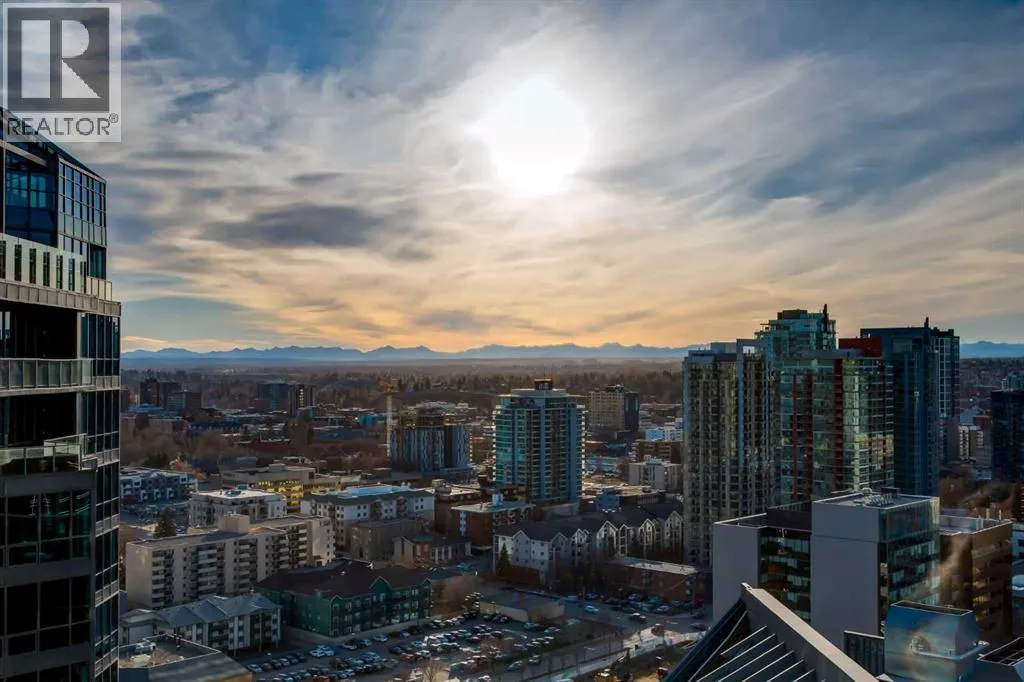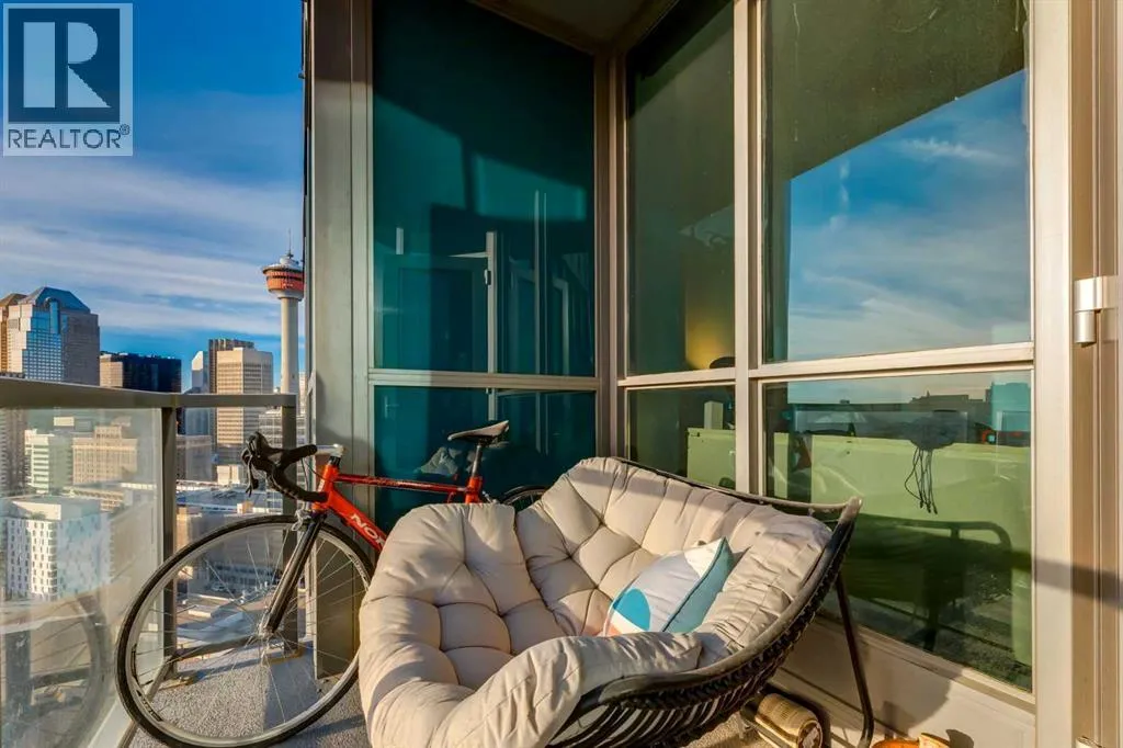 Enjoy unobstructed, panoramic views from this one bedroom, one bathroom residence perched on the 25th floor of Keynote Two. This bright, air conditioned home features 9 foot ceilings, hardwood flooring, stone countertops, stainless steel appliances, and convenient in suite laundry. Floor to ceiling windows frame spectacular views of the Saddledome, downtown skyline, and the Rocky Mountains beyond.The unit includes a storage locker, bike storage, and one of the largest and most desirable parking stalls in the entire parkade, a rare and valuable offering in the building. Residents enjoy direct +15 access to Sunterra, a well equipped fitness centre, owners lounge, and guest suites, all within a professionally managed concrete tower in the heart of the Beltline.An exceptional opportunity offering views, amenities, and parking that truly set it apart. (id:27476)