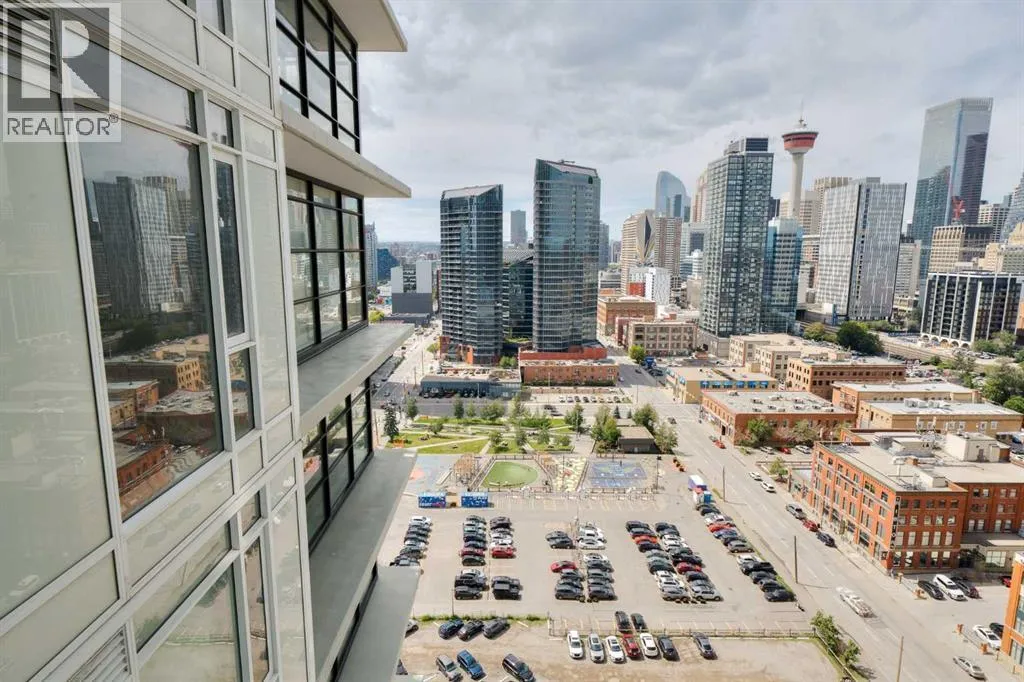 Experience elevated urban living in The Guardian South Tower. Perched on the 19th floor, this stunning single-level condo captures sweeping views of downtown Calgary and the Bow River through expansive FLOOR-TO-CEILING WINDOWS and from your BALCONY.This bright and modern one-bedroom, one-bathroom home is thoughtfully designed with sleek flooring and an abundance of natural light throughout. The contemporary kitchen features integrated cabinetry that seamlessly conceals the refrigerator and dishwasher, an INDUCTION COOKTOP, and a BUILT-IN MICROWAVE. The OPEN-CONCEPT layout flows effortlessly into the living areaâideal for both relaxing evenings and entertaining guests.The spacious bedroom is filled with natural light and showcases incredible views, along with a BUILT-IN CLOSET SYSTEM complete with drawers, eliminating the need for additional furniture. A well-appointed four-piece bathroom is conveniently located just across the hall. In-suite laundry with a stacked washer and dryer adds everyday ease.Residents enjoy 24-hour front door security, secure floor access, a titled underground parking stall, and a separate assigned storage unit. The Guardian offers exceptional amenities, including a FULLY EQUIPPED FITNESS CENTRE with SHOWERS, a ROOFTOP TERRACE with BBQs, a stylish RESIDENTSâ LOUNGE with kitchen, a GAMES AREA, and flexible spaces for relaxing or working. Thereâs even a dedicated WORKSHOP for CRAFTS or woodworking projects.Located in the heart of Calgaryâs vibrant Beltline, youâre just steps from the Stampede grounds, LRT stations, and an array of downtown shopping, dining, and entertainment. This is an outstanding opportunity to own a sophisticated condo in a secure, amenity-rich building in one of the cityâs most dynamic neighbourhoods. (id:27476)