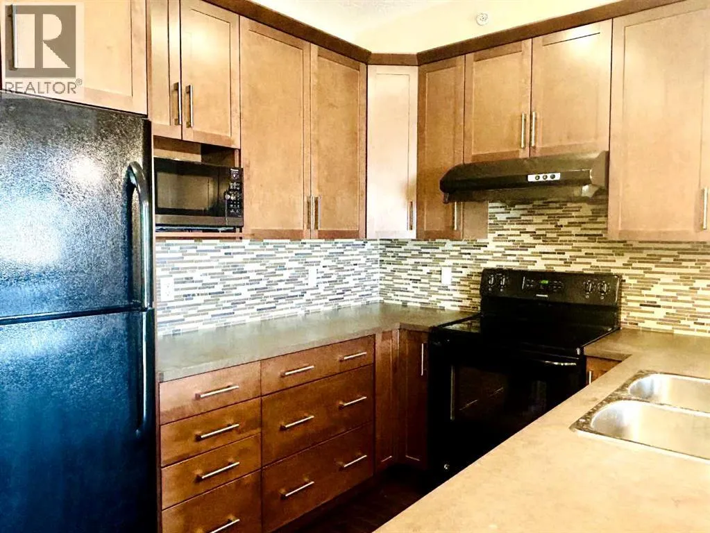 This well-maintained top-floor unit showcases true pride of ownership and features 9-foot ceilings and a highly functional layout. This spacious 2-bedroom, 2-bathroom condo offers numerous upgrades, including air conditioning, gleaming maple hardwood flooring, and extended maple kitchen cabinetry. The open-concept kitchen is enhanced with a newer backsplash, ample counter space, and a convenient eating bar.The main living area features beautiful maple hardwood floors in immaculate condition and a bright, generously sized living room with direct access to a private balcony offering open views. The primary bedroom includes a good-sized layout with a 3-piece ensuite, while the second bedroom is complemented by a full 4-piece main bathroom. The unit also features in-suite laundry for added convenience.This condo comes with an assigned underground heated parking stall and additional storage space. Ideally located in the heart of Panorama Hills, you are within walking distance to schools, Save-On-Foods, banks, parks, and pond areas, with easy access to public transit, Stoney Trail, and Deerfoot Trail. A rare opportunity to own a top-floor unit in a highly desirable community! (id:27476)