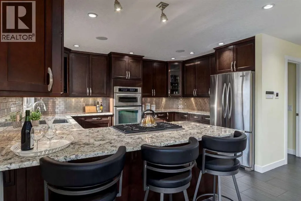 Welcome to the serene community of Glenbrook, where an ideal location in the very desirable âWest Sideâ of Calgary, a small town feel with amazing walkability to all amenities, and numerous parks, playgrounds and schools combine to create a perfect area for all stages of life. This charming character home is situated on a large lot adorned with beautiful, mature trees and has been fully renovated to offer new home living in a well-established community. As you enter this welcoming home, you are greeted with a modern, open floor plan and lots of natural light. The spacious âchefâs kitchenâ features stainless steel appliances, numerous full-height, solid wood cabinets and granite countertops and is open to the cozy living room and optional dining area. The main-floor primary suite boasts âhis and hersâ closets and a spa-like ensuite with a steam shower. The fully developed lower level offers two additional bedrooms, a full bathroom with an air jetted soaker tub and a fantastic media room with theatre seating. Outside, a large front porch with built-in chair rail, a concrete paver rear patio with room for lounging and dining, custom planters and storage benches, pressure-treated wood fences and gates, and an artificial turf lawn provide numerous options for outdoor enjoyment with minimal upkeep. The âcrown jewelâ of this home is the newly built, heated, oversized double detached garage, which boasts epoxy flooring, ten-foot ceilings and attic storage trusses. Heated floors throughout, a new roof, Smart Home features, central air conditioning, all new electrical, new stucco and underground sprinklers are just a few of the fantastic upgrades found throughout this property. (id:27476)