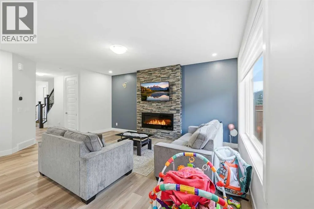 Double attached garage and priced to sell! Welcome to your new home in the vibrant and sought-after community of Carrington! This exquisite two-storey residence showcases over $50,000 in premium upgrades from Mattamy Homes. The expansive living room is perfect for gatherings, while large windows fill the open-concept main floor with natural light. The heart of the home is the gourmet kitchen, featuring full-height cabinets, quartz countertops, a custom railing, and a massive walk-in pantry. Upstairs, youâll find three bedrooms, each designed with comfort in mind. The primary suite is a serene retreat, complete with a luxurious 5pc ensuite featuring a custom tile shower and a dedicated walk-in closet. The central Family Room offers versatile space for a home office, playroom, or media center. This property boasts premium features, including walk-in closets in every bedroom. The main floor includes a dedicated mudroom located directly off the double attached garage. A separate side entrance leads to a spacious unfinished basement, which is already primed for your future development with rough-ins for a washroom, kitchen, and separate laundry. Located with easy access to Stoney Trail and local amenities, this home offers the perfect blend of luxury and utility. Call today to schedule your private viewing! (id:27476)