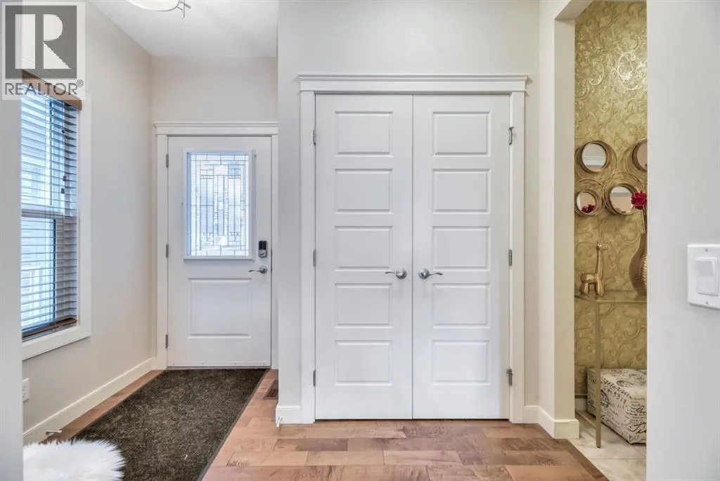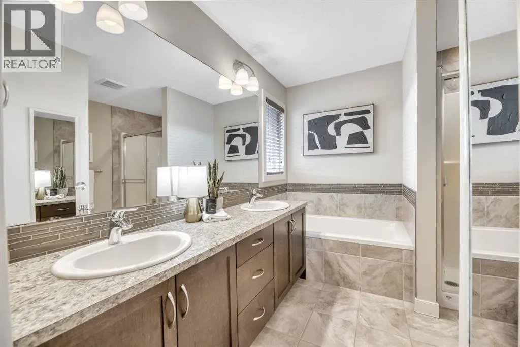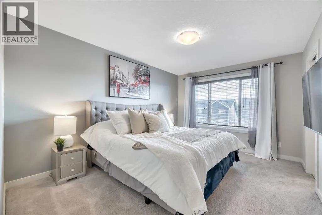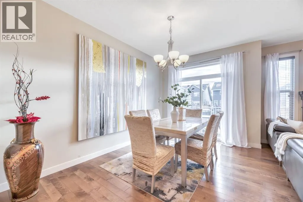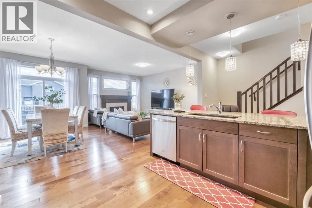 Welcome to this beautifully maintained front double attached garage semi-detached home in Redstone NE, offering space, functionality, and a family-friendly location just steps from park and green space.Rich hardwood flooring flows throughout the main level, where the heart of the home is the spacious kitchen. Designed for both everyday living and entertaining, it features granite countertops, a large breakfast bar island, stainless steel appliances, and a convenient walk-through pantry that connects directly to the mudroom and garage entrance. Sliding patio doors lead to the deck, creating a seamless indoor-outdoor experience, while the cozy gas fireplace anchors the open-concept living and dining areas.Upstairs, youâll appreciate the vaulted central bonus room â an ideal space for movie nights, a play area, or home office. The upper laundry room adds everyday convenience. At the front of the home are two generously sized bedrooms, a full 4-piece bath, and practical linen storage. Privately positioned at the back, the spacious primary retreat offers a sizeable walk-in closet and a lovely 5-piece ensuite.Neutral tones throughout provide a timeless backdrop for any décor style, and the unfinished basement offers endless potential for future development.With alley access and park and greenspace nearly in your backyard, this home blends comfort, convenience, and community living in one of NE Calgaryâs growing neighbourhoods. (id:27476)