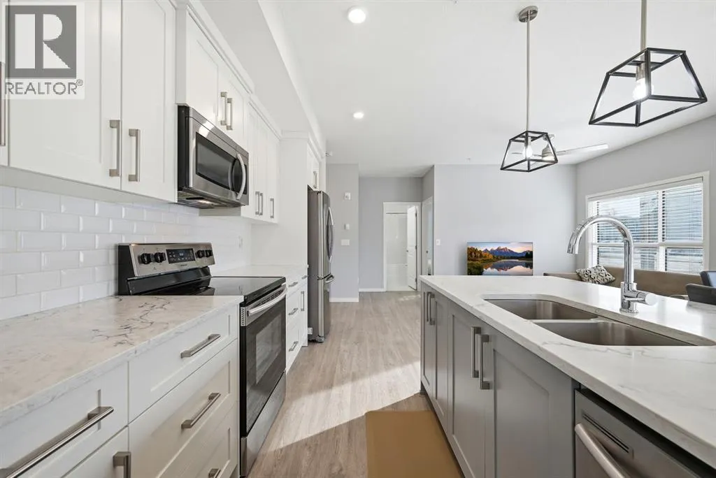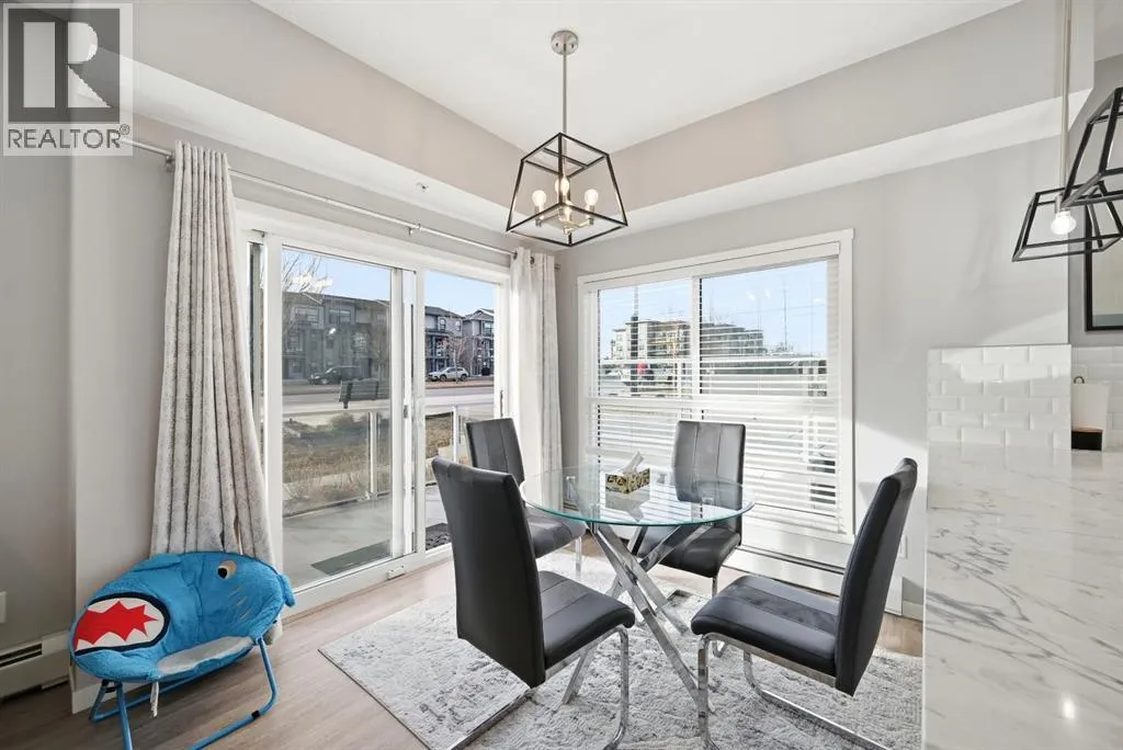 Welcome to this bright and beautifully maintained GROUND floor CORNER unit in the thriving community of Seton; one of Calgaryâs fastest growing neighbourhoods. This spacious 2 bedroom, 2 bathroom condo offers a functional open-concept layout designed for modern living.Featuring 9â ceilings, large windows that flood the space with natural light, and a stylish white kitchen complete with quartz countertops, extended breakfast bar and stainless steel appliances, this home checks every box. The well defined dining area and generous living space provide the perfect setting for entertaining or relaxing at the end of the day. Enjoy the convenience of in-suite laundry with a full-size washer and dryer.The oversized primary bedroom boasts a walk-in closet and a private 4-piece ensuite. Step outside to your expansive wraparound balcony with desirable south and west exposureâideal for soaking up the sun. Additional highlights include a titled heated underground parking stall, bike storage, and extra storage space. The building backs onto green space and a future regional park, offering added privacy and beautiful surroundings.Unbeatable location! Just steps away from the worldâs largest YMCA, Calgary Public Library, VIP Cinema, and South Health Campus. Walking distance to transit, schools, parks, pathways, playgrounds, dog parks, and more.Enjoy easy access to Fish Creek Provincial Park, as well as quick connections to Stoney Trail and Deerfoot Trail. Seton offers an abundance of shopping, dining, grocery stores, coffee shops, childcare, medical and dental servicesâall at your doorstep.Donât miss this opportunity to own in one of South Calgaryâs most desirable communities. Book your private showing todayâthis is the perfect place to call home! (id:27476)