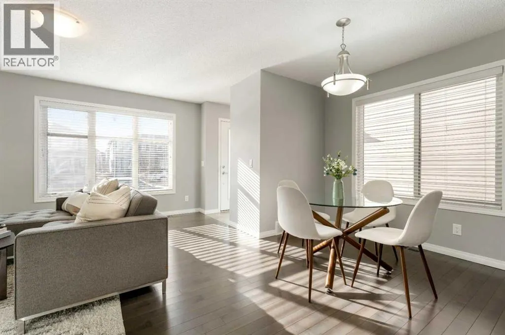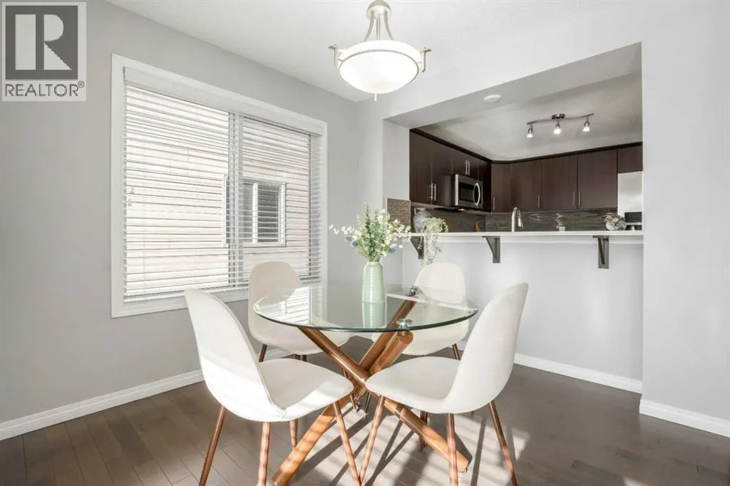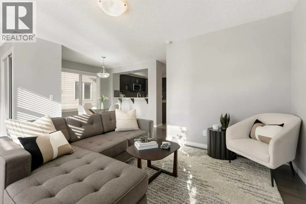 This beautifully appointed end-unit townhome offers 2 bedrooms, 2.5 bathrooms, and a double attached garage with paved rear lane access â all with no condo fees. An excellent opportunity for first-time home buyers or investors, this property combines comfort, functionality, and long-term value. The bright, open main level features hardwood and tile flooring throughout, expansive windows that fill the space with natural light, and a well-designed kitchen complete with quartz countertops and stainless steel appliances. Upstairs, a spacious bonus room provides flexible living space, complemented by two generous bedrooms. The large rear balcony extends your living outdoors, while the unfinished basement offers future development potential to suit your needs. The furnace and ducts have been recently maintained for added peace of mind. Located near parks and walking paths, with convenient access to major highways and the airport, this home offers a practical layout in a well-connected setting. (id:27476)