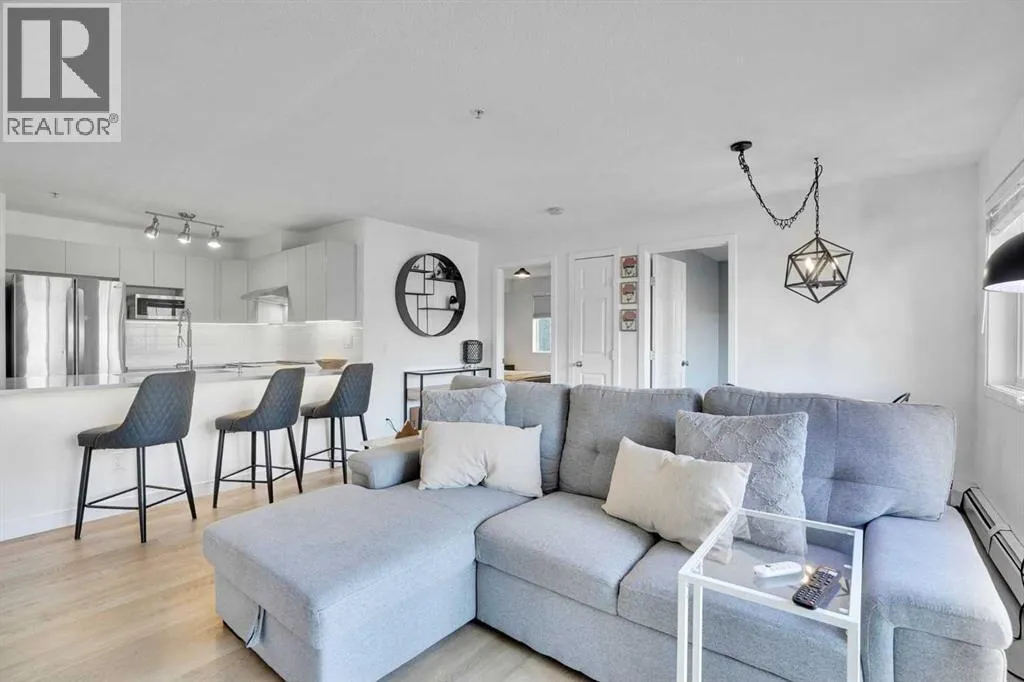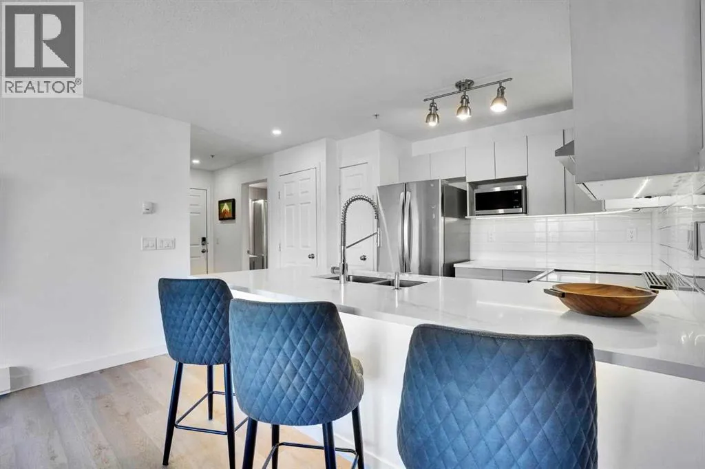 Tucked away at the quiet end of 11 Avenue SW, this beautifully updated low-rise condo offers the perfect balance of urban convenience and peaceful living. Corner unit, featuring elevator access, secure underground parking, in a well-maintained building provides comfort and easy living.Inside, youâll find an airy, open-concept floor plan with two spacious bedrooms and two full bathrooms, well designed for both daily life and entertaining. Bright principal rooms flow seamlessly between the kitchen, dining, and living areas, creating a welcoming and functional space. In-suite laundry adds to the convenience. Plus there is a large covered deck with a gas line.The modern kitchen offers a full LG appliance package, abundant cabinetry, a pantry, and a large quartz working island ideal for meal prep or gathering with friends. Engineered, wide-plank flooring throughout, upgraded lighting, and refreshed kitchen cabinetry elevate the homeâs contemporary appeal. Condo fees include ALL utilities, offering exceptional value and simplified budgeting. Pets are welcome with condo approval.Enjoy an convenient location, just steps from downtown, playgrounds, restaurants, pubs, and cafés, and only a 3-minute walk to the Sunalta LRT station for effortless commuting. (id:27476)