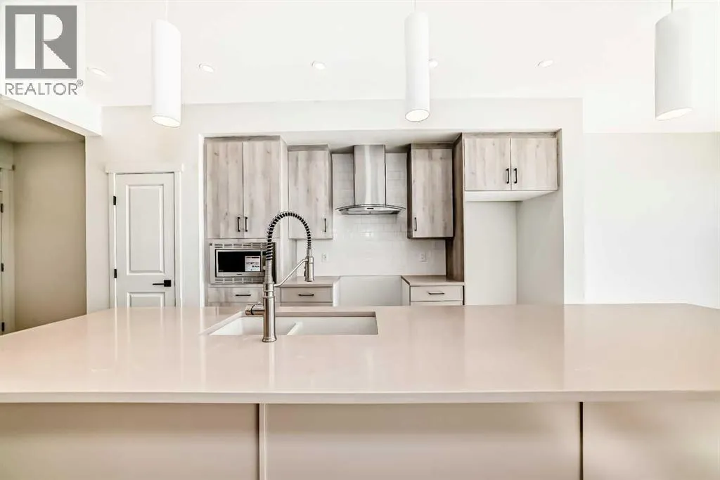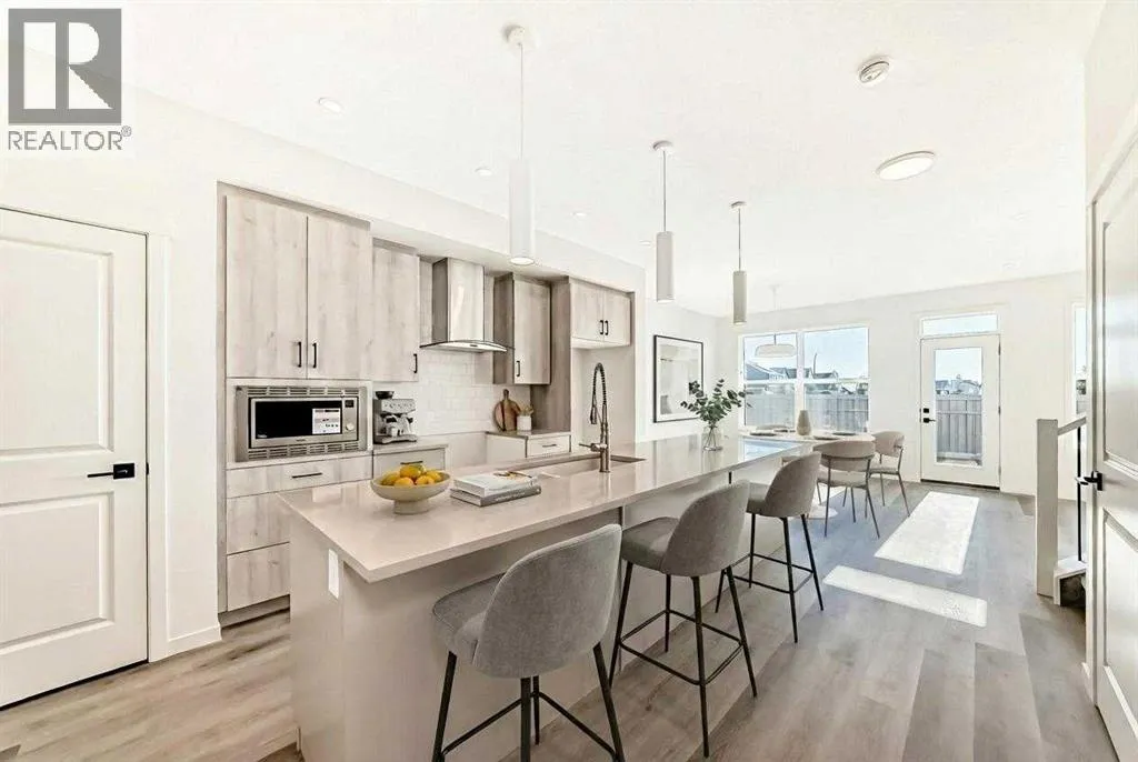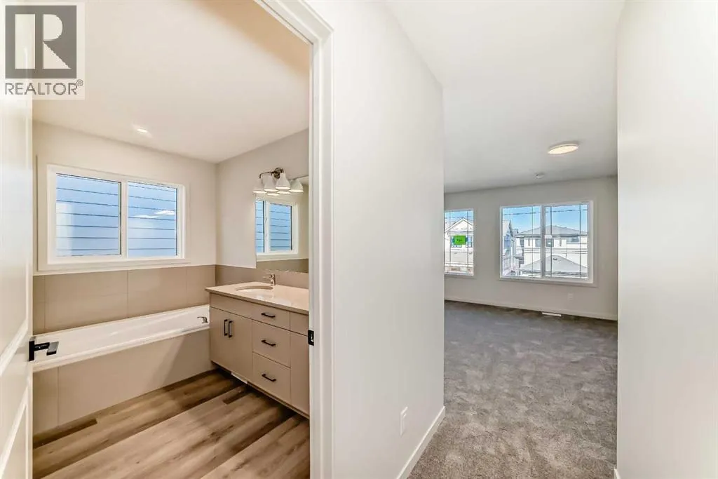 Introducing the exquisite âTilsaâ by Hopewell Residential in Calgaryâs award-winning lake community of Mahogany, where thoughtful design, modern finishes, and four-season lifestyle all come together. From the moment you arrive, this home feels inviting and functional, with an expansive floor plan thatâs made for busy families, casual get-togethers, and everything in between. Step inside and youâre greeted by a versatile main-floor flex room that can easily adapt as your life doesâhome office, kidsâ homework zone, playroom, or hobby space. Just beyond, the open-concept living and dining area creates a seamless flow thatâs perfect for entertaining. Large windows draw in natural light and frame your main floor in a warm, comfortable glow, whether youâre hosting friends for dinner or enjoying a quiet night in. At the heart of the home sits a chef-inspired kitchen thatâs as beautiful as it is functional. The spacious central island offers plenty of seating for casual breakfasts or after-school snacks, while the gorgeous quartz countertops, wood grain cabinetry raised to the bulkhead, extra drawers for organized storage, and classic subway tile backsplash elevate the space with timeless style. A sleek chimney hood fan and stainless steel appliances complete the picture, giving you a kitchen thatâs ready for everything from weeknight meals to holiday hosting. Upstairs, the layout is designed with family living in mind. A perfectly placed central bonus room separates the primary suite from the additional bedrooms, adding privacy and creating an ideal spot for movie marathons, game nights, or watching the big game. The primary bedroom is a true retreatâspacious, serene, and tucked awayâfeaturing a luxurious 5-piece ensuite with dual sinks, a soaker tub, separate shower, and a large walk-in closet to keep everything neatly organized. The additional bedrooms are bright and comfortable, ideal for kids, guests, or a second home office. The upper-floor laundry is just steps away from all bedrooms, making day-to-day living that much easier. Outside, this home is set up for sun-filled outdoor living. With sunny south exposure, youâll enjoy warm, bright days on your future deck or patio, perfect for summer BBQs, backyard hangouts, or just unwinding after a day at the lake. The 9' foundation and secondary side entrance open the door to future basement development, making this home ready for a potential secondary suite or extended family space down the road (a secondary suite would be subject to approval and permitting by the city/municipality). A double attached garage provides plenty of room for vehicles, storage, and all your lake toys. Living in Mahogany means youâre not just buying a homeâyouâre stepping into a lifestyle. This is one of Calgaryâs most sought-after communities, centred around a 63-acre freshwater lake with two private beaches, perfect for swimming, paddleboarding, and lakeside picnics in the summer, plus skating and winter fun when the seasons change. (id:27476)