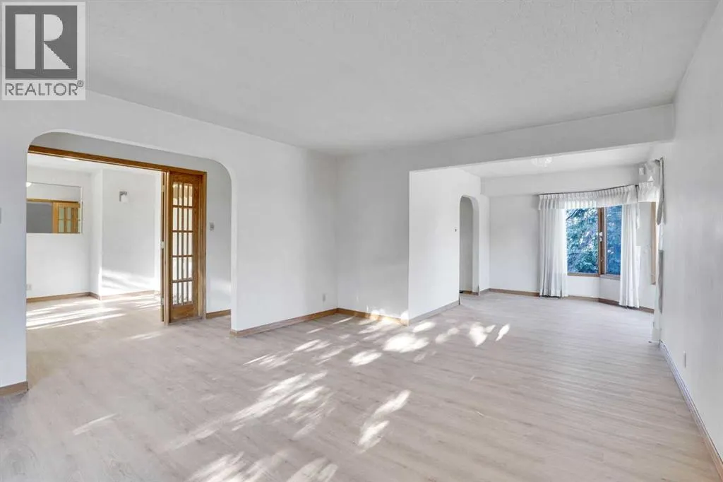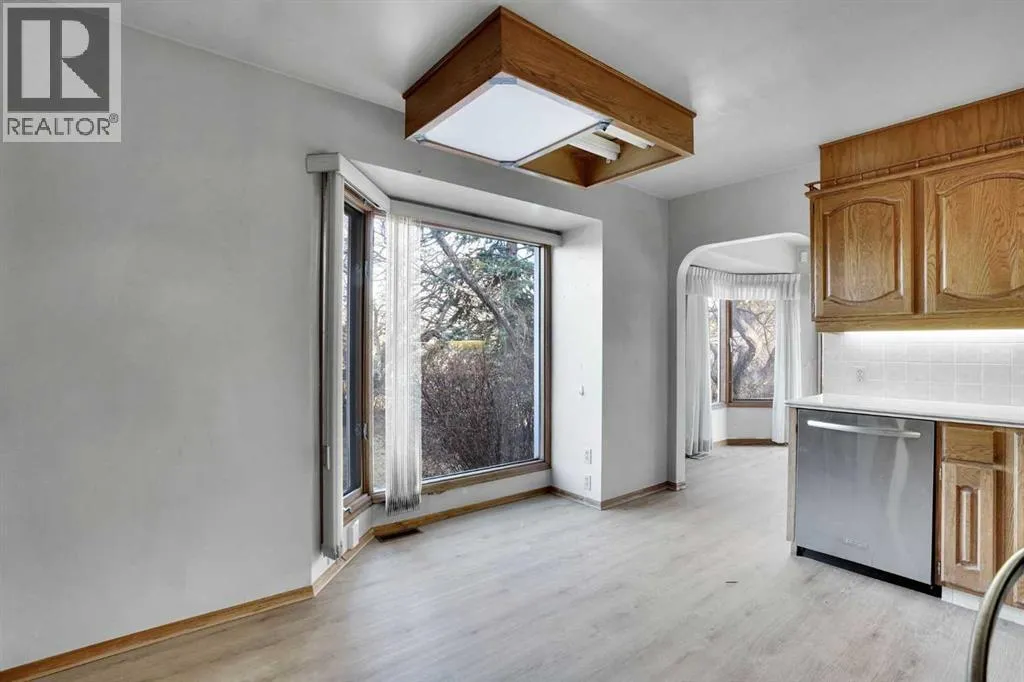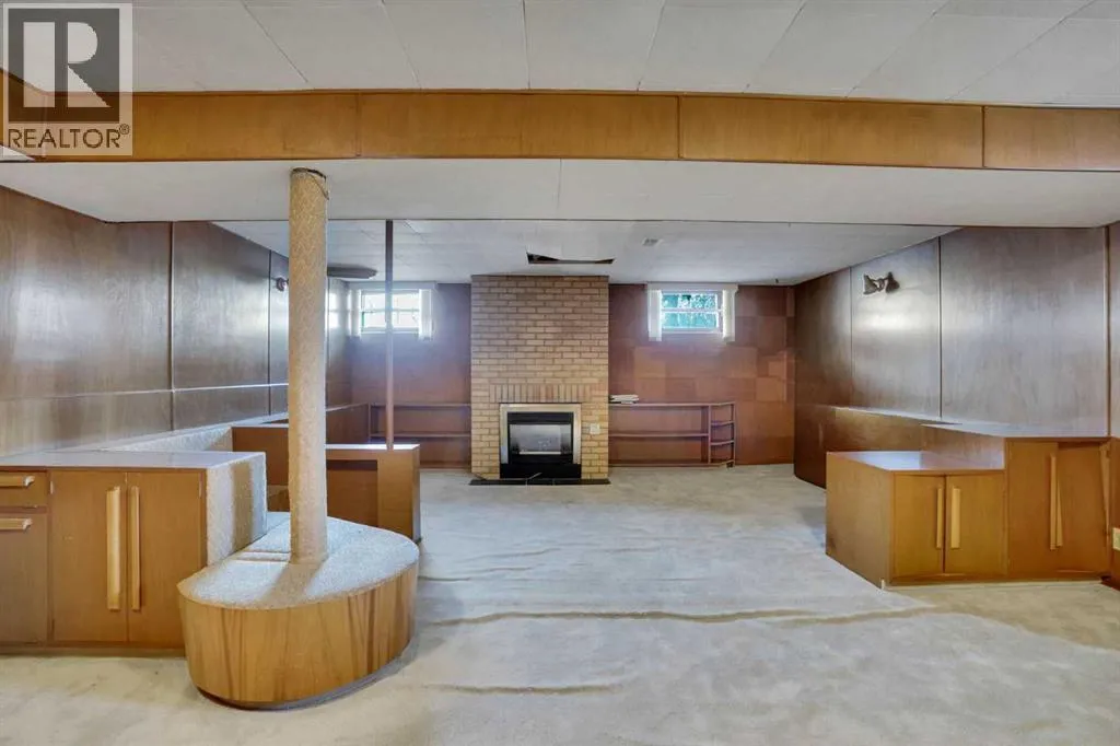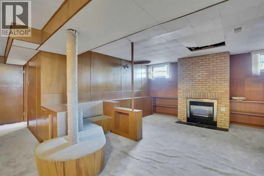 Nestled in the well-established community of Glendale and set on a generous 7,179 sq ft CORNER LOT, this beautifully maintained 1950's 3-bedroom bungalow offers incredible potential to become your ideal family home. BRAND NEW FLOORING AND FRESHLY PAINTED HOME. The main floor features spacious living and dining areas, a bright kitchen with stainless steel appliances, two comfortable bedrooms, and a charming 3-piece bathroom with classic 1950s retro tile. The fully developed basement includes a large family room with a fireplace, a versatile den/flex room, a 4-piece bathroom, and a dedicated laundry area. Outside, you'll love the mature trees in the front yard and the expansive backyard with a patio, perfect for outdoor gatherings, plus a DOUBLE DETACHED GARAGE for added convenience. Ideally located near parks, schools, shopping, public transit, and offering easy access to both 17th Avenue and Sarcee Trail. (id:27476)