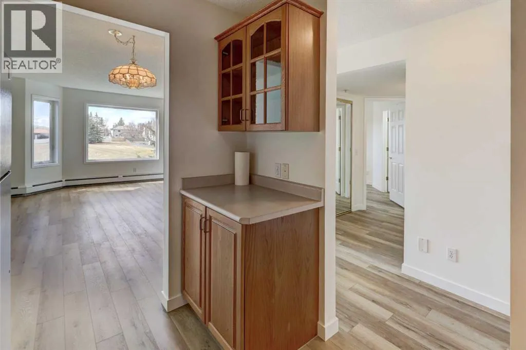 An adult-living condo which offers a vibrant, maintenance free lifestyle. Welcome to this bright, open-concept floor plan in a desirable, quiet location overlooking a park. Filled with natural light and sunshine from the west. The spacious layout includes a large primary bedroom complete with own 2 pc ensuite, along with additional 4 pc bathroom, large laundry room, functional kitchen, large dining and living room with access to a nice size SW facing balcony with gas line for bbq. Additional highlights include new vinyl flooring, baseboards, and fresh paint throughout, secured underground titled parking stall and assigned storage room. This community is truly lifestyle-focused with clubhouse, a billiards room, shuffleboard, recreation room with fully equipped kitchen, perfect for group dining and events, woodworking shop, library and more. Guests coming to town? There are 3 guest suites available, walking paths, a pond with water fountain and beautiful landscaping. whether you are social or love quiet time surrounded by nature, there is something for everyone. A home with all the amenities and close to shopping and dining. A wonderful place to call home!!! (id:27476)