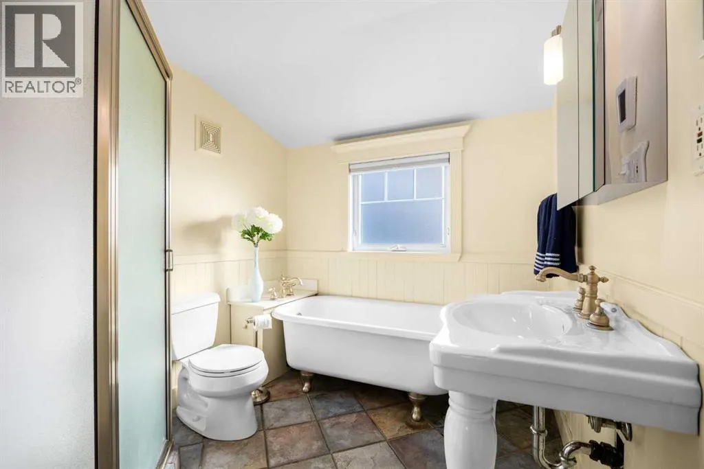 Nestled on a quiet, tree-lined street, this beautifully preserved 1912 detached character home offers a rare opportunity to own a piece of Calgaryâs history. Located in the heart of Inglewood and just steps from the Bow Riverâs scenic pathways, Pearce Estate Park, and Nellie Breen Park, this home perfectly balances vibrant city living with peaceful natural surroundings.Inside, timeless character and thoughtful updates come together beautifully. Dark oak floors, vintage glass door knobs, original furnace registers, and large updated windows fill the home with warmth and natural light, while the living room is anchored by a cozy gas fireplace that invites you to relax and unwind. The renovated kitchen is both stylish and functional, featuring granite countertops, refaced cabinetry, stainless steel appliances, a modern backsplash, and an oversized island that naturally becomes the heart of daily living and entertaining. A versatile main-floor bedroom overlooks the west-facing backyard and is ideal as a home office, guest room, or flex space, complemented by a dining area, convenient 3-piece bathroom with heated floors, and main-floor laundry. Upstairs, two spacious bedrooms and a beautifully appointed 4-piece bathroom with a timeless clawfoot tub and heated floors, offer a peaceful and private retreat.The lower level offers incredible flexibility to suit your lifestyle, featuring a room with a heated floor, perfect for yoga, stretching, or exercise. The main room includes a laundry sink, making it an ideal space for creative pursuits such as painting, ceramics, or other hands-on hobbies. An unfinished room with a window offers endless potential and could easily be transformed into a 4th bedroom, media room, games room, or workshop. Abundant storage throughout ensures thereâs a place for everything, from seasonal decor to everyday essentials.Outside, the private west-facing backyard provides the perfect setting to enjoy afternoon sun and quiet evenings, complete w ith a unique custom âcatioâ for pet lovers.Extensive updates completed between 2002 and 2025, including windows, roof, furnace, hot water tank, air conditioning, appliances, paint, and kitchen improvements, allow you to enjoy the beauty of a character home with modern peace of mind. There is ample street parking right outside the home and across the street. The neighbours are very respectful of one another and they all have their "designated" spots.This is a rare opportunity to own a home with character and modern updates, warmth, and character, all within one of Calgaryâs most beloved and walkable communities. (id:27476)