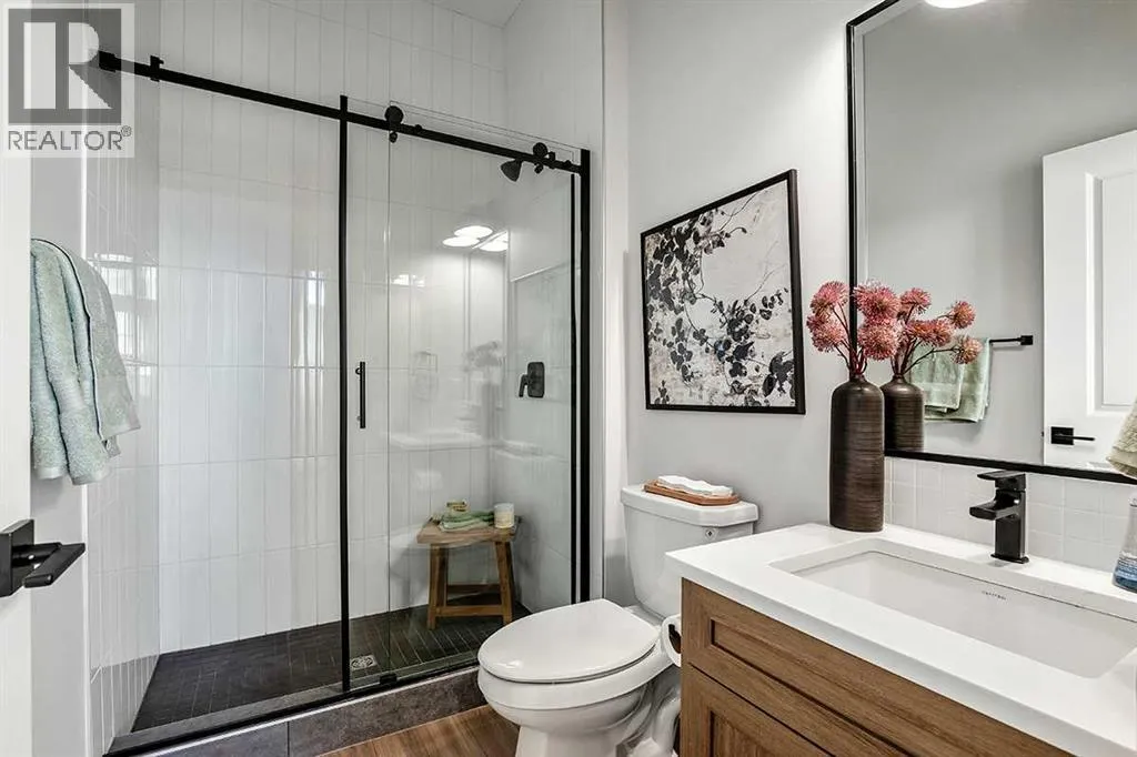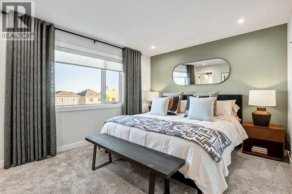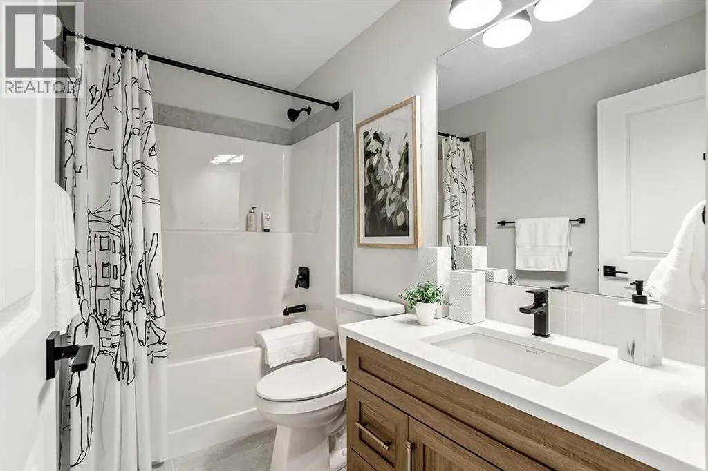 This 1,700 sq ft townhome in Vermilion Hill offers a balanced combination of space, function, and location. Designed with modern finishes and a double detached garage, the home features an open-concept main floor with high ceilings and large windows for natural light. The entryway includes built-in storage and connects to a kitchen equipped with stainless steel appliances, quartz countertops, and a central island. The upper level includes a primary bedroom with a walk-in closet and ensuite, two additional bedrooms, and a loft providing flexible living options. The property is situated approximately 20 minutes from downtown Calgary and within minutes of major amenities such as Costco. Mountain and downtown views contribute to the appeal of the area, which is known for its accessibility and new community design. Renderings and photos are representative. (id:27476)