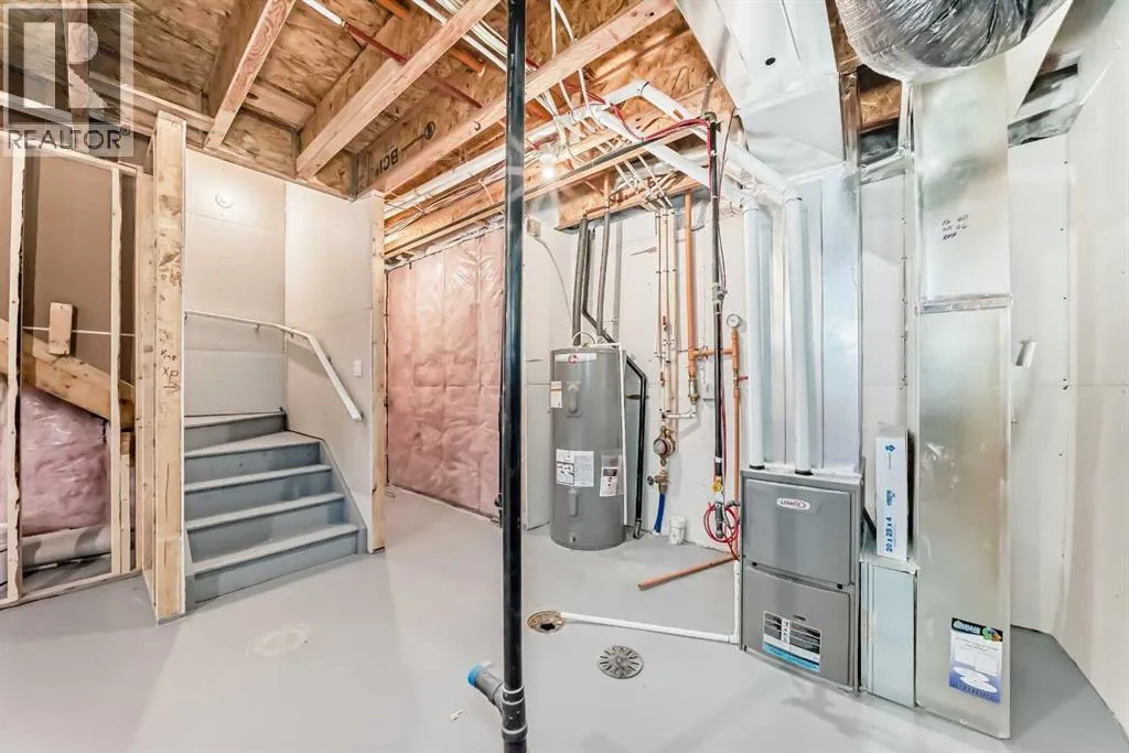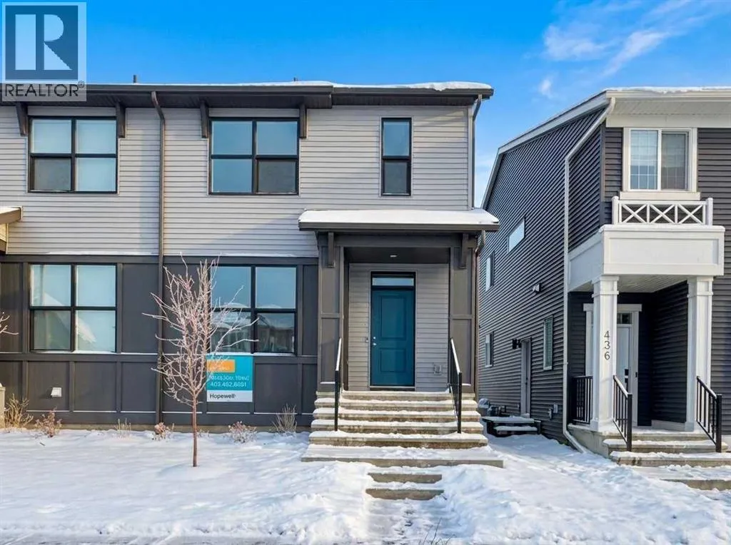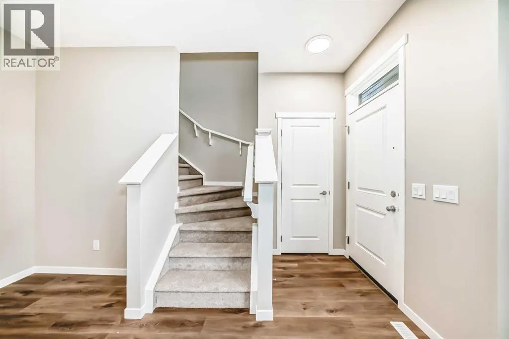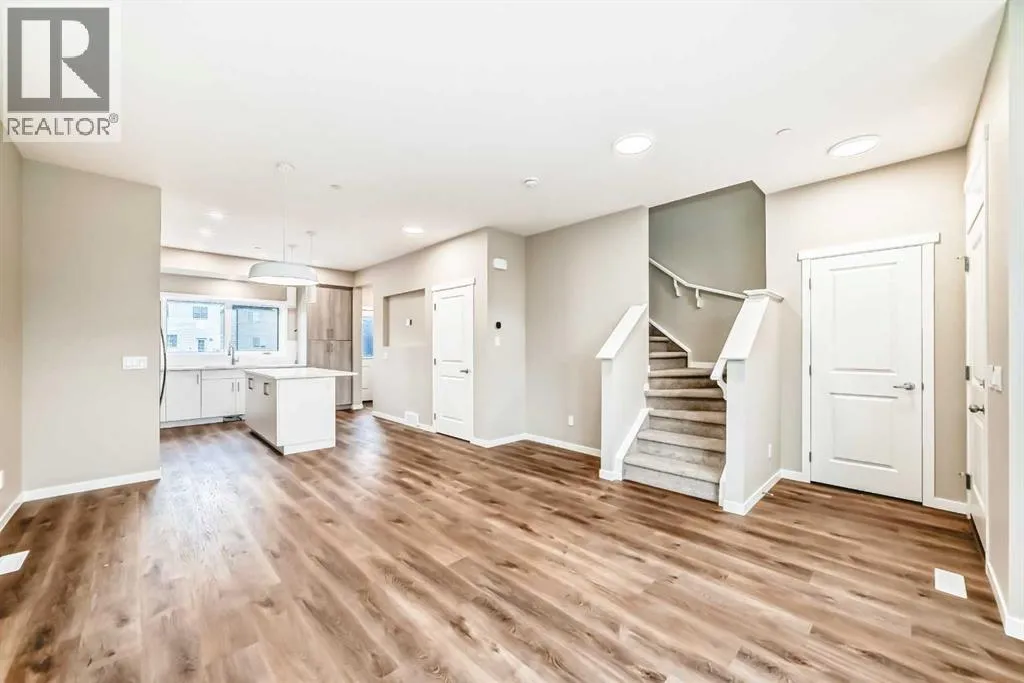 Welcome to the Cari, a beautifully designed home where modern style meets everyday functionality. With 1,264 sq. ft. of thoughtfully planned living space, this 3-bedroom, 2.5-bathroom residence is crafted to elevate your lifestyle while offering room to grow. From the moment you arrive, the curb appeal is undeniable with a landscaped front yard that sets the tone for the elegance inside. Step through the front door and into the bright and open main level, where luxury vinyl plank flooring seamlessly connects the living, dining, and kitchen areas. The heart of the home is the stunning L-shaped kitchen, featuring sleek two-tone cabinetry, gleaming quartz countertops, a central island, and stainless steel appliances that make cooking and entertaining both effortless and enjoyable. The open-concept design ensures that whether youâre hosting family dinners or relaxing with friends, every space feels welcoming and connected. Upstairs, the layout is just as impressive. The serene primary retreat offers the perfect escape, complete with a spa-inspired ensuite finished with quartz countertops and modern fixtures. Two additional generously sized bedrooms, along with a stylish full bathroom, provide plenty of space for family or guests. Convenience continues with an upper-level laundry room, designed with luxury vinyl tile flooring for both style and durability. The lower level holds endless potential with a 9â foundation height and thoughtful rough-ins for a 3-piece bathroom and a wet bar sink. A separate side entrance adds flexibility for a future basement suite (A secondary suite would be subject to approval and permitting by the city/municipality). Every detail of the Cari has been carefully considered, from the knockdown ceiling texture to the quality finishes throughout. This is more than a homeâitâs a place designed to adapt to your lifestyle and grow with you. Located in one of Calgaryâs newest and most exciting communities, Hotchkiss is a neighborhood where modern liv ing meets natural beauty. Nestled in the southeast, Hotchkiss offers a perfect balance of peaceful surroundings and urban convenience. Residents enjoy easy access to scenic pathways, parks, and green spaces, creating a community where outdoor living thrives. Families will appreciate the close proximity to schools, recreational amenities, and shopping, while commuters benefit from convenient connections to major roadways, making every part of the city accessible. With its vision for thoughtful planning and vibrant streetscapes, Hotchkiss is more than a place to liveâitâs a place to belong. The Cari is not just a home; itâs an opportunity to enjoy stylish comfort in a thriving, growing community (id:27476)