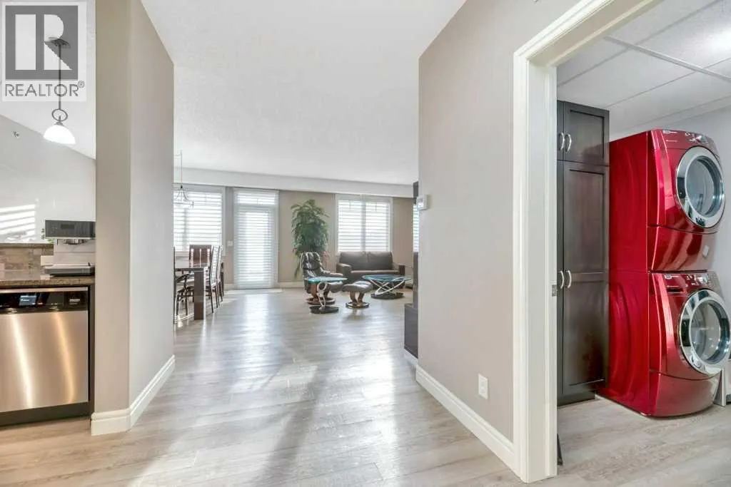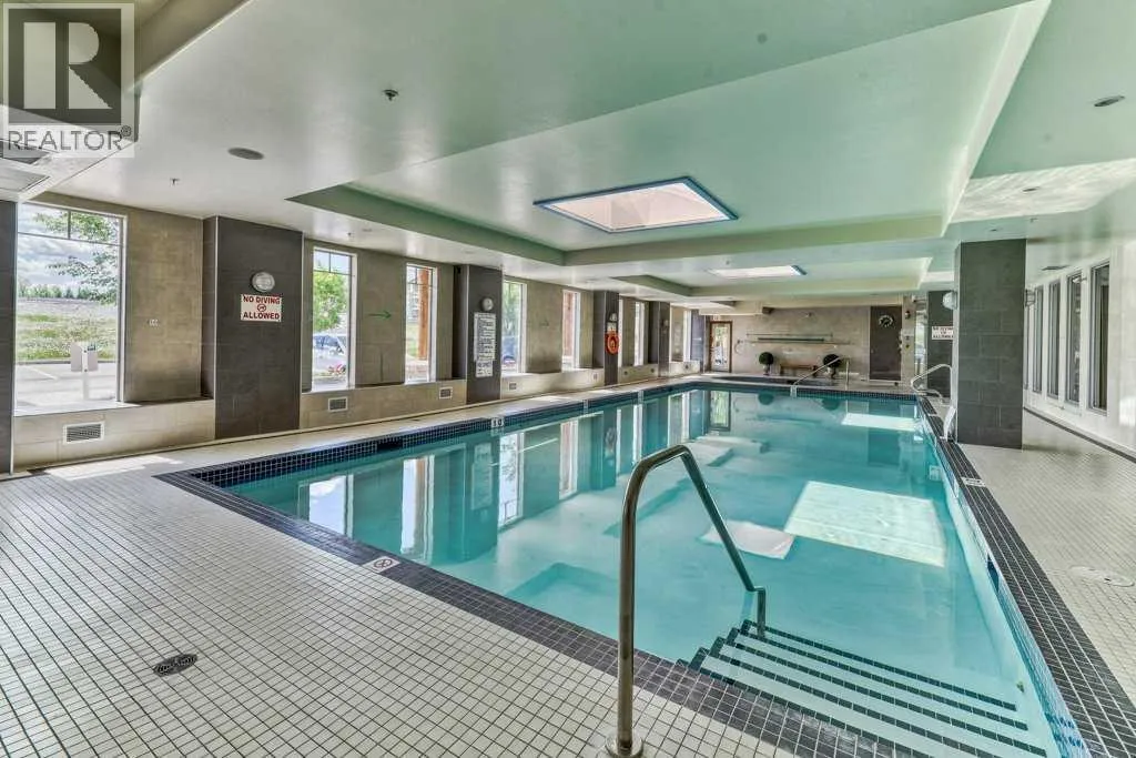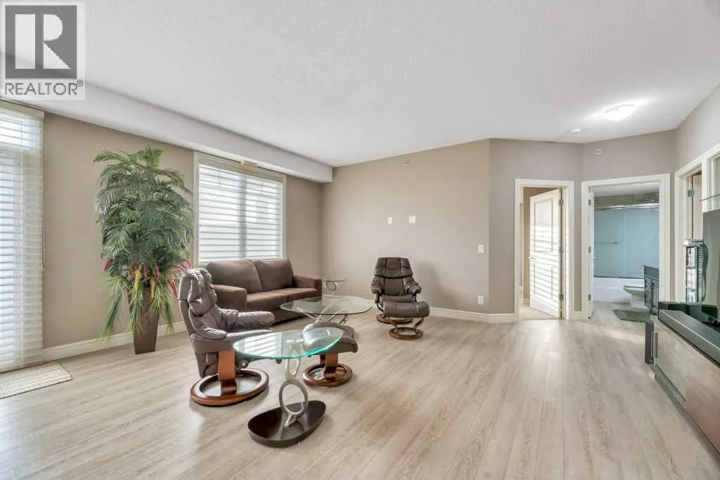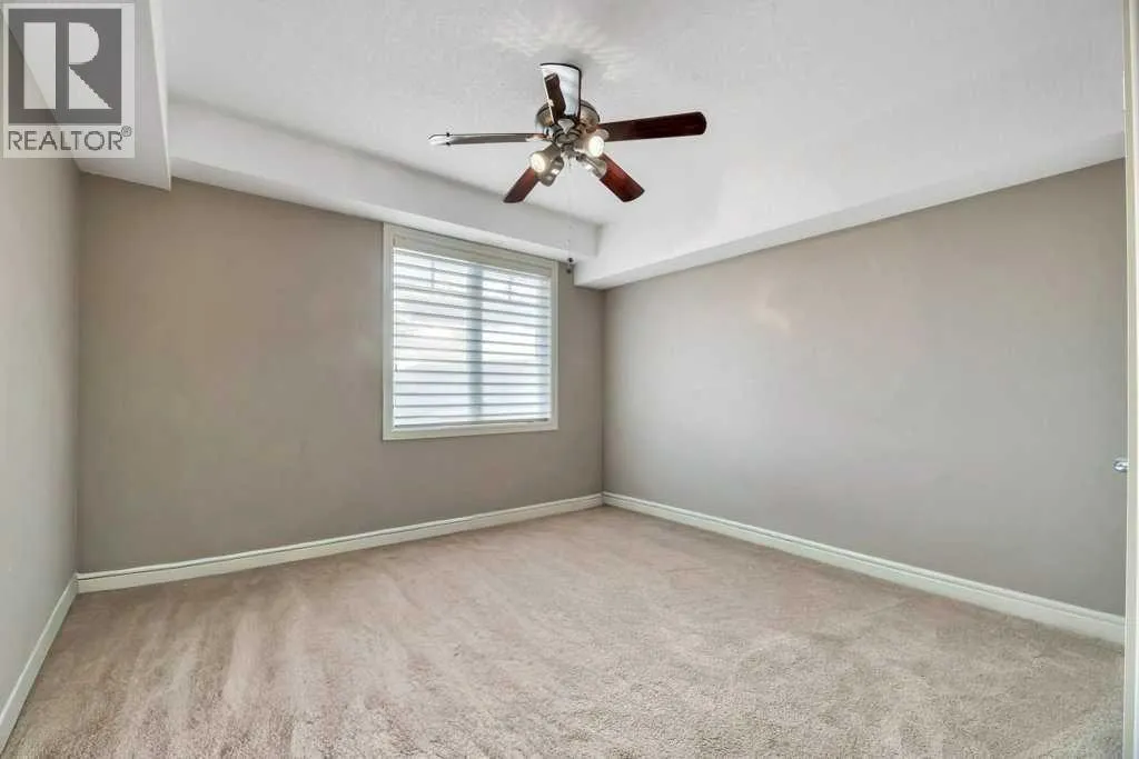 Enjoy quiet living with no unit above and a spectacular two-storey, south-facing balcony designed to capture warm sunshine, making it perfect for entertaining and summer barbecues. Ideally situated along the edge of Fish Creek Provincial Park, this award-winning complex offers direct access to miles of scenic walking, hiking, and cycling pathways, creating a true nature-loverâs retreat. This immaculate two-bedroom plus den, two-bathroom home features soaring 9-foot ceilings and a thoughtfully designed open-concept layout enhanced by upgraded laminate flooring and new plush carpeting throughout. The spacious foyer leads into a beautifully appointed gourmet kitchen complete with granite countertops, abundant espresso cabinetry, deep drawers, a corner pantry, and premium stainless-steel appliances including a Miele induction range, Miele dishwasher, and a French-door refrigerator with water and ice maker. The expansive living and dining areas are flooded with natural light from the sunny south exposure and seamlessly extend to the oversized balcony, creating an exceptional indoor-outdoor living experience. The primary suite offers a peaceful retreat with a walk-in closet and a four-piece ensuite featuring double sinks. A generously sized second bedroom is conveniently located beside the main four-piece bath. Both bedrooms showcase new top-grade carpeting and custom organizers. The dedicated den provides excellent built-in cabinetry, making it ideal for a home office or hobby space. In-suite laundry with a Maytag washer and dryer, central air conditioning, and condo fees that include all utilities add everyday comfort and convenience. This unit includes two titled, adjacent heated underground parking stalls and two secure storage lockers just steps from the elevator. Thoughtfully updated and meticulously maintained, recent improvements include ceiling fans in both bedrooms, custom cabinetry and high-end closet organizers, a retractable screen door, updated lighting in t he den and kitchen, a new shower door in the main bath, makeup mirrors in both bathrooms, and a programmable thermostat. Sanderson Ridge is renowned for its exceptional resort-style amenities, including a swimming pool, hot tub, steam room, fitness centre, bowling alley, movie theatre, woodworking shop, craft room, wine cellar, billiards room, and two car wash bays. Bright, spacious, and move-in ready, this home offers an unparalleled lifestyle in one of Calgaryâs most sought-after adult communities. Welcome home! (id:27476)