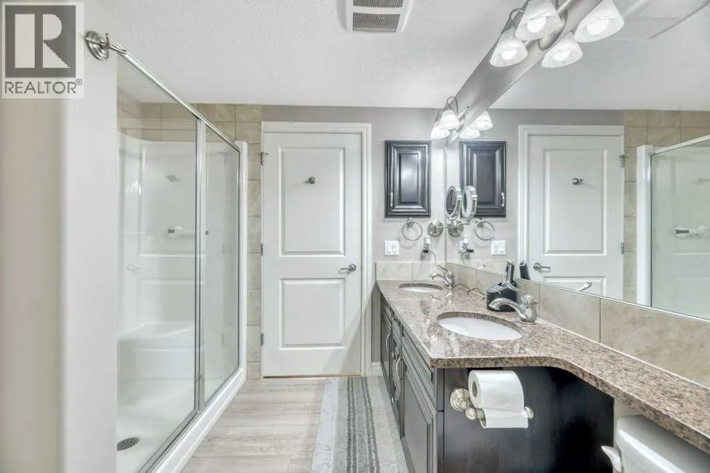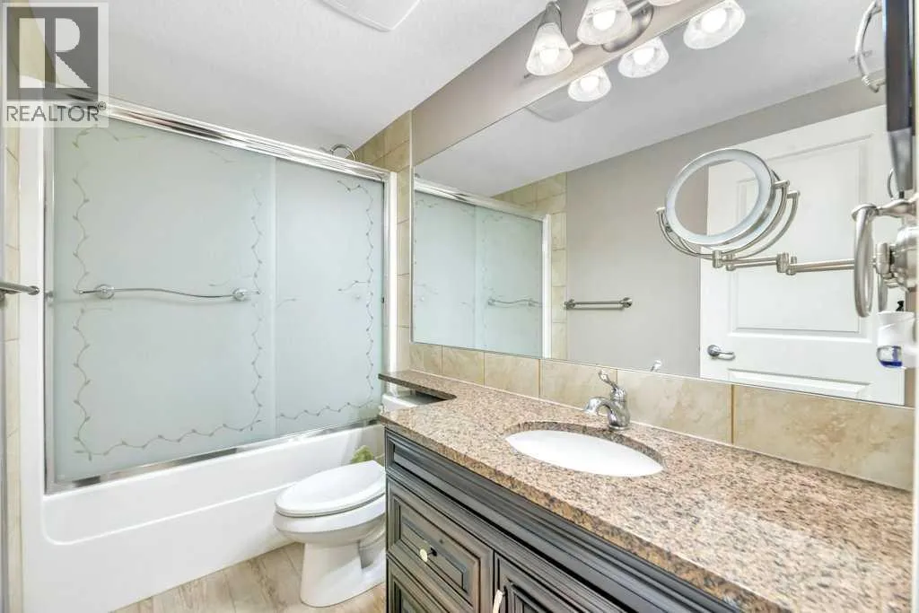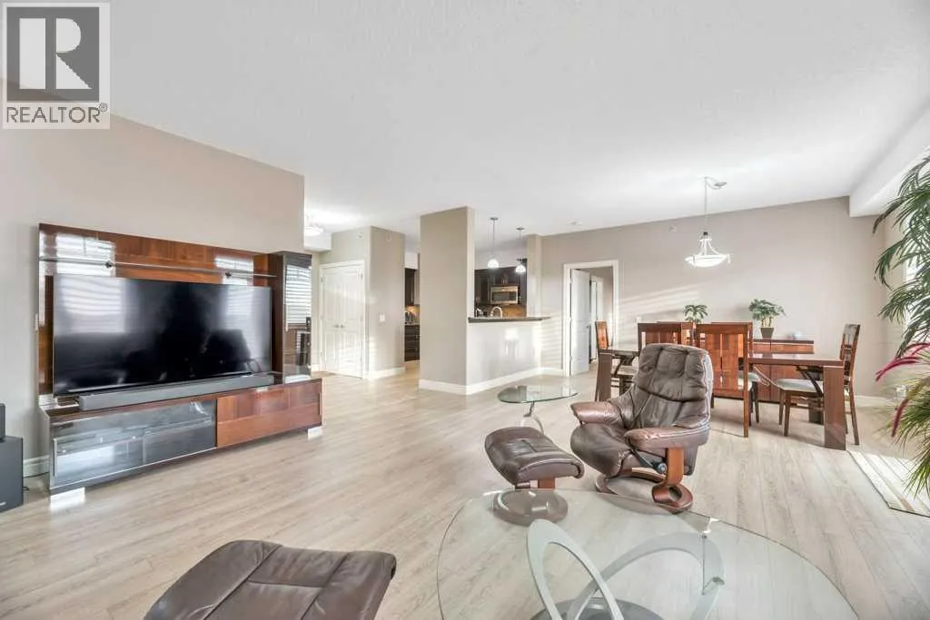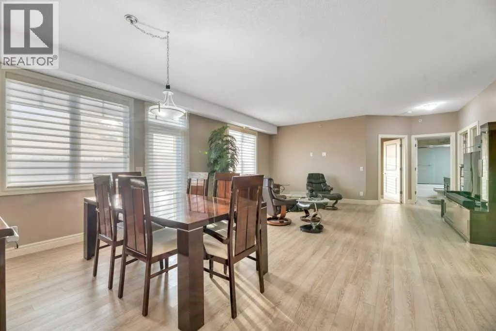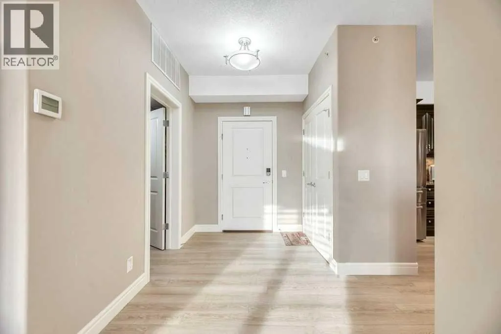 Enjoy quiet living with no unit above and a spectacular two-storey, south-facing balcony designed to capture warm sunshine, making it perfect for entertaining and summer barbecues. Ideally situated along the edge of Fish Creek Provincial Park, this award-winning complex offers direct access to miles of scenic walking, hiking, and cycling pathways, creating a true nature-loverâs retreat. This immaculate two-bedroom plus den, two-bathroom home features soaring 9-foot ceilings and a thoughtfully designed open-concept layout enhanced by upgraded laminate flooring and new plush carpeting throughout. The spacious foyer leads into a beautifully appointed gourmet kitchen complete with granite countertops, abundant espresso cabinetry, deep drawers, a corner pantry, and premium stainless-steel appliances including a Miele induction range, Miele dishwasher, and a French-door refrigerator with water and ice maker. The expansive living and dining areas are flooded with natural light from the sunny south exposure and seamlessly extend to the oversized balcony, creating an exceptional indoor-outdoor living experience. The primary suite offers a peaceful retreat with a walk-in closet and a four-piece ensuite featuring double sinks. A generously sized second bedroom is conveniently located beside the main four-piece bath. Both bedrooms showcase new top-grade carpeting and custom organizers. The dedicated den provides excellent built-in cabinetry, making it ideal for a home office or hobby space. In-suite laundry with a Maytag washer and dryer, central air conditioning, and condo fees that include all utilities add everyday comfort and convenience. This unit includes two titled, adjacent heated underground parking stalls and two secure storage lockers just steps from the elevator. Thoughtfully updated and meticulously maintained, recent improvements include ceiling fans in both bedrooms, custom cabinetry and high-end closet organizers, a retractable screen door, updated lighting in t he den and kitchen, a new shower door in the main bath, makeup mirrors in both bathrooms, and a programmable thermostat. Sanderson Ridge is renowned for its exceptional resort-style amenities, including a swimming pool, hot tub, steam room, fitness centre, bowling alley, movie theatre, woodworking shop, craft room, wine cellar, billiards room, and two car wash bays. Bright, spacious, and move-in ready, this home offers an unparalleled lifestyle in one of Calgaryâs most sought-after adult communities. Welcome home! (id:27476)