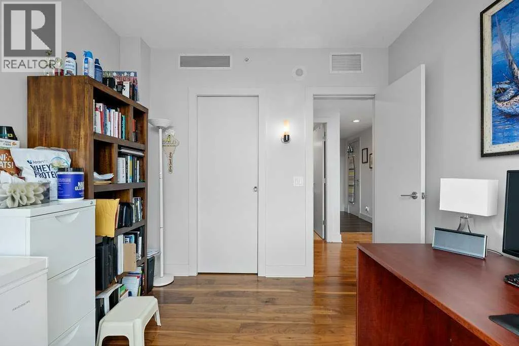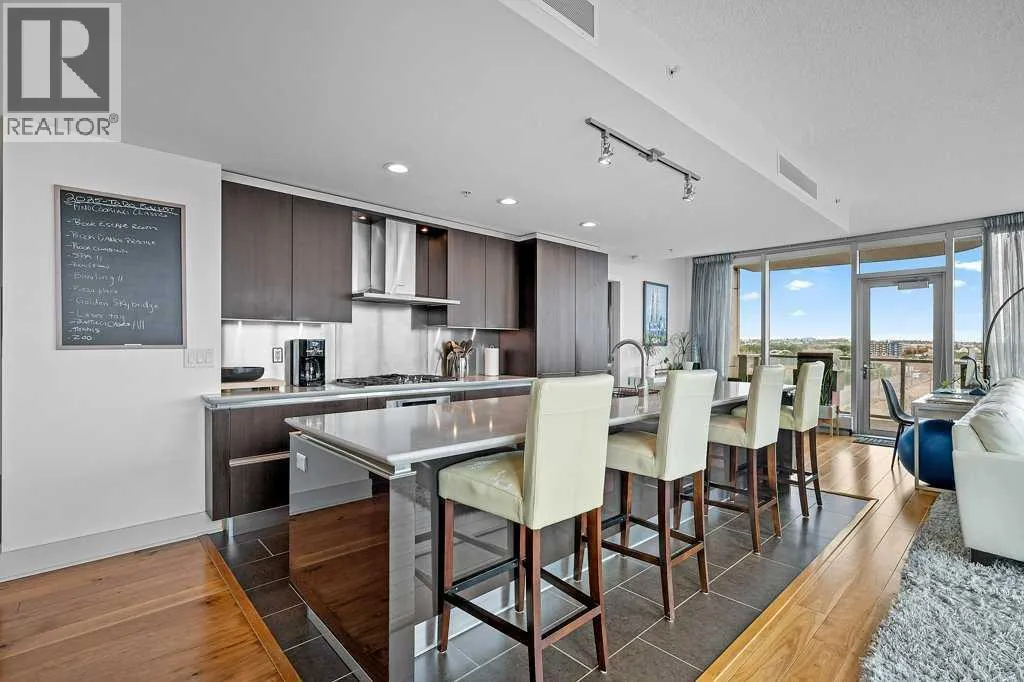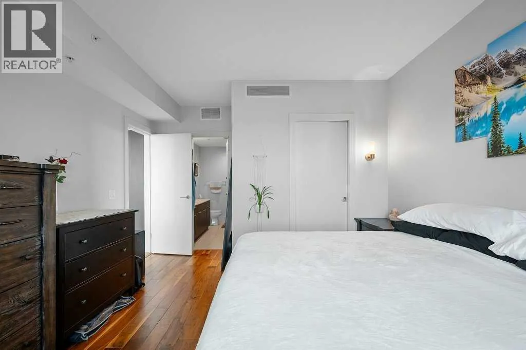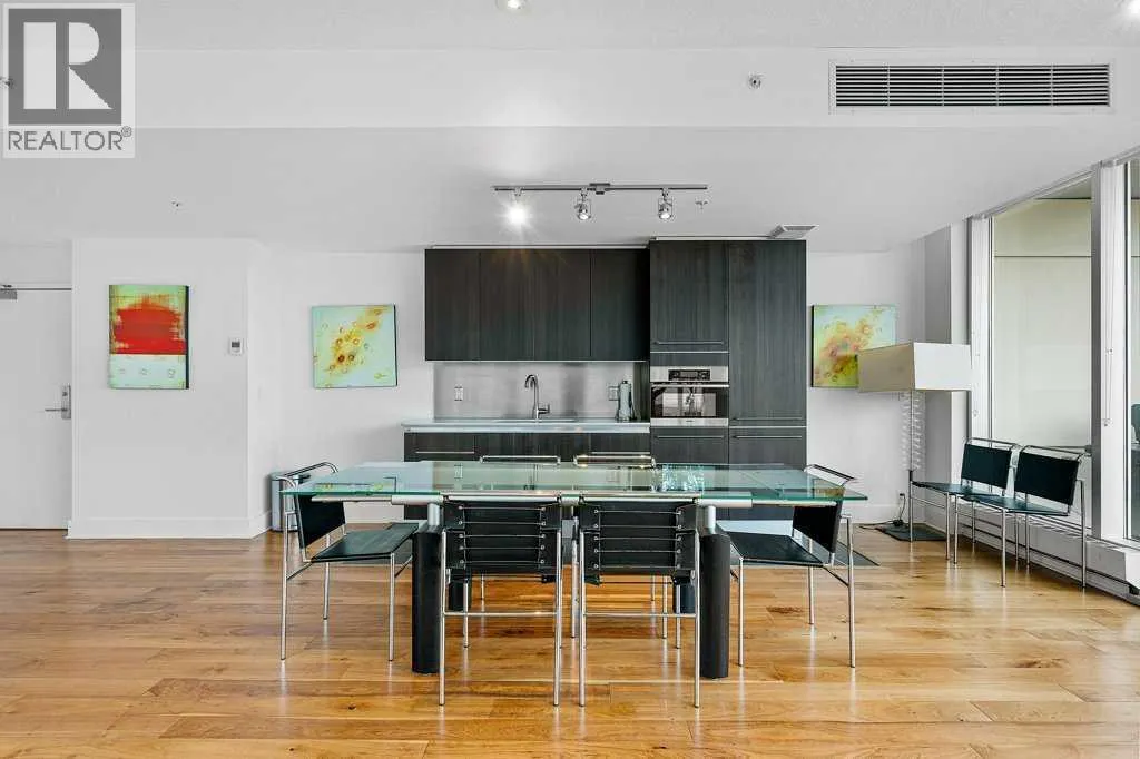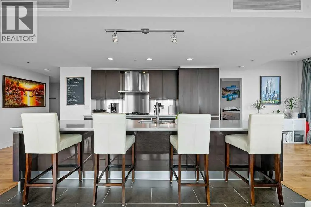 Discover contemporary elegance and city convenience in this immaculate 1,234 sq ft corner unit in the highly sought-after Arriva. Perfectly positioned in the heart of Calgary, this residence offers a rare combination of modern sophistication, spacious comfort, and unparalleled access to some of the cityâs most iconic attractions.Just steps from the Saddledome, Stampede Park, Cowboys Casino, acclaimed restaurants, boutique cafés, fitness studios, and live entertainment, you'll enjoy a lifestyle thatâs vibrant and connected. Whether itâs catching a concert, soaking in the energy of Stampede, or exploring downtownâs culinary and cultural scene, everything is at your doorstep.Inside, floor-to-ceiling windows on two sides flood the space with natural light and frame stunning city views. The expansive open-concept layout is designed for effortless living and entertaining, featuring a chef-inspired kitchen with a large central island, gas cooktop, stainless steel appliances, and sleek full-height cabinetry.A generous dining area sits in front of a picture window for added ambiance, while the spacious living room opens to a glass-railed balconyâideal for BBQs, warm evenings, or watching the Stampede fireworks.Hardwood flooring runs throughout, and central air conditioning ensures year-round comfort. The bright south-facing primary suite offers sweeping views, a walk-in closet, and a stylish 4-piece ensuite. A second bedroom with its own walk-in closet and oversized windows is thoughtfully located on the opposite side of the unit next to the second full bathroomâperfect for guests, roommates, or a home office setup.Additional features include in-suite laundry, custom blackout blinds, titled underground parking (P-4 #34), and an assigned storage locker (P4-OO).Arriva residents enjoy exclusive amenities including a contemporary lobby, 24-hour concierge and security, two rentable guest suites, and a spectacular event lounge with a full kitchen, floor-to-ceiling wind ows, and private rooftop patio access.This is a rare opportunity to own or invest in one of Calgaryâs most walkable, dynamic, and well-connected downtown communities. (id:27476)