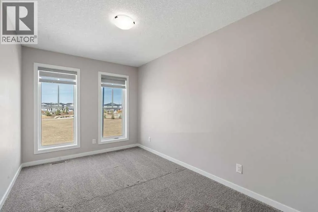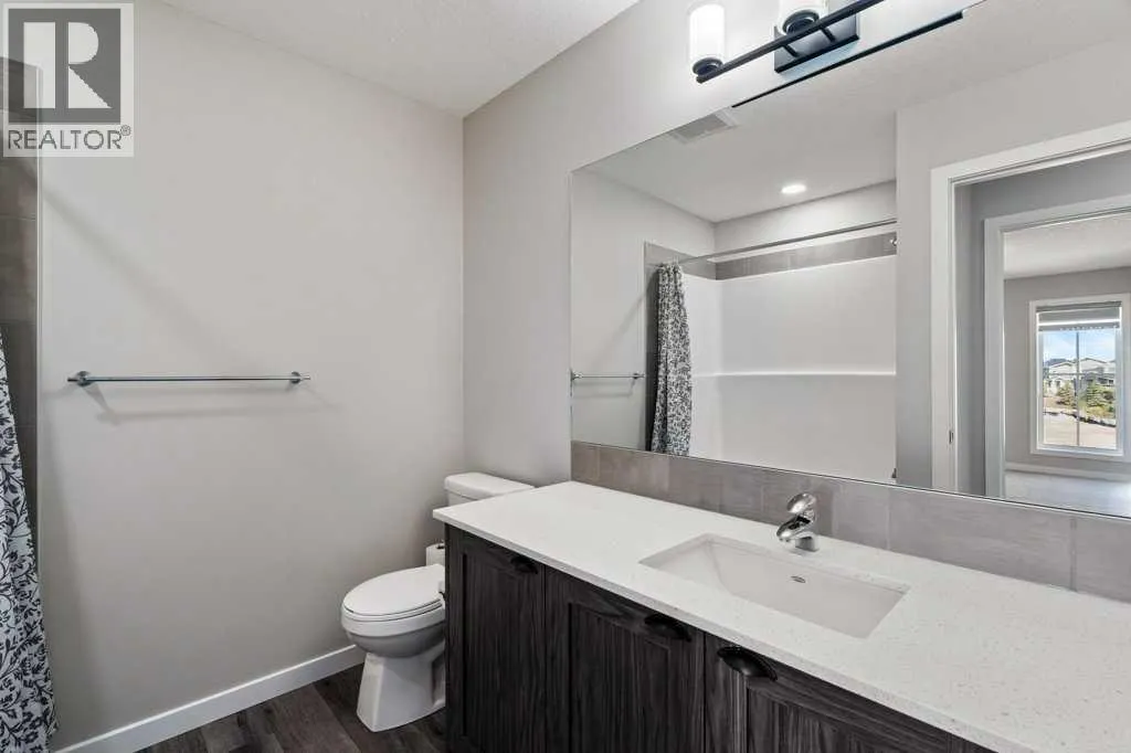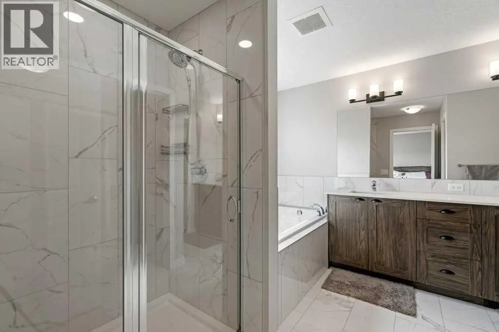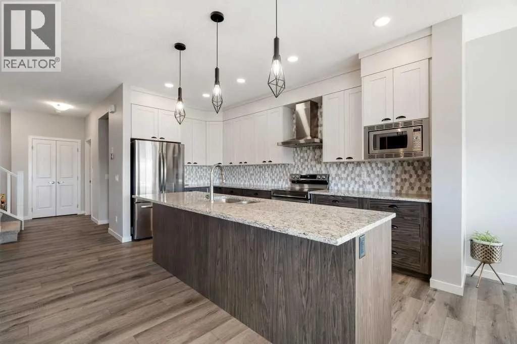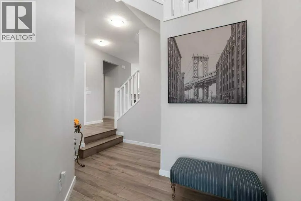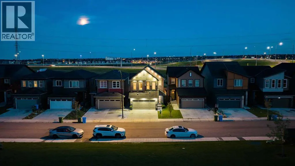 Welcome to this spacious and beautifully appointed 5-bedroom, 3.5-bathroom family home in the desirable NW community of Carrington. With 2,279 sq ft above grade and an additional 918 sq ft in the fully finished basement, this home offers over 3,100 sq ft of thoughtfully designed living spaceâideal for large families, multigenerational living, or anyone craving extra room to grow. The main floor welcomes you with a bright, open-concept layout featuring 9â ceilings and a warm, inviting living room with a gas fireplace. The adjacent dining area opens onto the sunny south-facing backyard via patio doors, extending your living space onto the deckâperfect for outdoor entertaining. The chef-inspired kitchen is a true showstopper, complete with an extra-long granite island, two-tone cabinetry, stainless steel appliances, and a separate spice kitchen with a second gas stove, powerful hood fan, and extra storageâideal for preparing meals without lingering aromas in your main living space. A private office/den, 2-piece powder room, and a mudroom additional storage complete the main floor. Upstairs, you'll find a thoughtfully designed layout with a central bonus room, perfect for family movie nights or a kidsâ play area. The primary suite is a serene retreat with a walk-in closet and a luxurious 5-piece ensuite featuring dual vanities, a deep soaker tub, and a separate shower. Three additional bedrooms share a 4-piece bathroom, and the convenient upper-floor laundry makes daily chores a breeze. The fully finished basement offers incredible flexibility with a large recreation room, 5th bedroom, another 4-piece bathroom, and plenty of storage. The 9â ceilings and plumbing rough-ins provide the potential for a future basement suite (subject to approval and permitting by the city/municipality) or second kitchen. Enjoy the sunny, south-facing backyard that backs onto green space and a walking path, providing privacy and a peaceful backdrop. The low-maintenance landscaping, iron fro nt and back railings, upgraded spindles, and central A/C add function and style to this impressive home. Ideally located in Carrington, you're just minutes from NW Calgaryâs best amenities, including shopping and dining, the Vivo and YMCA recreation centres, schools, playgrounds, theatres, and easy access to major routes like Stoney Trail. This is the total packageâspace, comfort, and convenience, all in a family-friendly community. (id:27476)