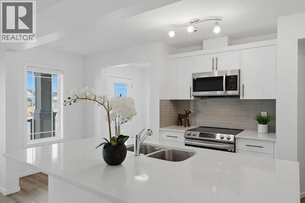 NO CONDO FEES! Over 1442Sq. Ft. of Developed Living Space | Corner Unit | Large Balcony & Double Attached Garage+ Extra ParkingWelcome to this beautifully designed 3-bedroom, 2.5-bathroom corner five-plex townhouse in the vibrant Carrington communityâoffering comfort, style, and the added bonus of no condo or HOA fees. As a desirable corner unit, this home is filled with natural light thanks to an abundance of large windows throughout. Step onto the inviting front porch and into a bright, open-concept main floor that seamlessly connects the living, dining, and kitchen areasâcreating a spacious and welcoming atmosphere perfect for both everyday living and entertaining. The chef-inspired kitchen features stainless steel appliances, a big functional island, and generous counter space to meet all your culinary needs. Upstairs, the spacious primary bedroom serves as a private retreat, complete with a walk-in closet and a 3-piece ensuite. Two additional well-sized bedrooms and another full 3-piece bathroom provide plenty of space for family or guests. Step outside to enjoy the huge rear balconyâideal for summer BBQs, relaxing evenings, or morning coffee. The basement offers 650 sq. ft. of undeveloped space, ready for your custom design and future expansion. The oversized attached double garage provides excellent storage and vehicle protection from winter snow and summer heat, plus there is extra parking outsideâperfect for guests or additional vehicles. Ideally located in sought-after Carrington, youâll enjoy easy access to schools, parks, shopping, and essential amenities. Donât miss your opportunity to call 1893 Carrington Blvd NW homeâthis exceptional property wonât last long! (id:27476)