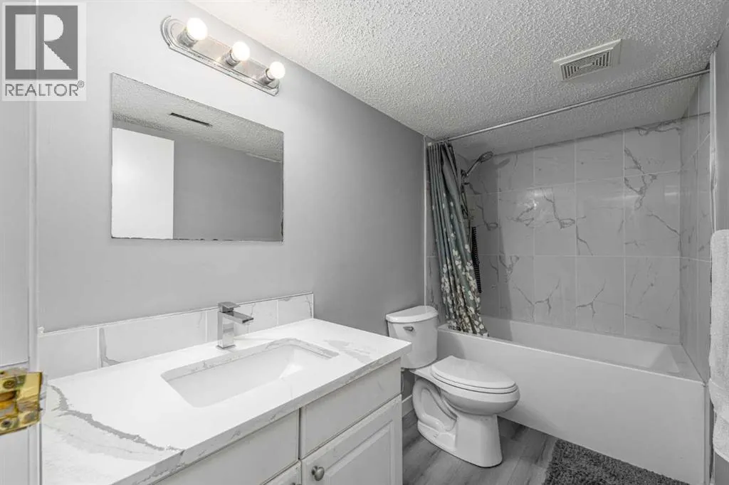 HOT NEW PRICE! This renovated fully finished 4-Level Split offers outstanding space, functionality, and versatility perfect for families or those looking for a live-up, rent-down opportunity or an investment property. Recently renovated in 2024, this home features a stunning new main kitchen with modern cabinetry, quartz countertops, and updated appliances, complemented by luxury vinyl plank flooring, contemporary paint, and upgraded lighting throughout. The bathrooms have also been beautifully renovated with new tubs, vanities, fixtures, and lighting, creating a fresh, modern feel from top to bottom. The main floor boasts a bright and open layout with a spacious living room and beautifully updated kitchen with dining area ideal for entertaining and everyday living. Upstairs offers 3 generous bedrooms, including a primary suite with a private ensuite, plus a full 4-piece main bathroom. The third level features a separate rear entrance, a cozy family/living room with a charming wood-burning fireplace, a 4th bedroom, laundry room, and a convenient 2-piece bathroom ideal for extended family or added flexibility. The basement level includes a renovated kitchen with new cabinets, countertops, and newer appliances, a spacious recreation room, and a full 4-piece bathroom, offering excellent added living space and added revenue potential. Major updates include roof (2020) and hot water tank (2025) for added peace of mind. Enjoy a prime location close to schools, shopping, parks, and easy access to Stoney Trail. (id:27476)