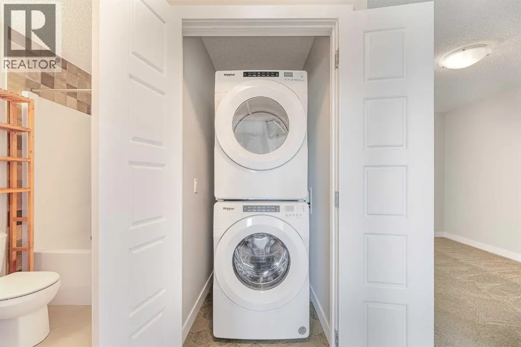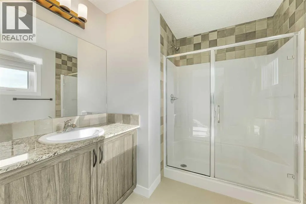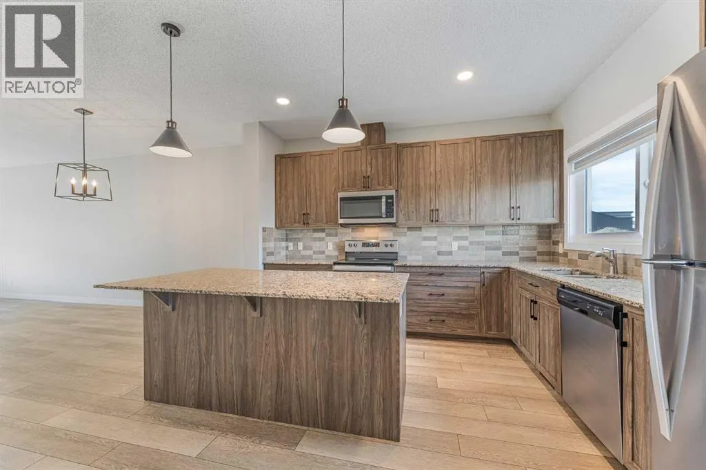 | 2023 | DOUBLE DETACHED GARAGE | SEPARATE ENTRANCE | MOVE IN READY | This beautifully designed 1,626 sq. ft. duplex by Shane Homes combines high-end style with everyday functionality in the heart of Pine Creek. Move-in ready, the home features a sun-drenched, open-concept main floor with soaring ceilings, durable LVP flooring, and a stunning kitchen boasting quartz countertops, stainless steel appliances, and a convenient walk-in pantry. A south-facing front veranda invites you inside, while the rear entrance provides easy access to a 2-piece powder room and leads out to your double detached garage. Upstairs you will find a central bonus room, with a large primary bedroom, 3pc ensuite bathroom and a walk-in closet to one side, and two additional bedrooms, a 4pc bathroom and a laundry area on the other side. All bathrooms are finished with quartz countertops and tile flooring. The basement adds incredible value with a separate side entrance and plumbing rough-ins for a future legal suite, upon approval by the City of Calgary. Perfectly situated within walking distance of schools, shopping, and pathway trails, this home also offers quick access to Macleod and Stoney Trails for an effortless commute. (id:27476)
