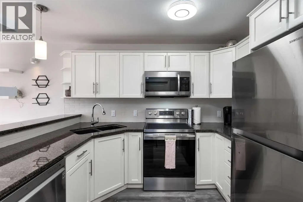 ** CHECK OUT THE VIDEO TOUR ** QUICK POSSESSION AVAILABLE - Welcome to this IMPECCABLY curated TWO bedroom, 1.5 bathroom corner townhouse, two-storey residence that blends thoughtful design with ELEVATED everyday living AND in one of the BEST LOCATIONS in Glamis Green!! Bathed in natural light thanks to its coveted WEST-facing corner positioning, this home has been EXTENSIVELY upgraded with a cohesive, CONTEMPORARY aesthetic that feels both timeless and refined. The kitchen is a true statement piece. Beautiful white shaker cabinetry and luxurious granite countertops, creating a tailored, high-end finish. Striking chrome fixtures provide bold contrast against the neutral palette, while PREMIUM stainless steel appliances - bring both style and performance. New LUXURY vinyl plank flooring flows effortlessly throughout the home, complemented by curated DESIGNER accents throughout. Fresh paint, updated hardware, modern lighting, fabric curtains, and custom feature walls add warmth and architectural interest at every turn. A cozy gas fireplace anchors the main living space, creating an inviting AMBIANCE perfect for intimate evenings or effortless entertaining. Large SUNNY west-facing windows blends indoor and outdoor living with ease. Upstairs, the main bathroom renovation is nothing short of STUNNING - beautifully finished with elevated materials and impeccable craftsmanship. Two generously sized bedrooms offer flexibility for guests, a home office, or growing needs, while the PRIMARY RETREAT enjoys direct access to a private upper balcony - your own quiet retreat for morning coffee or evening unwinding. Convenient upper-level laundry area add practical luxury with BRAND NEW Washer and Dryer. The outdoor space has been thoughtfully designed for low-maintenance enjoyment, featuring a fully decked and fenced patio area that easily accommodates a dining set or lounge seating to ENJOY the warmth of the evening sun. An ATTACHED single garage provides secure parking and additi onal storage, and the well-managed complex offers peace of mind to home owners. Positioned directly across from a green space and a no-thru road, the setting feels TRANQUIL and private while remaining exceptionally connected. Glenmore, Sarcee, Stoney, and Crowchild Trails are all moments away, placing you just minutes from Westhills Shopping Centre, North Glenmore Park, Mount Royal University, public transit and many more amenities, and only 15 minutes to downtown - making this one of the most DESIRABLE LOCATIONS. Stylish, turnkey, and effortlessly convenient - this is ELEVATED townhouse living in a location that truly delivers. CALL TODAY to BOOK YOUR PRIVATE TOUR!! (id:27476)