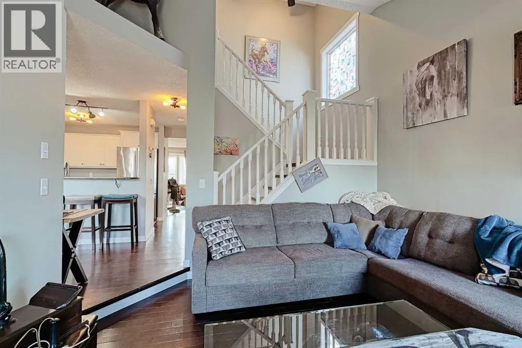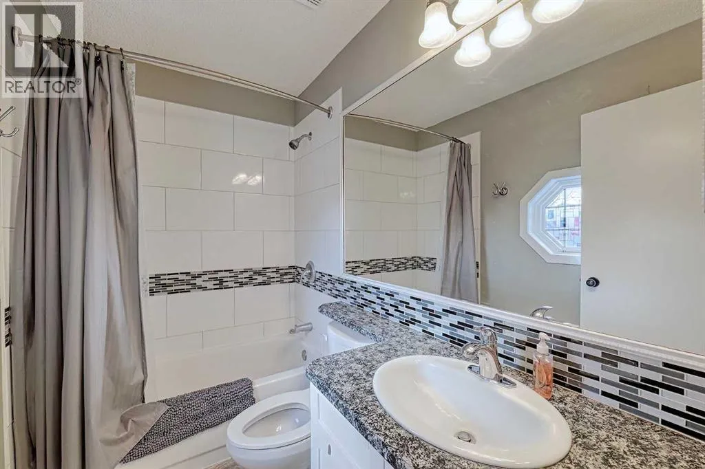 Incredible opportunity to own a home at a great price in the desirable community of McKenzie Lake. Thoughtfully located steps from a neighborhood park and within a block of local schools, this home blends everyday convenience with comfort and modern living. Offering 2,252 SF of developed living space, the bright main-floor welcomes you into a front living room which flows into an updated kitchen with timeless white cabinetry, quartz countertops, raised eating bar and stainless steel appliances. The dining area gives access to the backyard with expansive deck and poured concrete patio space for summer enjoyment. A family room with soaring vaulted ceilings and cozy gas fireplace and a powder room complete this space. Upstairs you will find a primary suite with walk-in closet and a 4-piece ensuite along with 2 guest rooms which share a 4 piece bathroom. The finished lower level provides a family room, rec/games room, 4th bedroom, 4 piece bathroom and laundry. Enjoy central AC on those hot summer days and the detached double garage on those snowy days. Year around enjoyment at the lake including a private clubhouse, fishing, swimming, tennis, volleyball, skating and don't overlook the miles of scenic walking paths throughout Fish Creek and along the Bow River. Book your showing today! (id:27476)