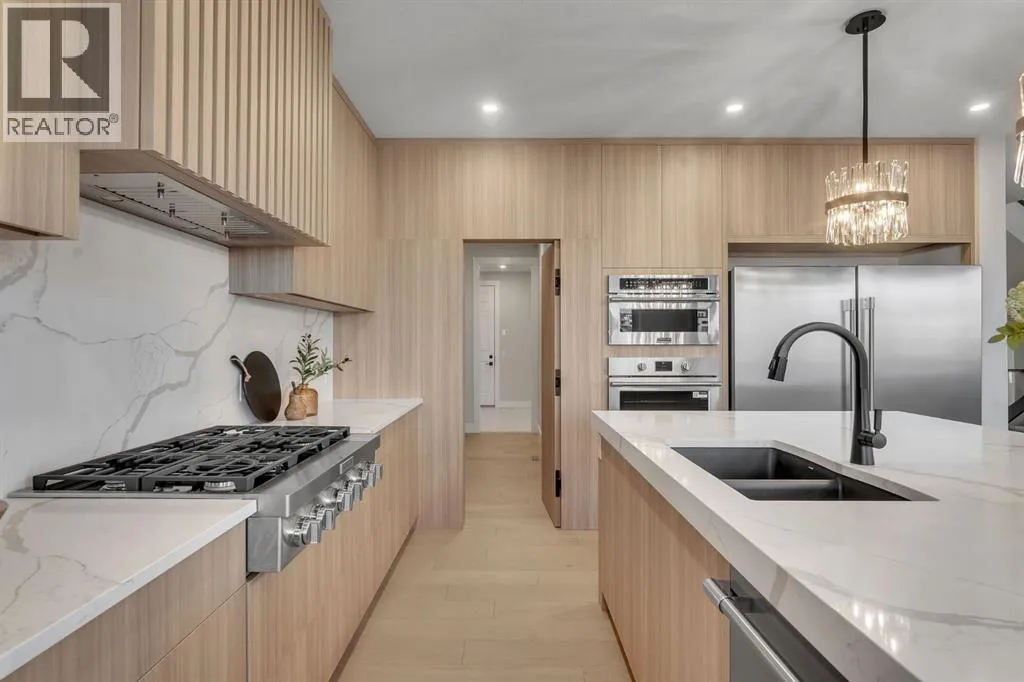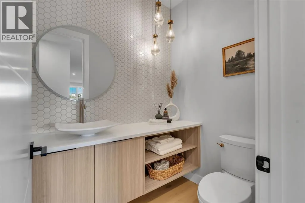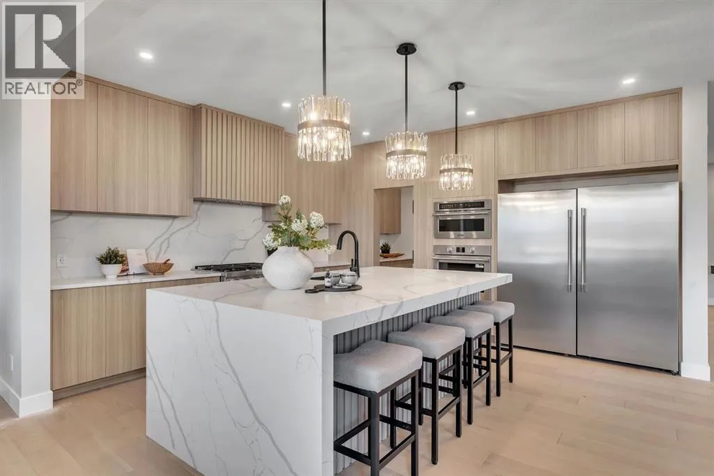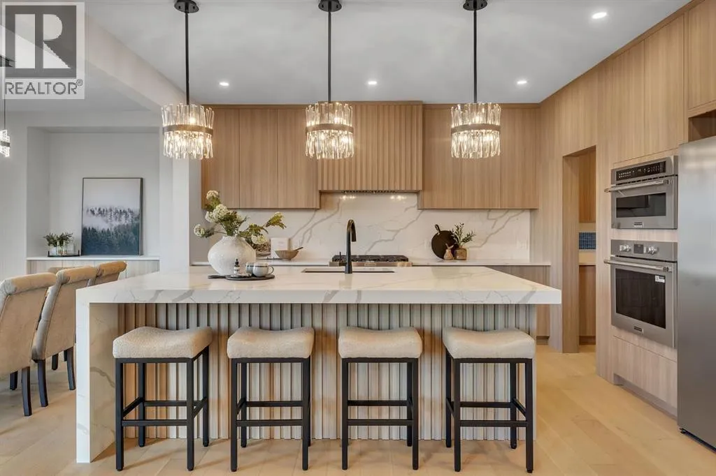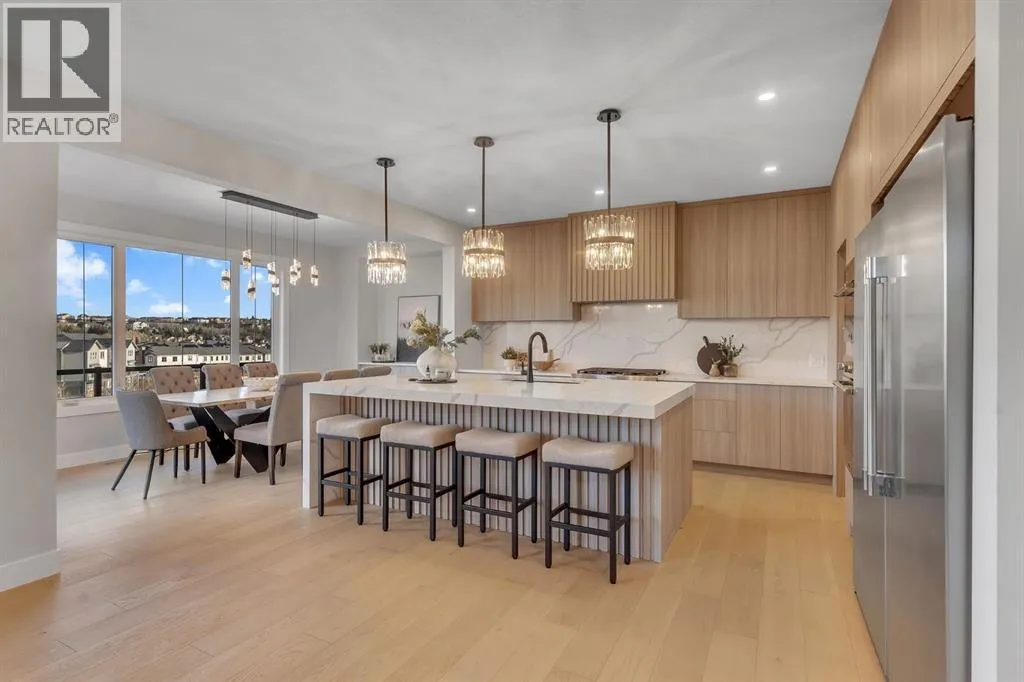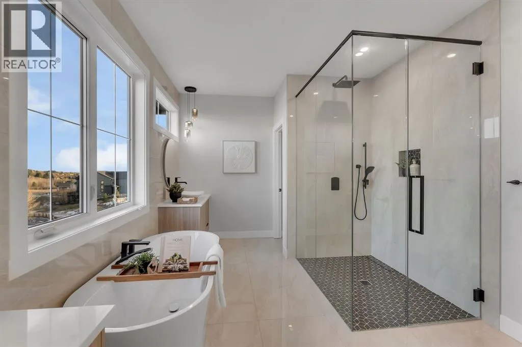 **OPEN HOUSE FEB 28 between 1:00 -4:00 PM** Welcome to 28 Spring Creek Point SW a true statement home in prestigious Springbank Hill, offering luxury living on a rare pond-front lot in Calgary. With over $200,000 in upgrades, this masterpiece was built for those who appreciate quality, design, and presence. From the moment you arrive, the striking Farmhouse exterior makes an impression, blending acrylic stucco and stone for timeless curb appeal. Inside, the home is centered around a showstopping Super Kitchen a space designed to host, gather, and impress featuring an oversized island with a dramatic 3CM waterfall granite edge, thick quartz counters, a professional 30" gas cooktop, and integrated wall oven. The main level also offers a private office, perfect for working from home, a stylish powder room, and a warm, inviting living room anchored by a grand 74" electric fireplace. Step outside to the expansive deck with a built-in BBQ gas line, ideal for entertaining while overlooking the pond. Upstairs, the primary retreat delivers a true spa experience, complete with a Maax Jazz freestanding tub and a curbless tiled shower with sleek 10MM glass. A versatile loft adds additional living space for relaxation or creativity. The fully developed walk-out basement features 9-foot ceilings, a spacious recreation area, custom wet bar, additional bedroom, and a modern bathroom all opening to your private outdoor setting. Designed for comfort and long-term performance, the home includes Black Fusion windows, 8-foot interior doors, upgraded HVAC with A/C, EV charger rough-in, and a 200-amp electrical service. This is a home where upgrades, design, and location come together seamlessly offering a level of finish and lifestyle rarely available. Book your private showing and experience it for yourself. (id:27476)