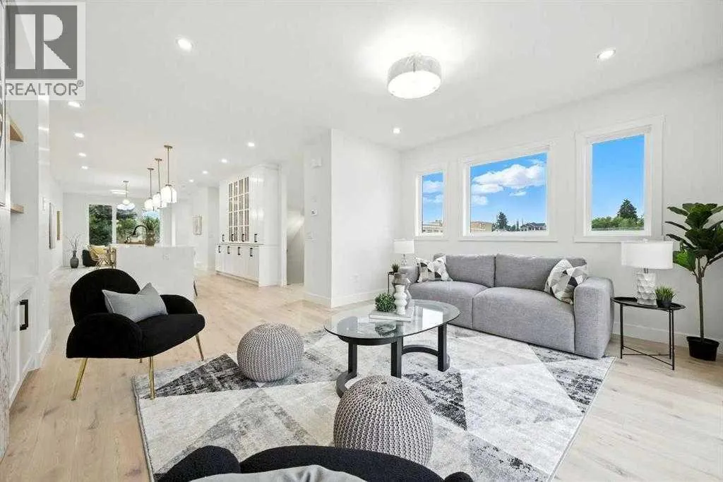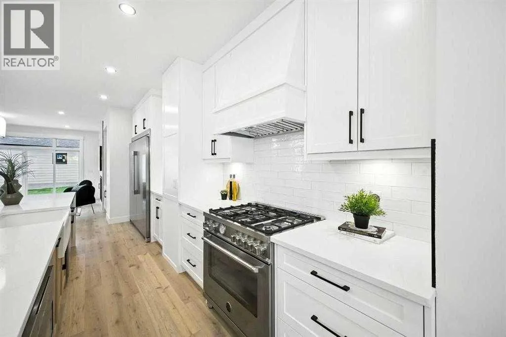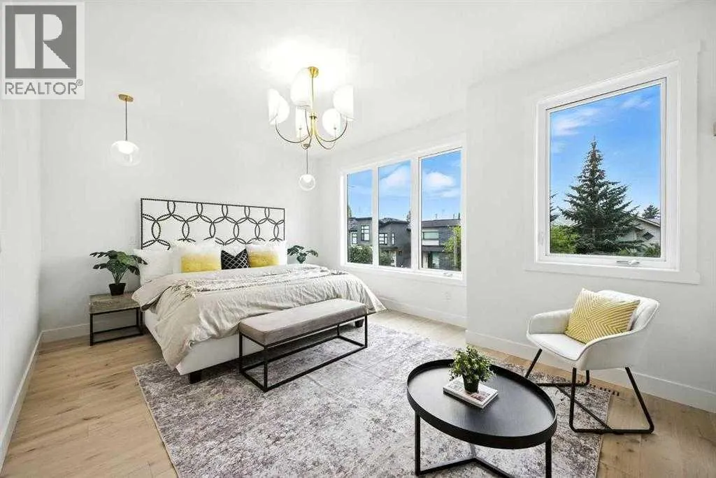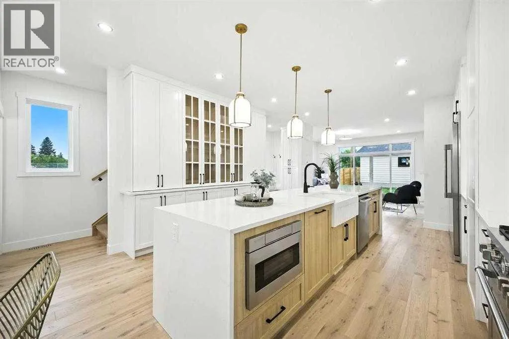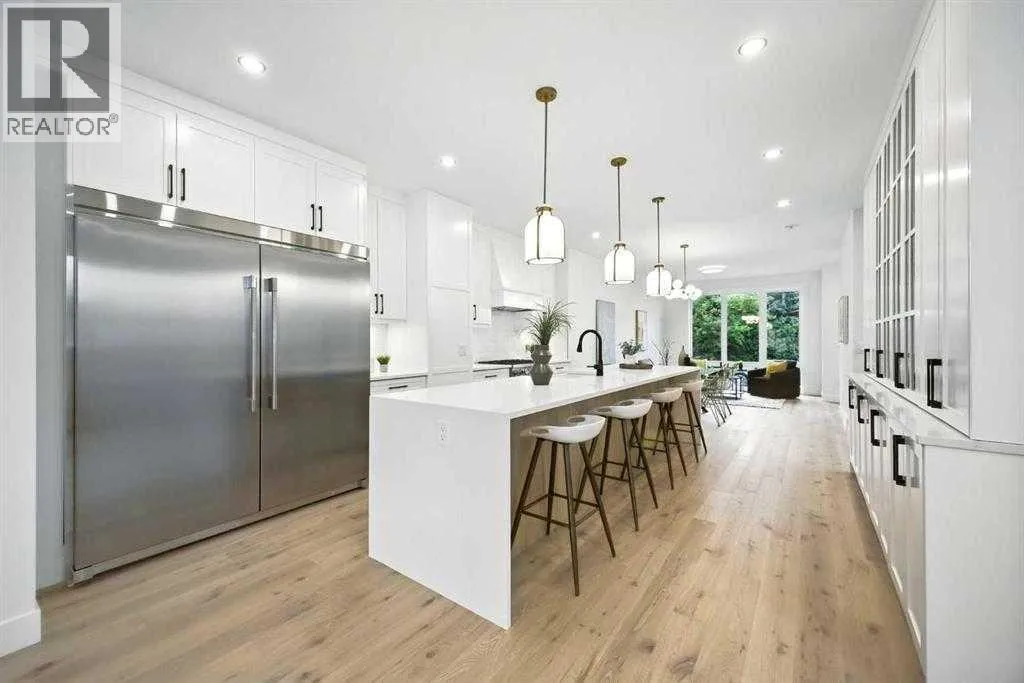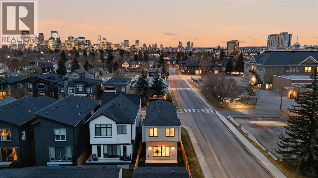 BEST PRICED NEW DETACHED HOME IN AREA...DONRT MISS OUT!!..Set on a prime corner lot in one of Calgaryâs most established inner-city communities, this home delivers striking design, exceptional craftsmanship, and everyday livability in Mount Pleasant. Created by Tricor Design Group, this newly constructed home offers a refined yet comfortable lifestyle, blending clean architectural lines with carefully curated finishes. Positioned directly across from a school and framed by professional landscaping, the setting offers both privacy and connection, with Confederation Park, the Mount Pleasant Sportsplex, local playgrounds, and downtown just moments away. Inside, the main floor unfolds into a bright, contemporary living space designed for both relaxed living and effortless entertaining. Large windows invite natural light throughout, highlighting the rich engineered hardwood flooring and stylish gas fireplace with custom built-ins that anchor the living area. The seamless open layout creates a natural flow between the kitchen, dining, and living spaces, offering an ideal backdrop for gatherings of any size. The kitchen is thoughtfully designed with a focus on clean aesthetics and everyday function. Quartz countertops, a dramatic waterfall island, and premium integrated appliances including an oversized refrigerator and Bertazzoni Range create a polished and highly functional workspace. Custom pantry storage enhances organization while maintaining a streamlined look. Expansive sliding doors extend the living space outdoors to a private backyard featuring a concrete patio, green space, and access to the double detached garage - perfect for hosting, relaxing, or enjoying warm summer evenings. Upstairs, the primary retreat provides a calming and well-appointed escape. A sleek electric fireplace adds warmth and ambiance, while the custom walk-in closet offers generous storage. The spa-inspired ensuite elevates daily routines with heated floors, a steam shower, and a freestandi ng soaker tub designed for total relaxation. Two additional well-sized bedrooms, a full bathroom, and an upper-level laundry room complete this floor, offering practical comfort for family living. The fully finished lower level expands the homeâs versatility with a spacious recreation area featuring a modern wet bar and wine fridge, ideal for entertaining or unwinding. A dedicated home gym, fourth bedroom, and full bathroom provide flexible space for guests, work, or wellness. Thoughtfully designed from top to bottom, this home presents a seamless blend of modern style, comfort, and functionality in a sought-after inner-city location, and offers a rare opportunity to experience elevated urban living in a home where design and lifestyle come together effortlessly. (id:27476)