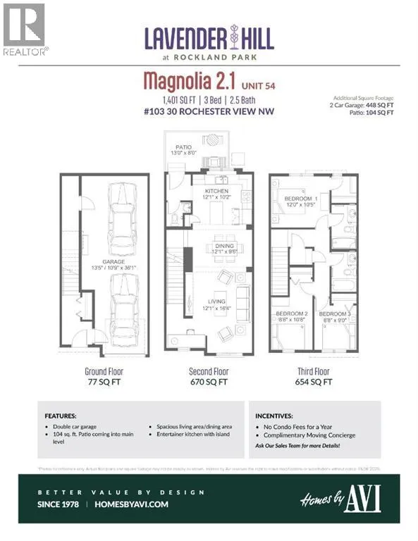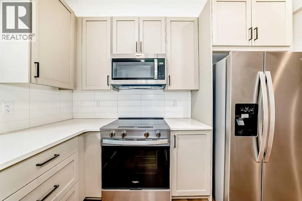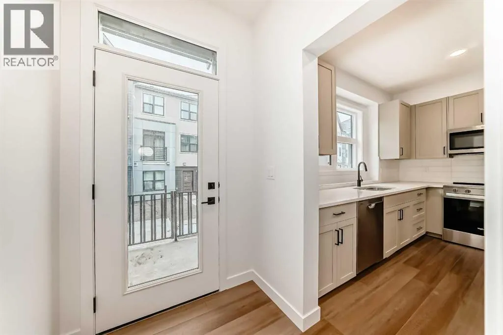 ROCKLAND PARK SEALS THE DEAL: walking paths, connected streets, parks woven throughout, and a residents only clubhouse with pool, fitness centre, and courts â the kind of community design that makes you leave the house on purpose. Mountain views to the west, quick access to Crowchild and Stoney Trail when real life calls. The Magnolia at Lavender Hill is built into the natural slope of the site, which means you get a garage level entry with a TANDEM DOUBLE-ATTACHED GARAGE, and a main living floor that WALKS OUT DIRECTLY TO THE REAR PATIO and the green space/pathways beyond. Translation: you can finish dinner, step outside, and take a post meal loop like itâs your routine â BECAUSE IT WILL BE. Coffee out back. BBQ within armâs reach. Inside, the main level does what too many plans only promise to do: it keeps the kitchen, dining, and living connected. Warm-toned luxury vinyl plank flooring grounds the space, quartz counters keep it clean and modern, and that KITCHEN ISLAND â itâs the command centre where homework lands, snacks disappear, and friends orbit. Near the stairs, a wide niche gives you that EXTRA SPACE everyone needs - laptop drop zone, bookcase moment, or that coveted yoga space.Upstairs, three bedrooms and UPPER LAUNDRY keep things efficient - the primary bedroom brings the ENSUITE + WALK-IN CLOSET, while two additional bedrooms and a full bath round out the level. Brand-new and READY FOR IMMEDIATE POSSESSION. If you want a townhome that lives CONFIDENTLY â not cautiously â book your showing and come see why THIS ONE is the right fit. ⢠PLEASE NOTE: Photos are of the showhome of the same model â fit & finish may differ on final spec home. Interior selections & floorplans for unit 103 shown in photos. (id:27476)