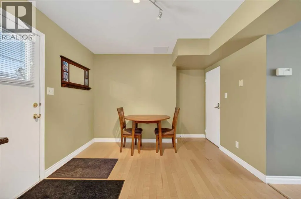 Nicely tucked into a quaint, quiet pocket of Renfrew, this large, recently improved 2 bedroom townhome is ideally situated within close (i.e. walking distance) proximity to the mighty Bow River and downtown core. The foyer leads into a spacious living room, large/bright kitchen with newer/upgraded stainless steel appliances (i.e. Whirlpool fridge = 2019; Whirlpool glass top stove = 2025; Bosch dishwasher = 2025) and comfortable dining nook; hardwood flooring throughout. Upper level houses a large primary bedroom, generously-sized second bedroom and full 4-piece bathroom; new carpet throughout the upper level. Lower level is unfinished and awaits your touches - whether that be continued storage or future development. New hot water tank in 2025, fresh interior paint throughout; 7' X 12' deck and stall parking directly out your back door. (id:27476)